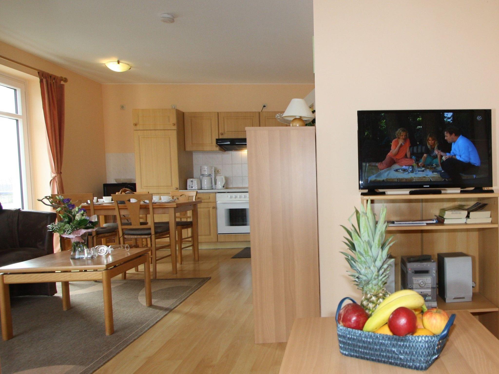 Schlafzimmer mit Doppelbett, Wohn-Schlafraum mit bequemer Doppelbettcouch, separater Essplatz, voll