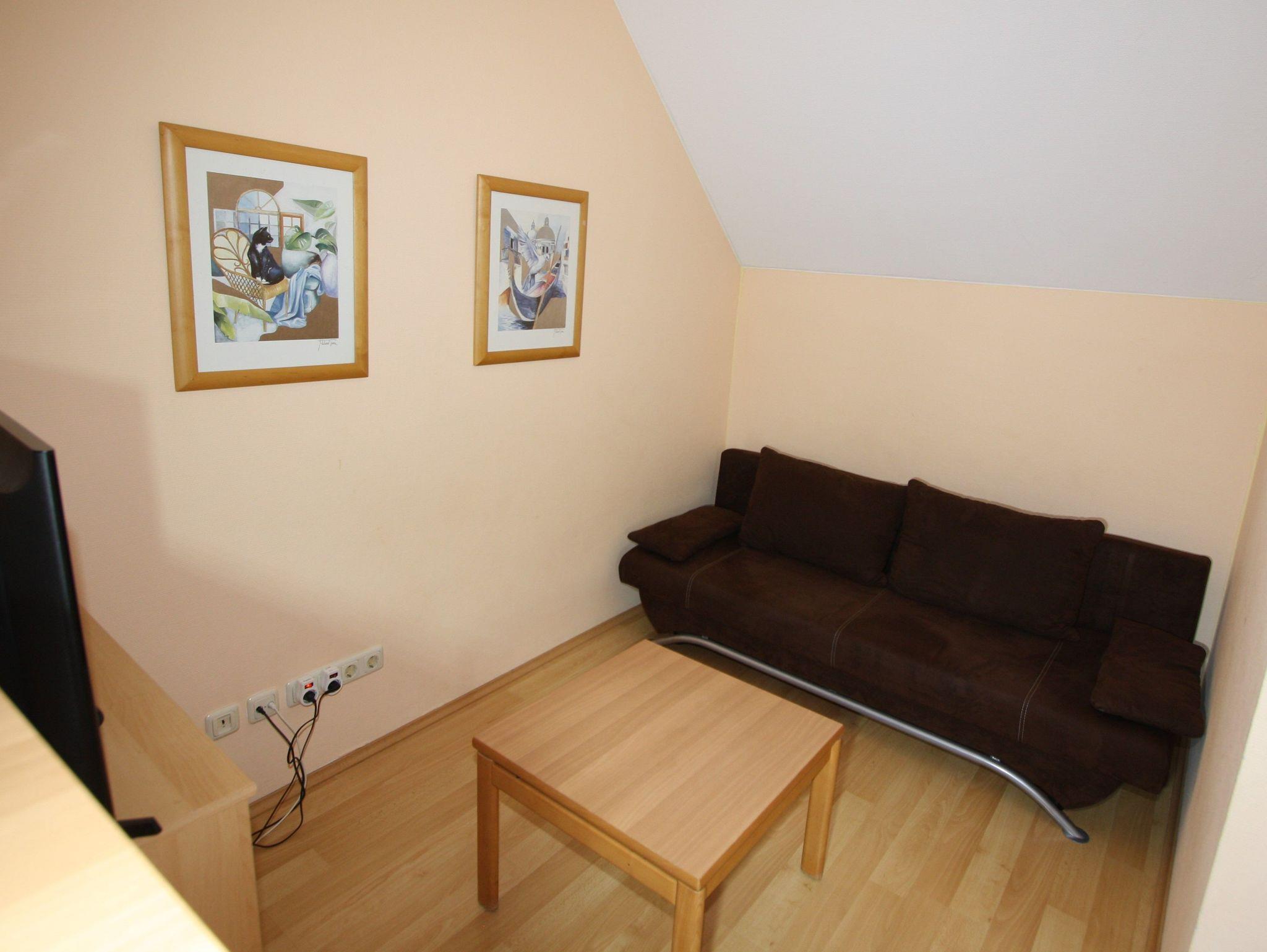 Sie wohnen in einem 2-Zimmer-Appartement bis 4 Personen, auf ca. 43 m² im Dachgeschoss. 1