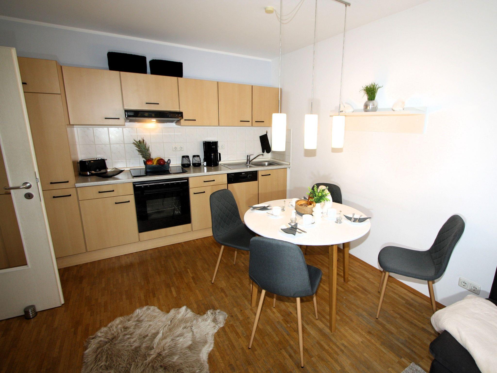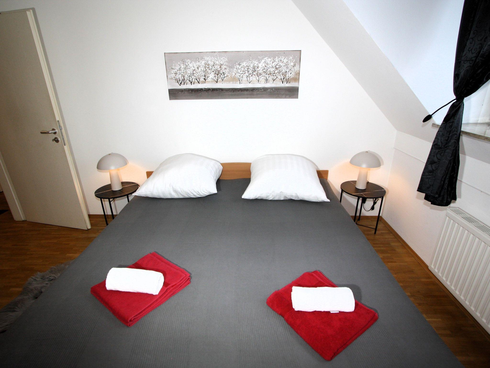 Ihre gut ausgestattete Zwei-Zimmer-Ferienwohnung für bis zu vier Personen verfügt über einen Balkon oder Terrasse, kostenfreies WLAN und sky-Empfang. Sie erreichen die Wohnung bequem mit dem Aufzug, für Ihren PKW steht ein Platz in der Tiefgarage zur Verfügung. Dort befindet sich zudem ein Waschraum mit Münzwaschmaschinen und Münzwäschetrockner und ein Platz für Ihre Fahrräder.