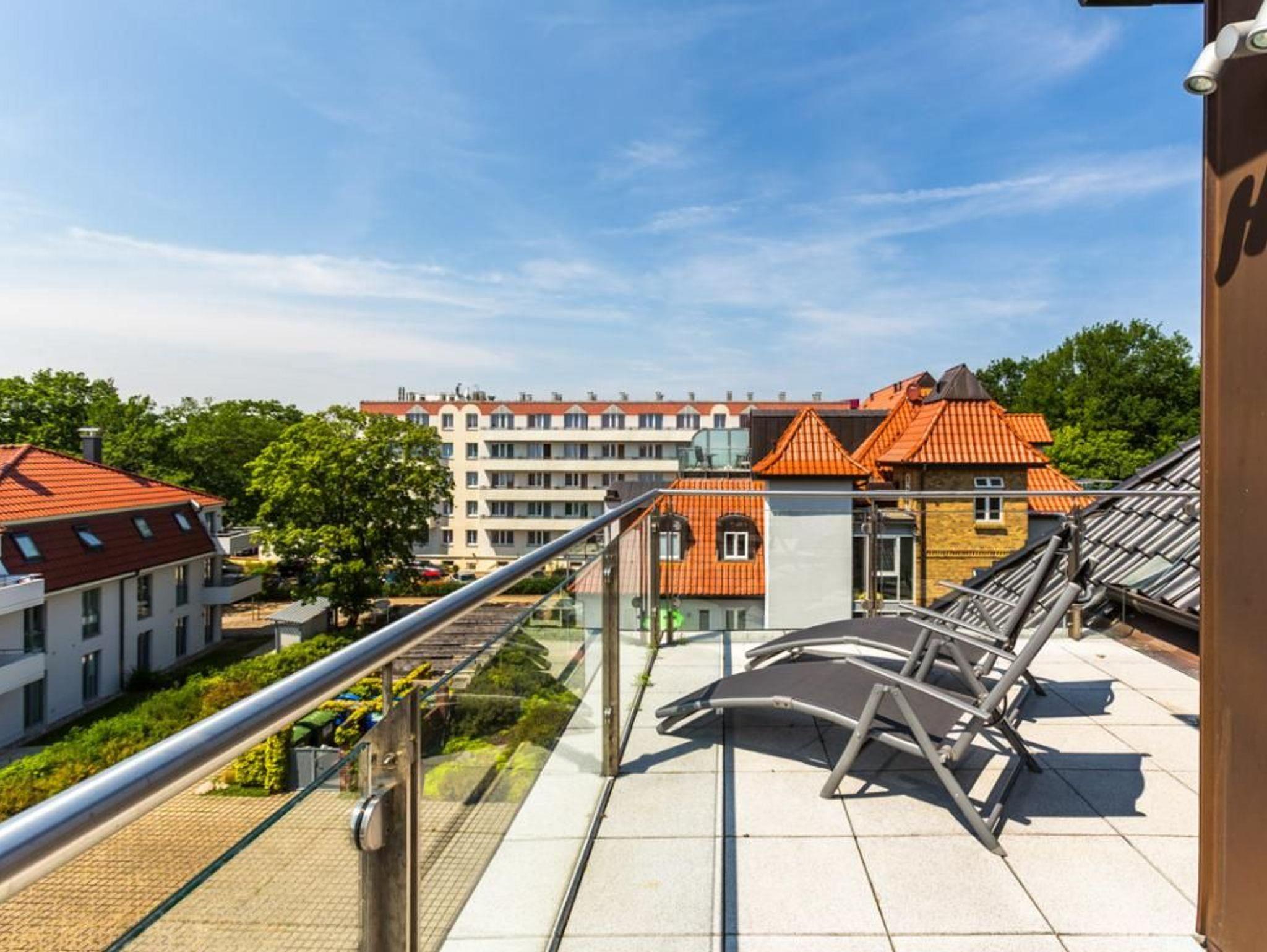 Villa Höger ist ein denkmalgeschütztes Gebäude in bester Lage des Ostseebades nahe zur Seebrücke. Hochwertig restauriert gehört diese Villa mit insgesamt 12 Wohneinheiten zu den exklusivsten Ferienunterkünften von Boltenhagen. Jedes Appartement besitzt einen Balkon oder Terrasse teilweise mit Meerblick. Ein für Sie reservierter Strandkorb am nur 30 Meter entfernten, feinsandigen Badestrand ist im Mietpreis bereits enthalten und bei Anreise sind Ihre Betten für Sie bezogen und auch Handtücher liegen bereit. WLAN ist kostenfrei vorhanden. Mit dem Fahrstuhl gelangen Sie bequem in die von Ihnen gebuchte Etage. Zudem verfügt das Haus über eine Tiefgarage. Sie residieren in naher Umgebung zum Kurpark mit Konzertbühne, 290m langer Seebrücke sowie nah zu Restaurants, Boutiquen, Fahrradverleih. Die hier beschriebene Penthouse Wohnung Villa Höger 11, ist eine schicke 3 ? Raum Maisonetten Wohnung mit zwei Dachterrassen davon eine mit Meerblick. Die Wohnfläche beträgt 80qm. Mit maximal 4 Personen verbringen Sie hier einen entspannten Urlaub. Zwei separate Schlafzimmer sowie ein Bad mit Wellness Dusche ist vorhanden. Eine offene Küchenzeile ist im Wohnbereich integriert. Nutzung von Waschmaschine und Wäschetrockner gegen Gebühr. Es handelt sich um eine Nichtraucher Wohnung. Haustiere sind nicht gestattet.