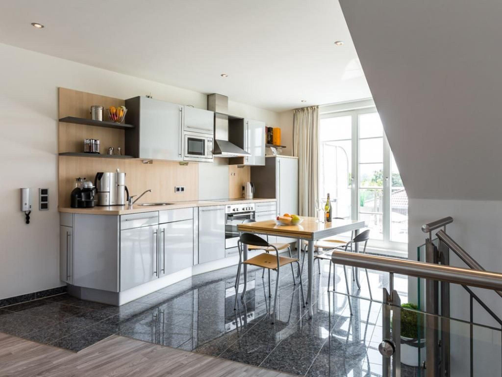Nur 30 Meter zum Strand liegt die Penthouse Wohnung 11 in der Villa Höger. Zwei große Dachterrassen, die Sie vom Wohnbereich aus betreten, bieten Sonnenbaden zur Südseite oder Meerblick zur Seeseite. Die stilvoll möblierte Maisonetten Wohnung besitzt eine Wohnfläche von 80qm und bietet mit dem geräumigen Wohnbereich auf der oberen Ebene einen attraktiven Wohn-Essbereich mit zwei behaglichen Sofas, Ruhesessel, Esstisch, Flatscreen-TV, DVD, Musikanlage. Den Internetzugang über WLAN können Sie kostenfrei nutzen. Mit viel Komfort verwöhnt die integrierte Küchenzeile mit Ceranfeldherd, Backofen, Mikrowelle, Kühlschrank mit Gefrierfach, Espressomaschine, Toaster usw. Selbstverständlich ist auch ein Geschirrspüler vorhanden.