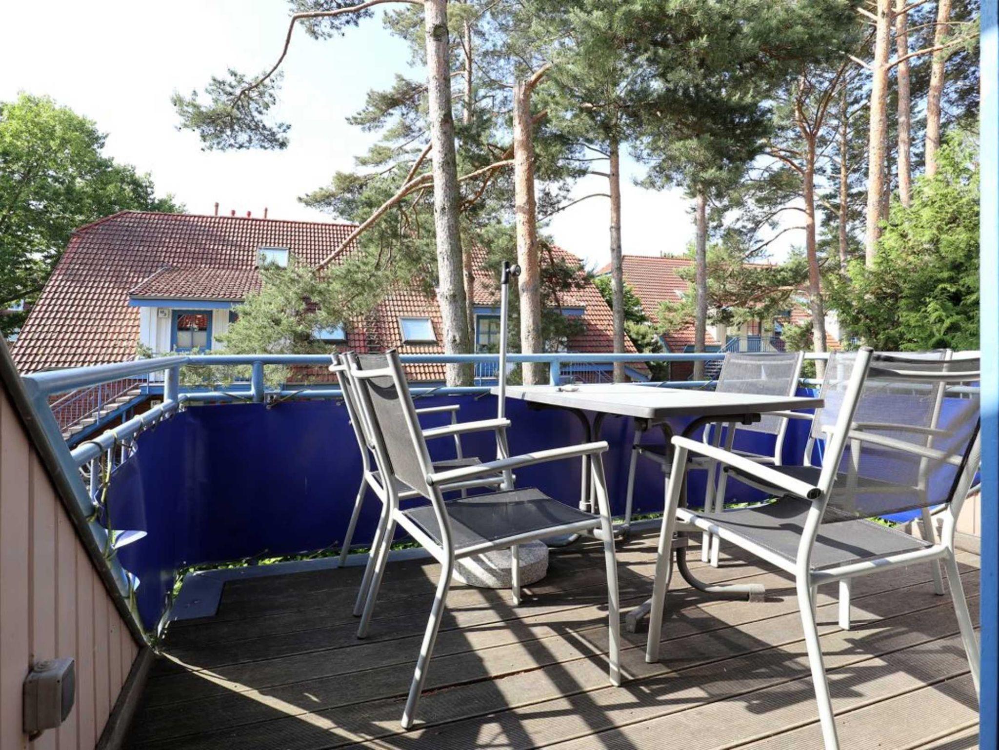 Nur 250 Meter zur Ostsee liegt die Ferienanlage Papillon. Als ideales Reiseziel für Familien, ist diese naturnahe Wohnanlage umgeben von altem Baumbestand, wo sich Kinder frei entfalten können. Nach einem kurzen Spaziergang gelangen Sie an den feinsandigen Strand mit guten Bademöglichkeiten, der während der Hauptsaison DLRG überwacht ist. Einkaufsmöglichkeiten sind ebenfalls in Kürze erreichbar. Die Anlage Papillon besteht insgesamt aus 18 Häusern, in denen sich jeweils 8 individuell eingerichtete Wohnungen befinden und jede Wohneinheit über eine Terrasse oder einen Balkon verfügt. Jede der Einheiten besitzt einen separaten Eingang, wobei die oberen Wohnungen über eine Außentreppe erreichbar sind. Die hier beschriebene 4 Zimmerwohnung Papillon 12-7 befindet sich im Obergeschoss und verwöhnt mit einem Balkon. Die Wohnfläche beträgt 67qm. Eine Belegung ist mit max. 6 Personen möglich. Eine Küchenzeile sowie drei Schlafzimmer sind vorhanden. Modernes Duschbad, Gäste WC. Waschmaschine und Wäschetrockner gegen Gebühr. Kinderhochstuhl. WLAN, 1 PKW-Außenstellplatz. Nichtraucher. Haustiere sind gegen Gebühr erlaubt.