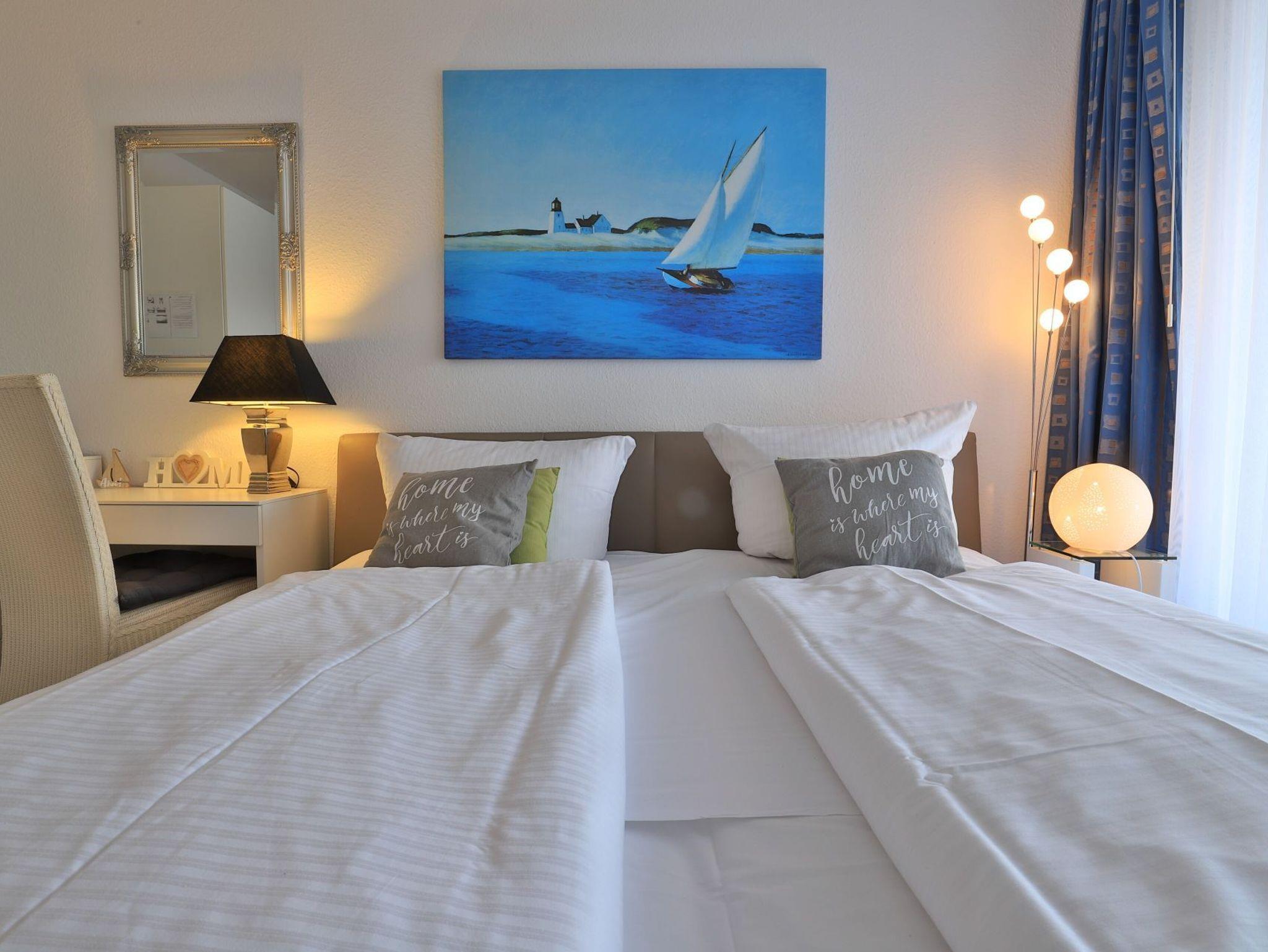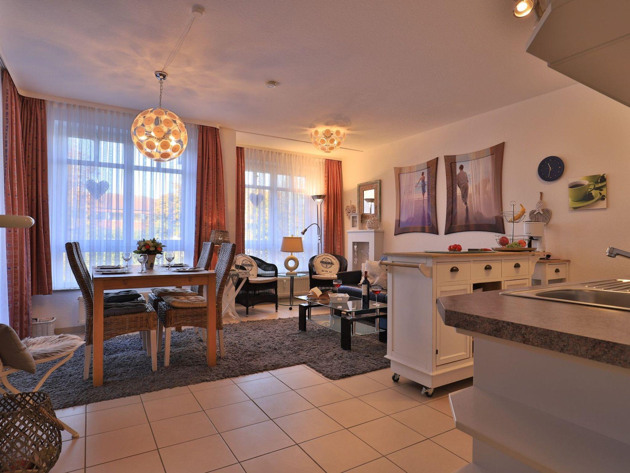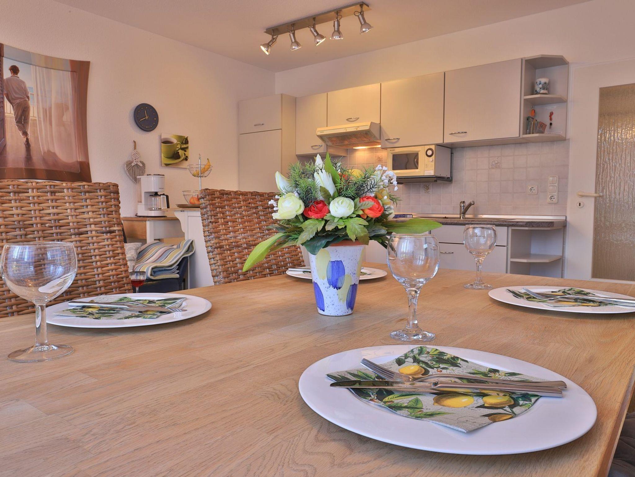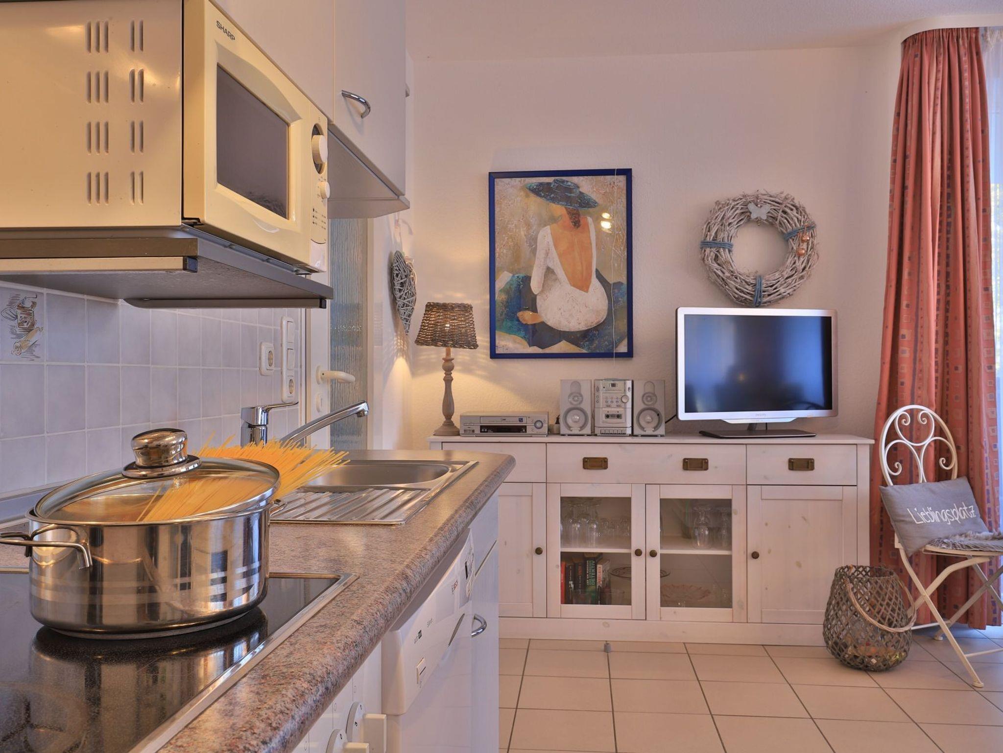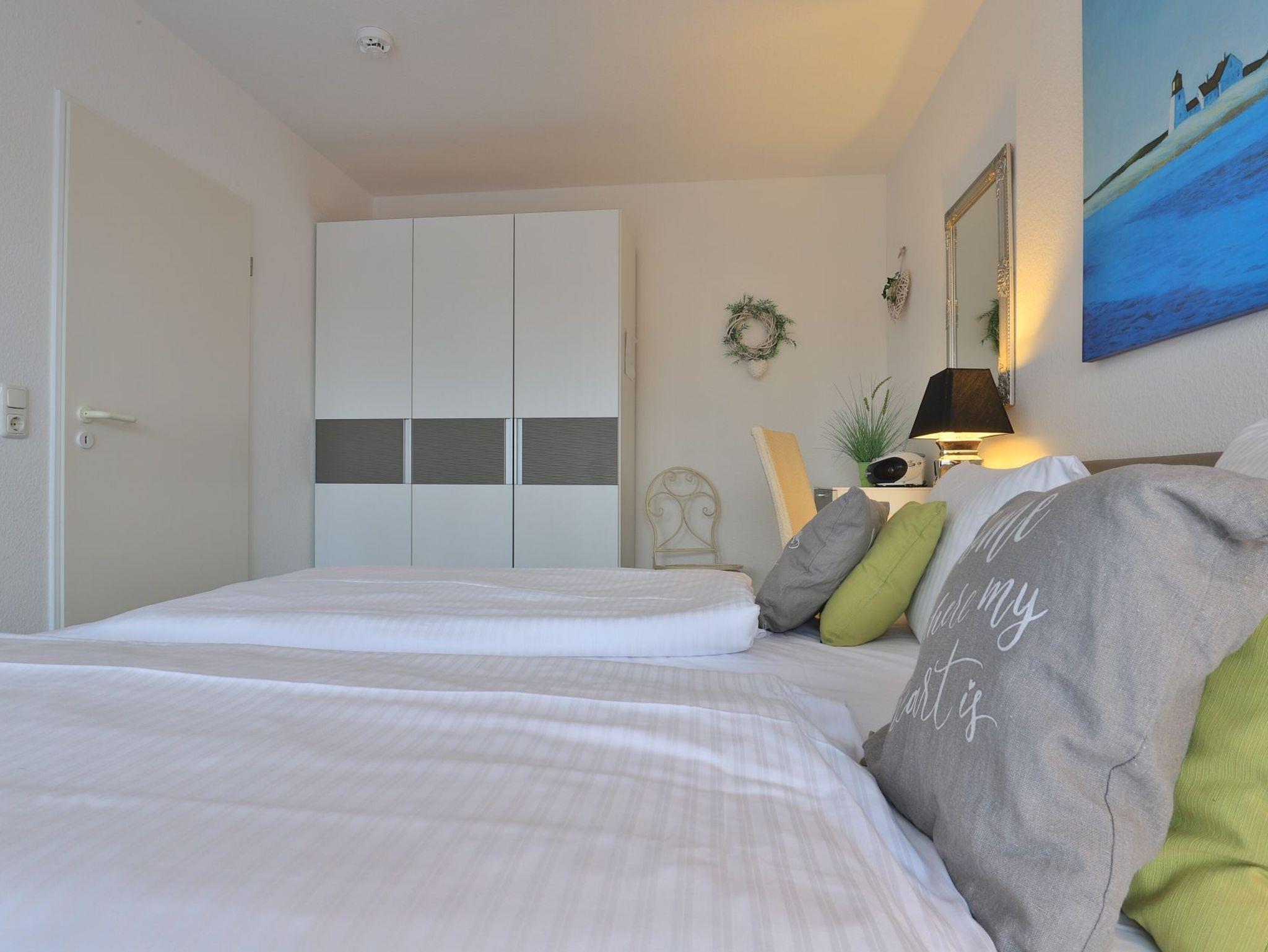 Die 2-Zimmer Ferienwohnung ?Likedeeler 18? mit Balkon, besitzt eine Wohnfläche von 49qm und ist für eine Belegung mit bis zu 4 Personen ausgestattet. Für technische Unterhaltung können Sie den Fernseher, Videorecorder und die Musikanlage nutzen zudem steht WLAN kostenfrei bereit. Im wohnlich möblierten Wohn-/Essbereich empfängt Sie ein ausziehbares Sofa, welches als Schlafsofa zwei zusätzliche Schlafgelegenheiten ermöglicht, Weitere Sitzgelegenheiten sowie ein Esstisch sind ebenfalls vorhanden. Die in den Wohnbereich integrierte Wohnküche ermöglicht die Eigenversorgung mit: Ceranherd, Backofen, Mikrowelle, Dunstabzug, Kühlschrank mit integr. Gefrierfach, Geschirrspüler, Kaffeemaschine, Wasserkocher, Toaster usw. Ihre Mahlzeiten nehmen Sie bequem am Esstisch zu sich, oder während der Sommermonate gerne auf dem saisonal möblierten Balkon in westliche Ausrichtung. Im separaten Wohlfühlschlafzimmer mit bodentiefen Fenstern, erwartet Sie ein bequemes Doppelbett, Kleiderschrank sowie ein Schreibplatz. Das Appartement verfügt über ein modernisiertes Duschbad mit Waschtisch, Handtuchheizung, Föhn, WC und kostenfreier Waschmaschinennutzung. Auch ein Bügeleisen ist in der Wohnung vorhanden. Die familienfreundliche Ausstattung umfasst Kinderhochstuhl, Kinderbett, Bollerwagen.