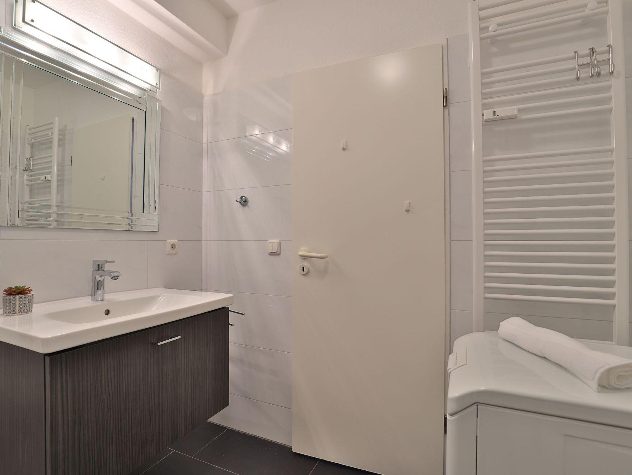 Allen Gästen des Hauses stehen im Untergeschoss Waschmaschine und Wäschetrockner gegen Gebühr zur Verfügung. Ihr Fahrzeug parken Sie in der hauseigenen Tiefgarage auf einem fest zugeordneten Stellplatz. Mit dem Fahrstuhl gelangen Sie zu den Wohnungsetagen.
