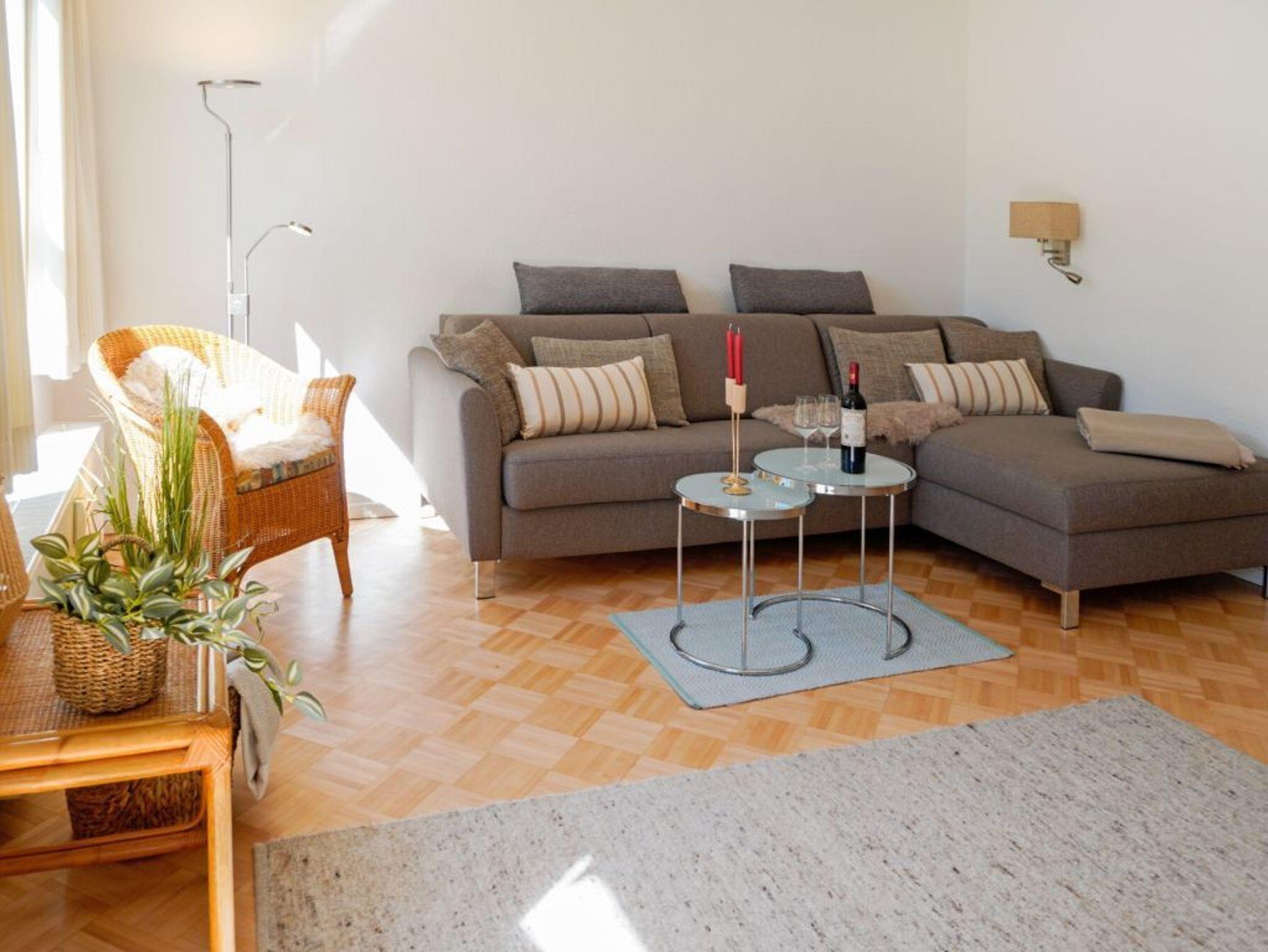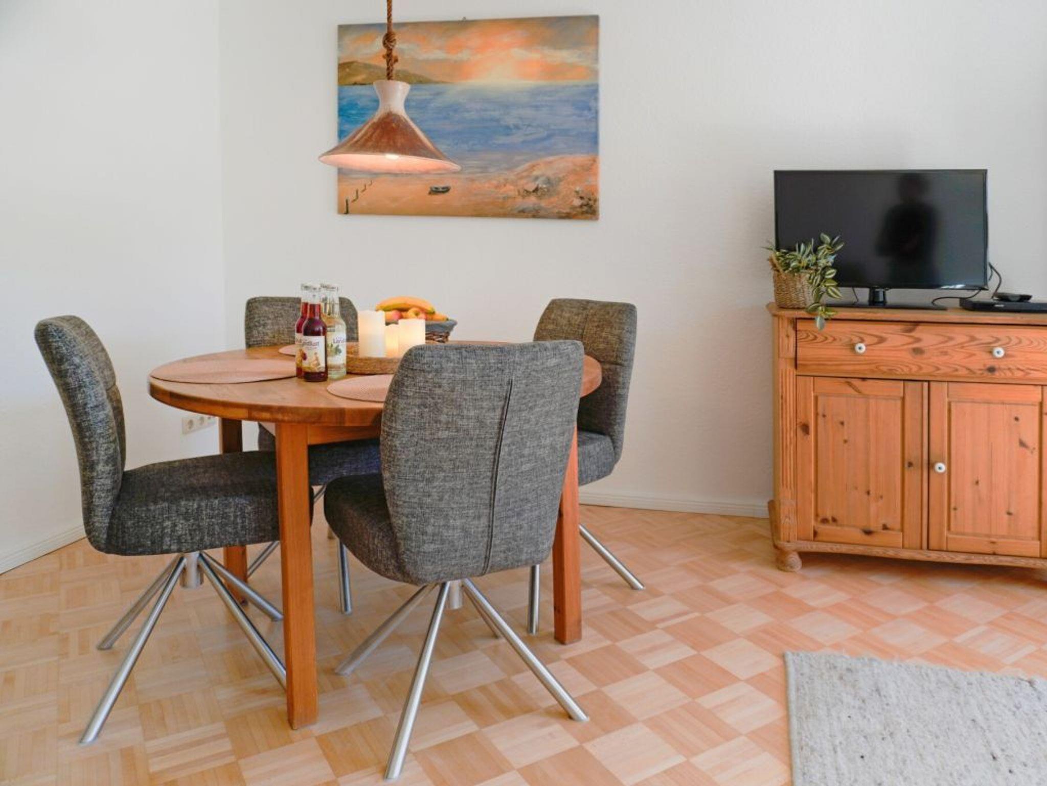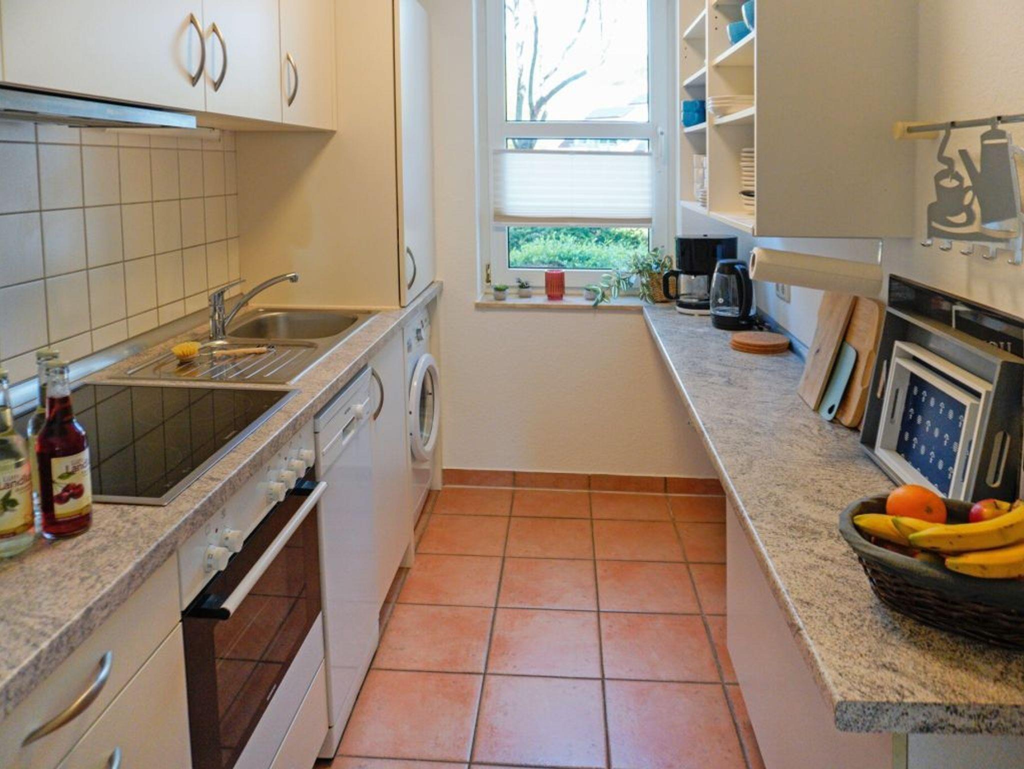 Das familienfreundliche 2-Zimmer-Ferienappartement Sünnslag 10 ? 33 befindet sich im Erdgeschoss und bietet eine saisonal möblierte Terrasse, die zu entspannenden Momenten an der frischen Luft einlädt. Die 53 m² Wohnfläche sind ideal für bis zu vier Personen. Im gemütlich eingerichteten Wohnzimmer mit ausziehbarer Schlafcouch, Lesesessel, Esstisch und Flachbild-TV haben Sie direkten Zugang zur sonnigen Terrasse. Die separate Küche ist mit Herd, Backofen, Dunstabzug, Kühlschrank, Geschirrspüler, Kaffeemaschine, Toaster und Wasserkocher vollständig ausgestattet ? so lassen sich Mahlzeiten im Urlaub ganz bequem zubereiten. Eine Waschmaschine steht Ihnen kostenfrei zur Verfügung. Das separate Schlafzimmer mit Doppelbett und großzügigem Kleiderschrank sorgt für erholsame Nächte. Hinzu gehört ein modernisiertes Duschbad mit Waschtisch, WC. Ein kleiner Abstellraum innerhalb der Wohnung bietet zusätzlichen Stauraum. Ihr PKW parkt kostenfrei auf dem für Sie reservierten Außenstellplatz direkt vor der Wohnanlage. Bitte beachten Sie, dass Haustiere in dieser Wohneinheit nicht gestattet sind. Bettwäsche und Handtücher können auf Wunsch gegen Gebühr hinzugebucht werden und sind bei Ankunft in unserem Büro erhältlich.