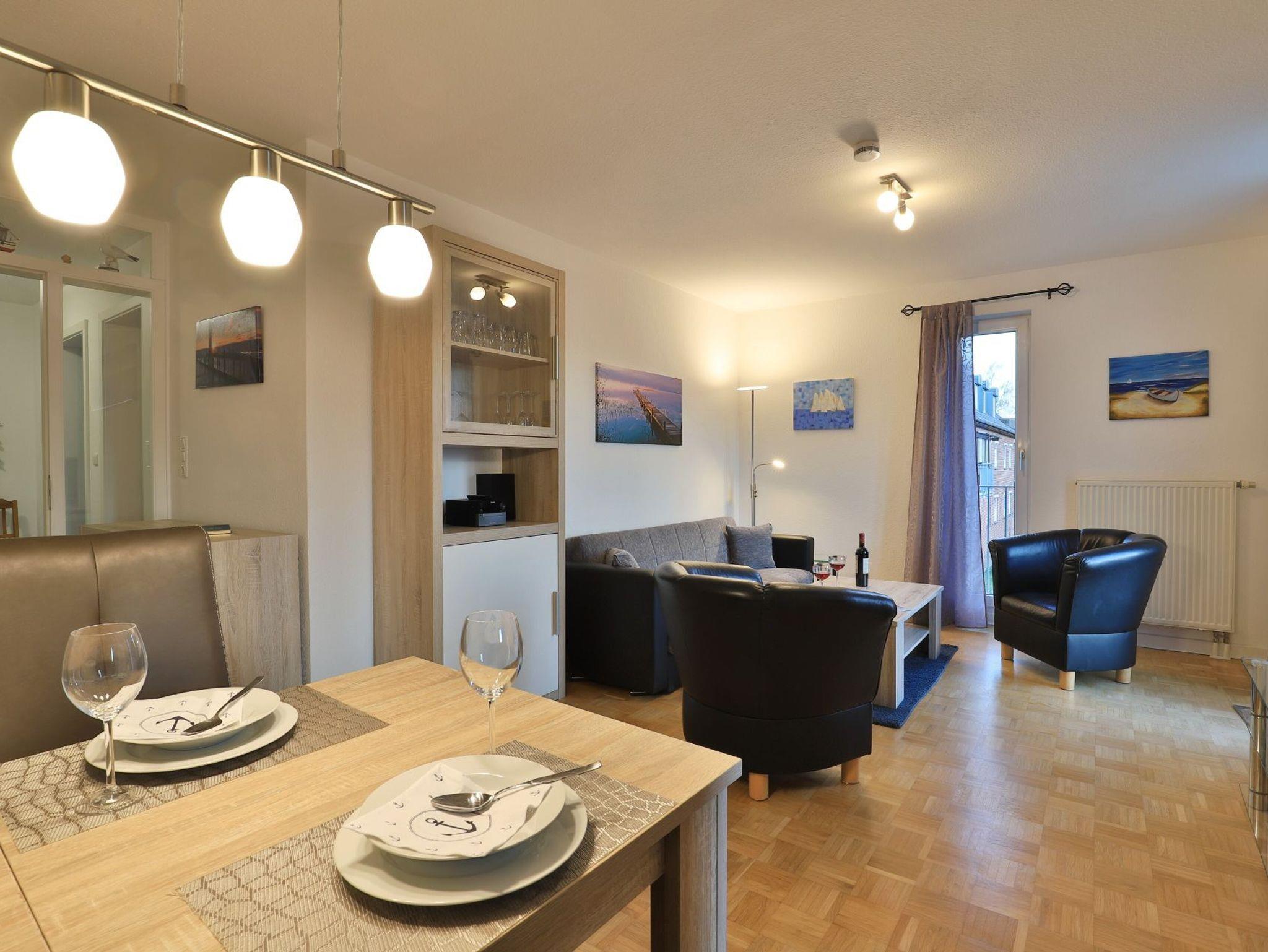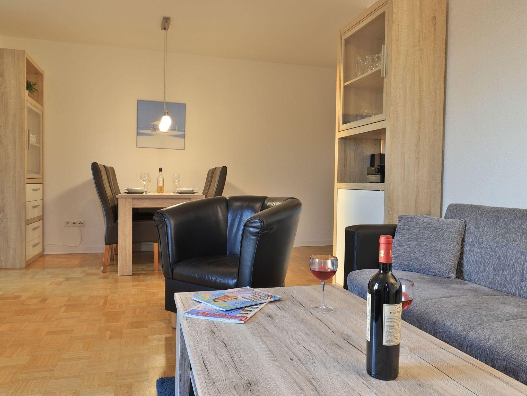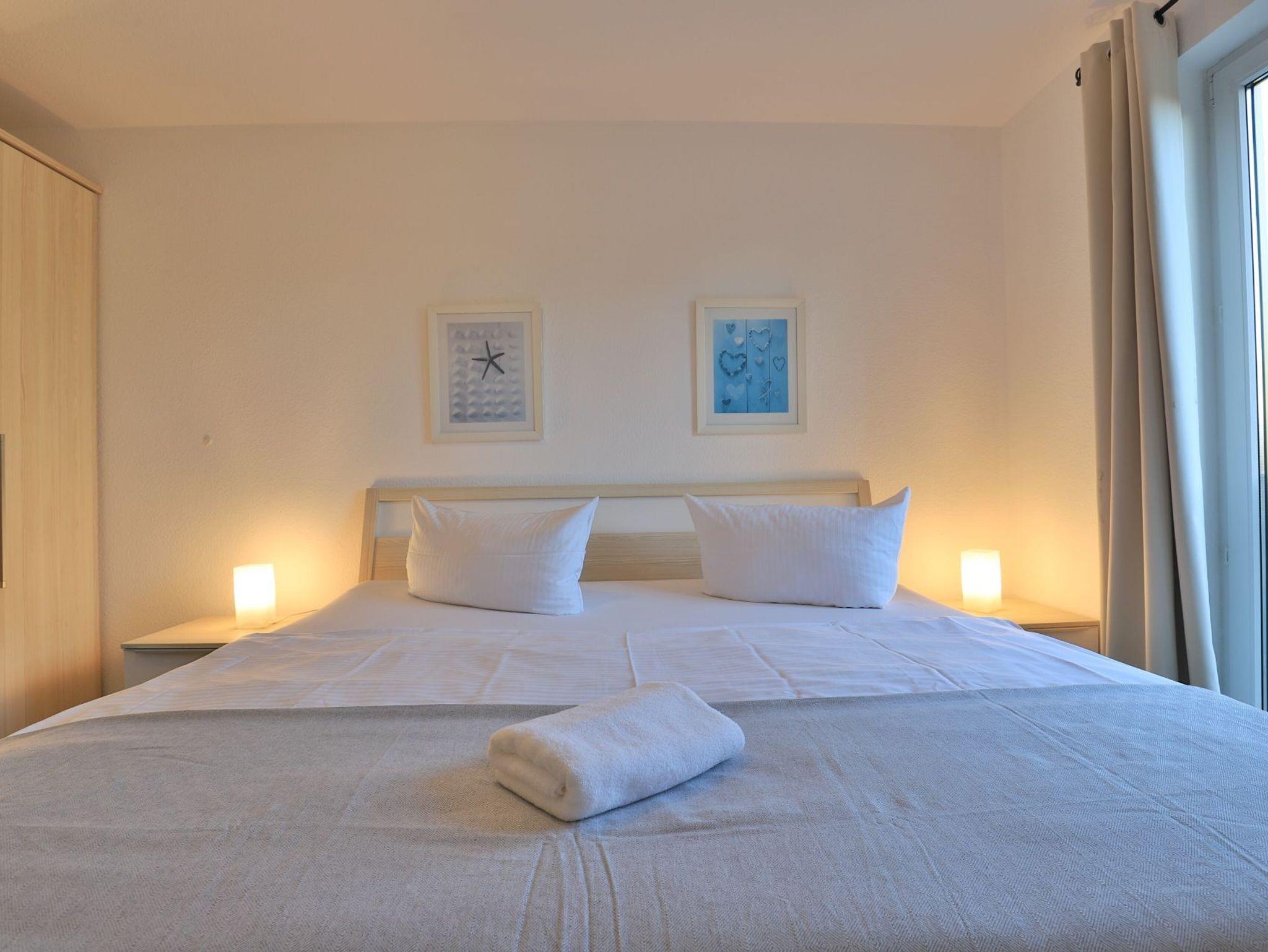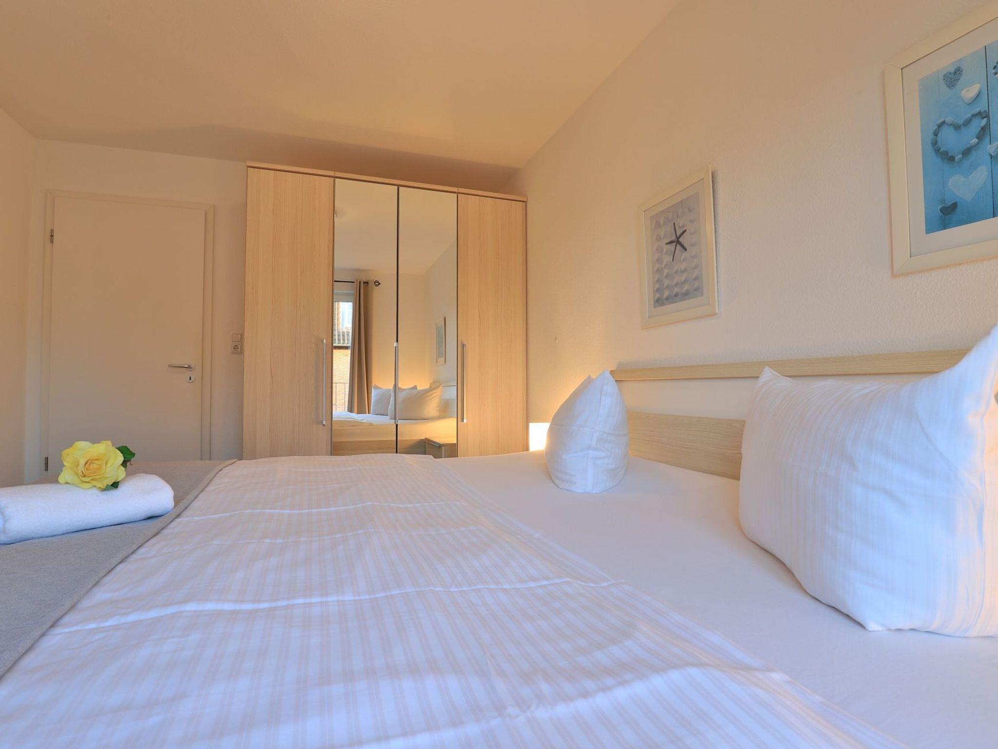 Das 3-Zimmer Appartement Seeschwalbe 8, bietet Ihnen eine Wohnfläche von ca.74qm und ist bestens geeignet für eine Belegung mit bis zu 4 Personen. Mit dem Fahrstuhl gelangen Sie bequem in das 1.Obergeschoss. Das komfortabel möblierte Wohn- und Esszimmer ist mit einer Sofagarnitur, Beistelltisch, Esstisch mit vier Sitzplätzen sowie Fernseher und Musikanlage ausgestattet. WLAN kann gebührenfrei genutzt werden. Vom Wohnbereich aus gelangen Sie auf den saisonal möblierten Balkon. Die voll ausgestattete Küche ist separat und bestens geeignet, um sich eigenständig zu versorgen. Ceranfeldherd, Backofen, Mikrowelle, Kühlschrank mit integr. Gefrierfach, Kaffeemaschine, Wasserkocher, Toaster usw. Ihre Nächte verbringen Sie in zwei separaten Schlafzimmern. Eines ist mit einem Doppelbett und Kleiderschrank möbliert. Das zweite Schlafzimmer lädt mit zwei Einzelbetten, Kleiderschrank und einem zweiten Fernseher zum Wohlfühlen ein. Die familienfreundliche Ausstattung umfasst einen Kinderhochstuhl und Kinderbett. Zugehörig ist ein modernisiertes Vollbad mit Wanne und darin integr.Duschfunkton, Waschtisch, Handtuchheizung, Föhn, WC.