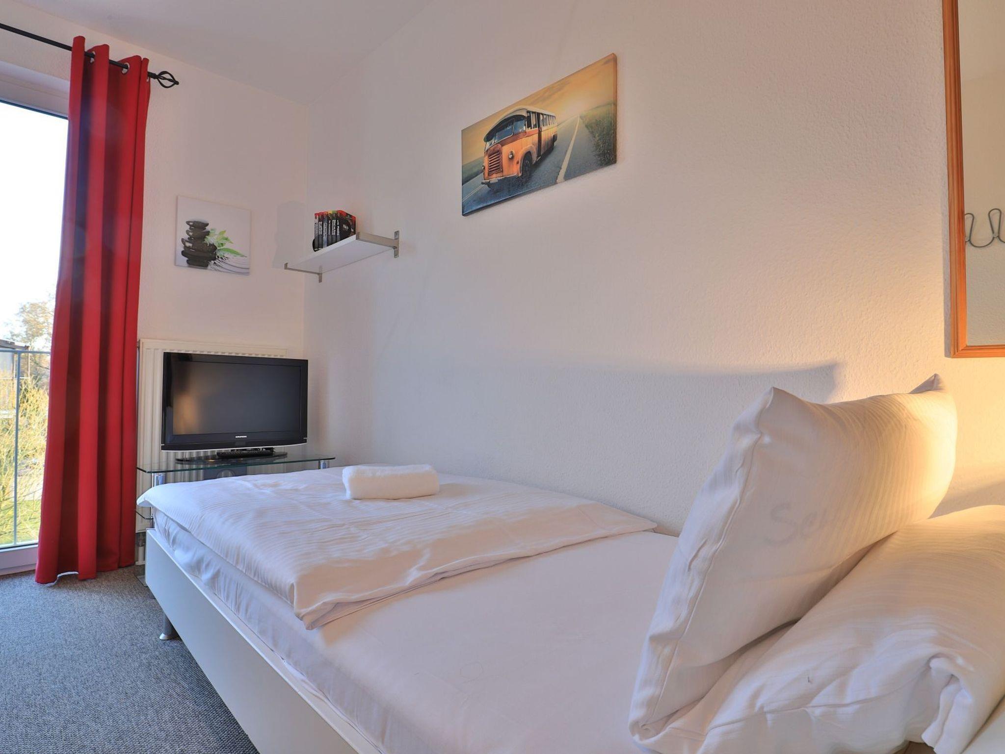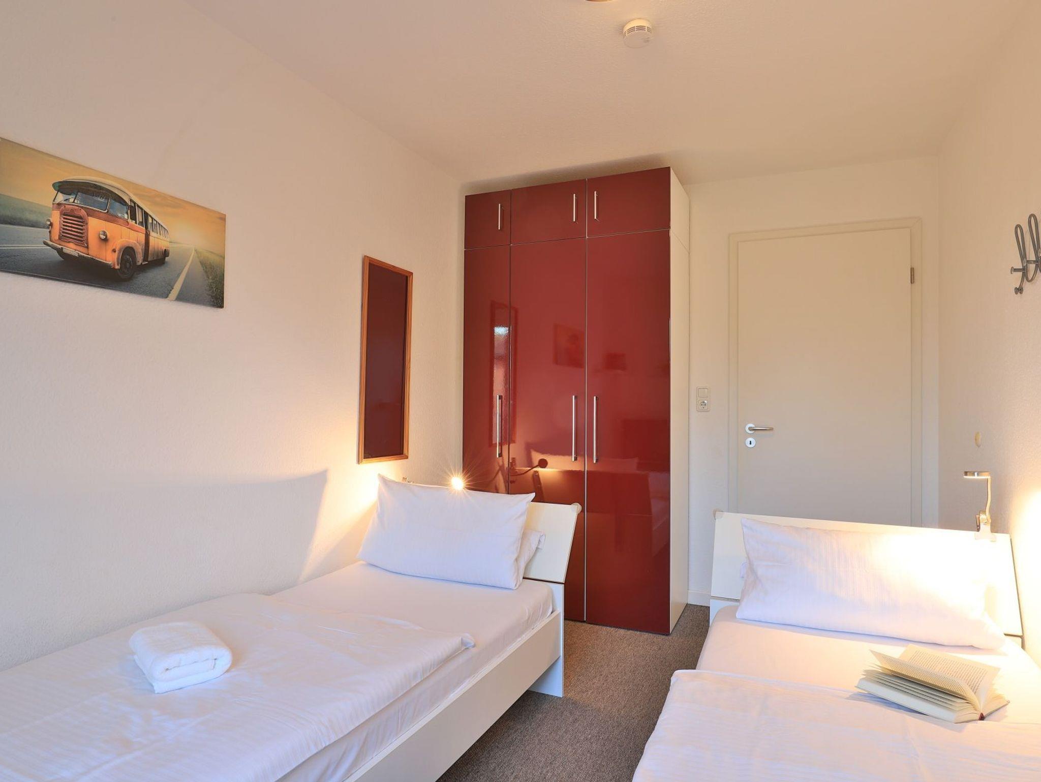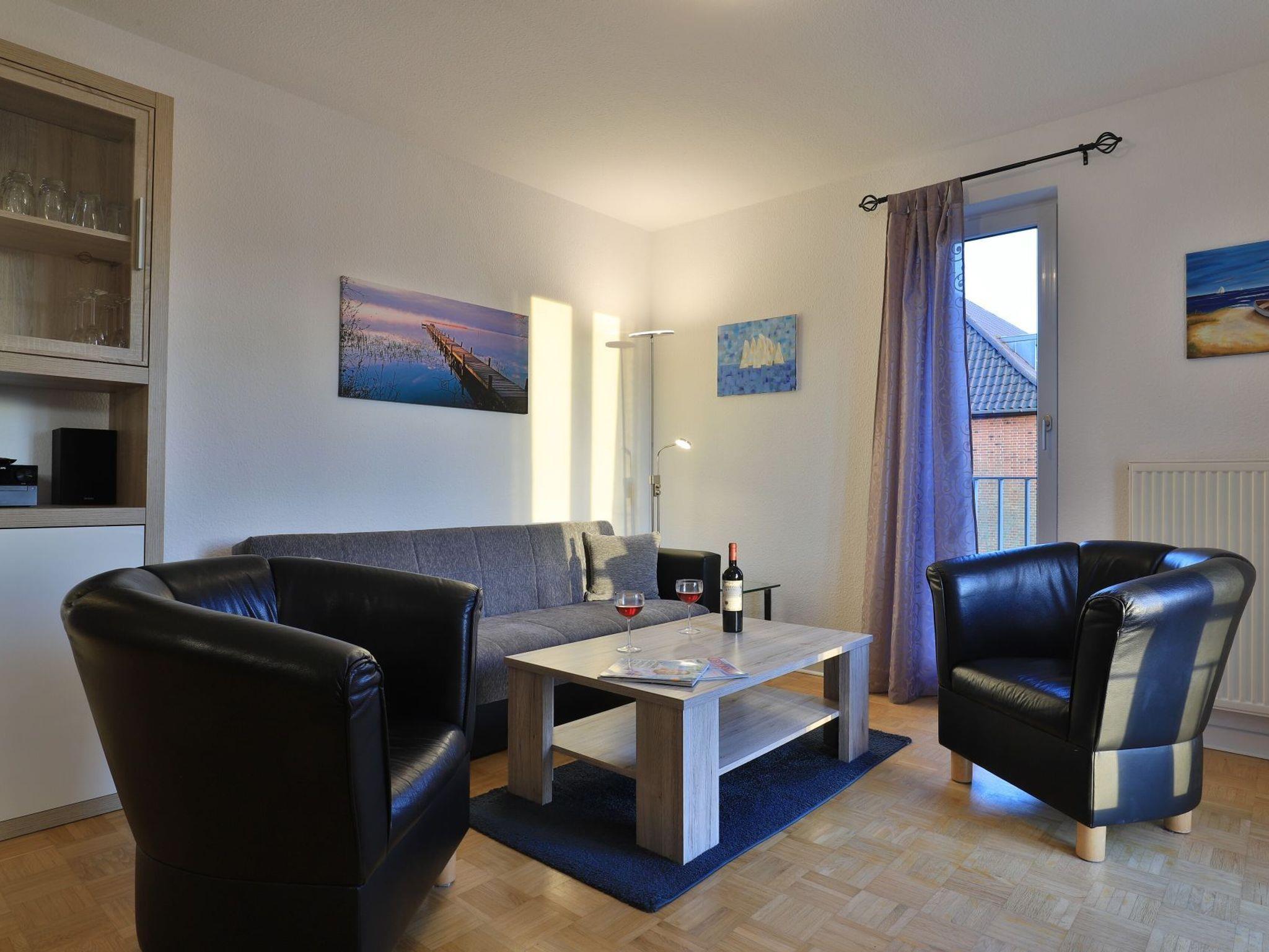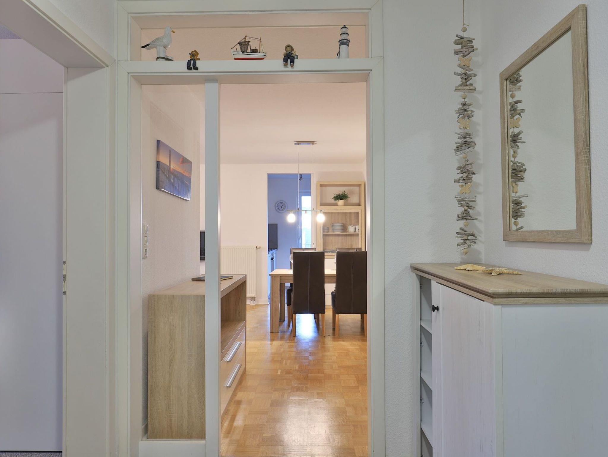 Das 3-Zimmer Appartement Seeschwalbe 8, bietet Ihnen eine Wohnfläche von ca.74qm und ist bestens geeignet für eine Belegung mit bis zu 4 Personen. Mit dem Fahrstuhl gelangen Sie bequem in das 1.Obergeschoss. Das komfortabel möblierte Wohn- und Esszimmer ist mit einer Sofagarnitur, Beistelltisch, Esstisch mit vier Sitzplätzen sowie Fernseher und Musikanlage ausgestattet. WLAN kann gebührenfrei genutzt werden. Vom Wohnbereich aus gelangen Sie auf den saisonal möblierten Balkon. Die voll ausgestattete Küche ist separat und bestens geeignet, um sich eigenständig zu versorgen. Ceranfeldherd, Backofen, Mikrowelle, Kühlschrank mit integr. Gefrierfach, Kaffeemaschine, Wasserkocher, Toaster usw. Ihre Nächte verbringen Sie in zwei separaten Schlafzimmern. Eines ist mit einem Doppelbett und Kleiderschrank möbliert. Das zweite Schlafzimmer lädt mit zwei Einzelbetten, Kleiderschrank und einem zweiten Fernseher zum Wohlfühlen ein. Die familienfreundliche Ausstattung umfasst einen Kinderhochstuhl und Kinderbett. Zugehörig ist ein modernisiertes Vollbad mit Wanne und darin integr.Duschfunkton, Waschtisch, Handtuchheizung, Föhn, WC.