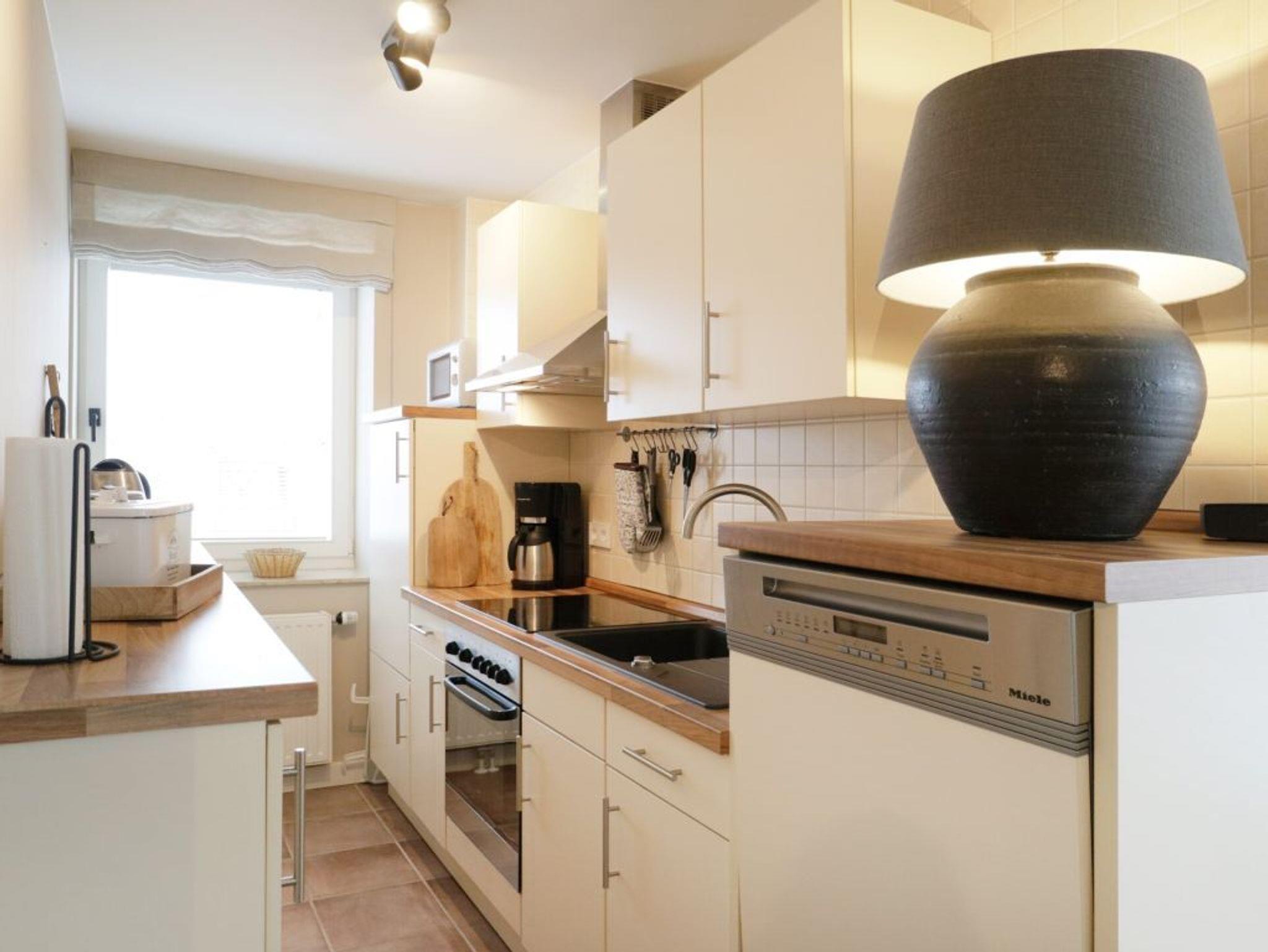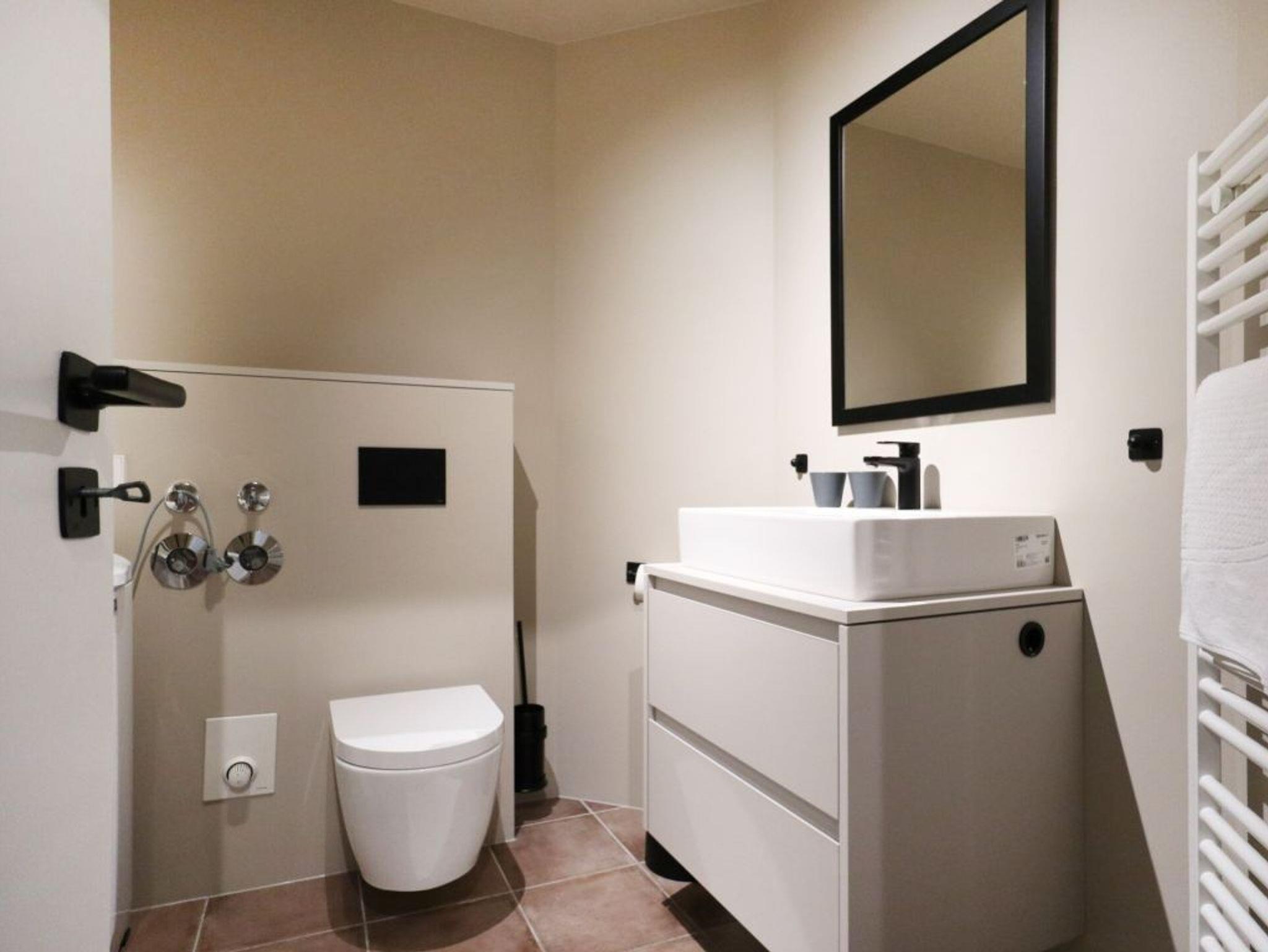 Zugehörig ist ein modernisiertes Duschbad mit Waschtisch, Handtuchheizung, Föhn und WC sowie Fußbodenheizung. Auch eine Waschmaschine kann genutzt werden.