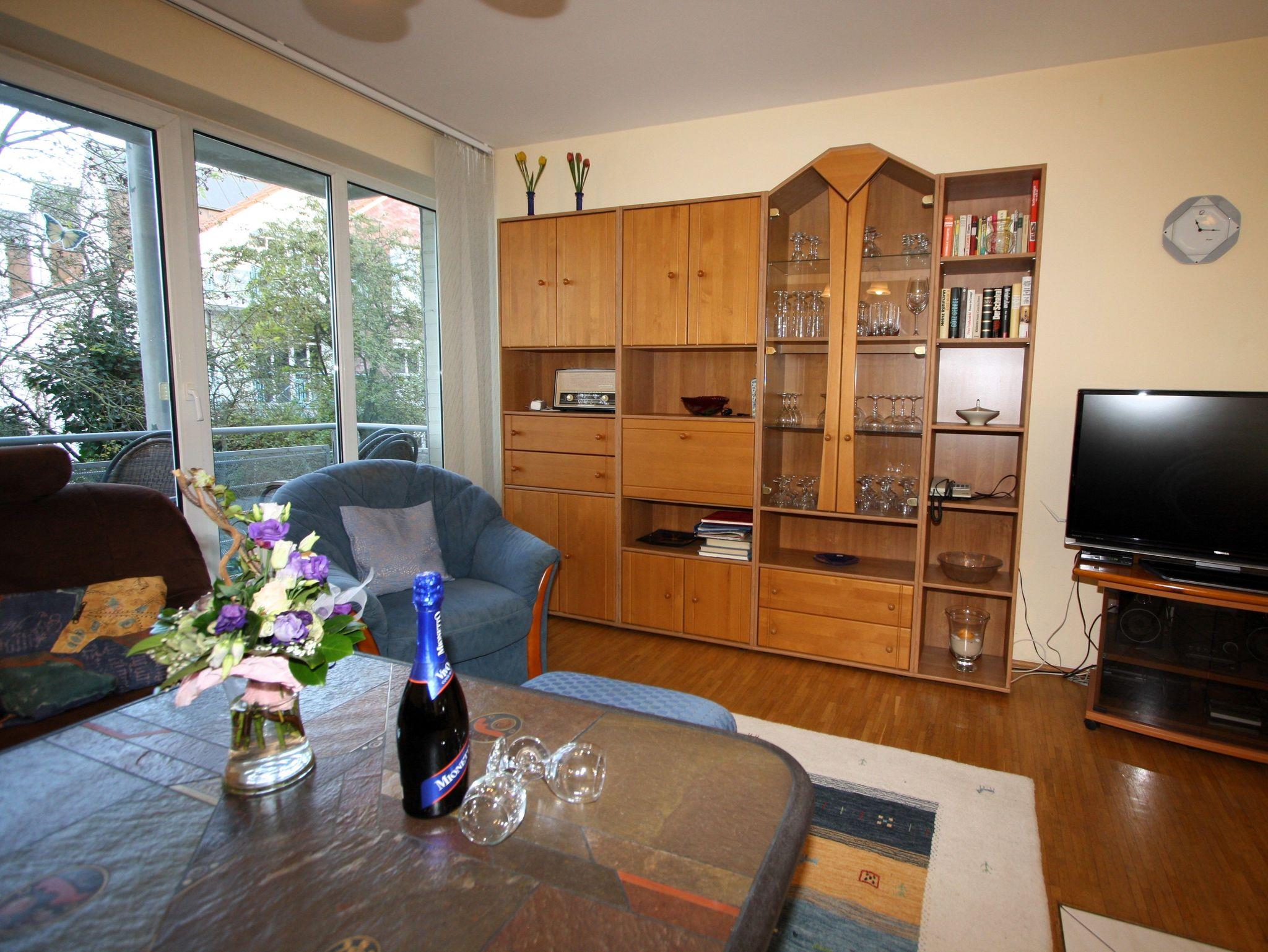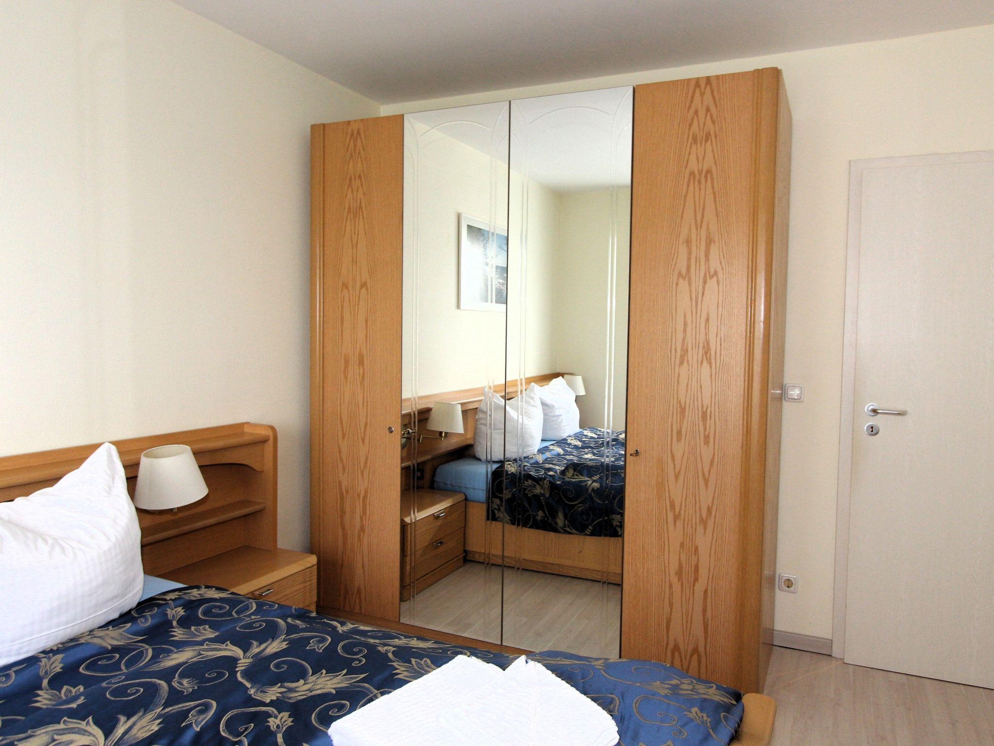 Ihre gut ausgestattete Zwei-Zimmer-Ferienwohnung für bis zu vier Personen verfügt über einen Balkon oder Terrasse, kostenfreies WLAN und sky-Empfang. Sie erreichen die Wohnung bequem mit dem Aufzug, für Ihren PKW steht ein Platz in der Tiefgarage zur Verfügung. Dort befindet sich zudem ein Waschraum mit Münzwaschmaschinen und Münzwäschetrockner und ein Platz für Ihre Fahrräder.