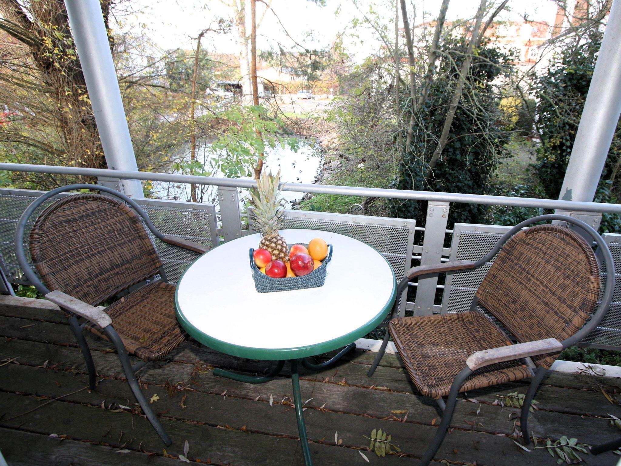 Vor dem nach Westen ausgerichteten Balkon liegt ein idyllischer Naturteich. Sie können hier ausspannen, die Singvögel beobachten und den Sonnenuntergang geniessen.
