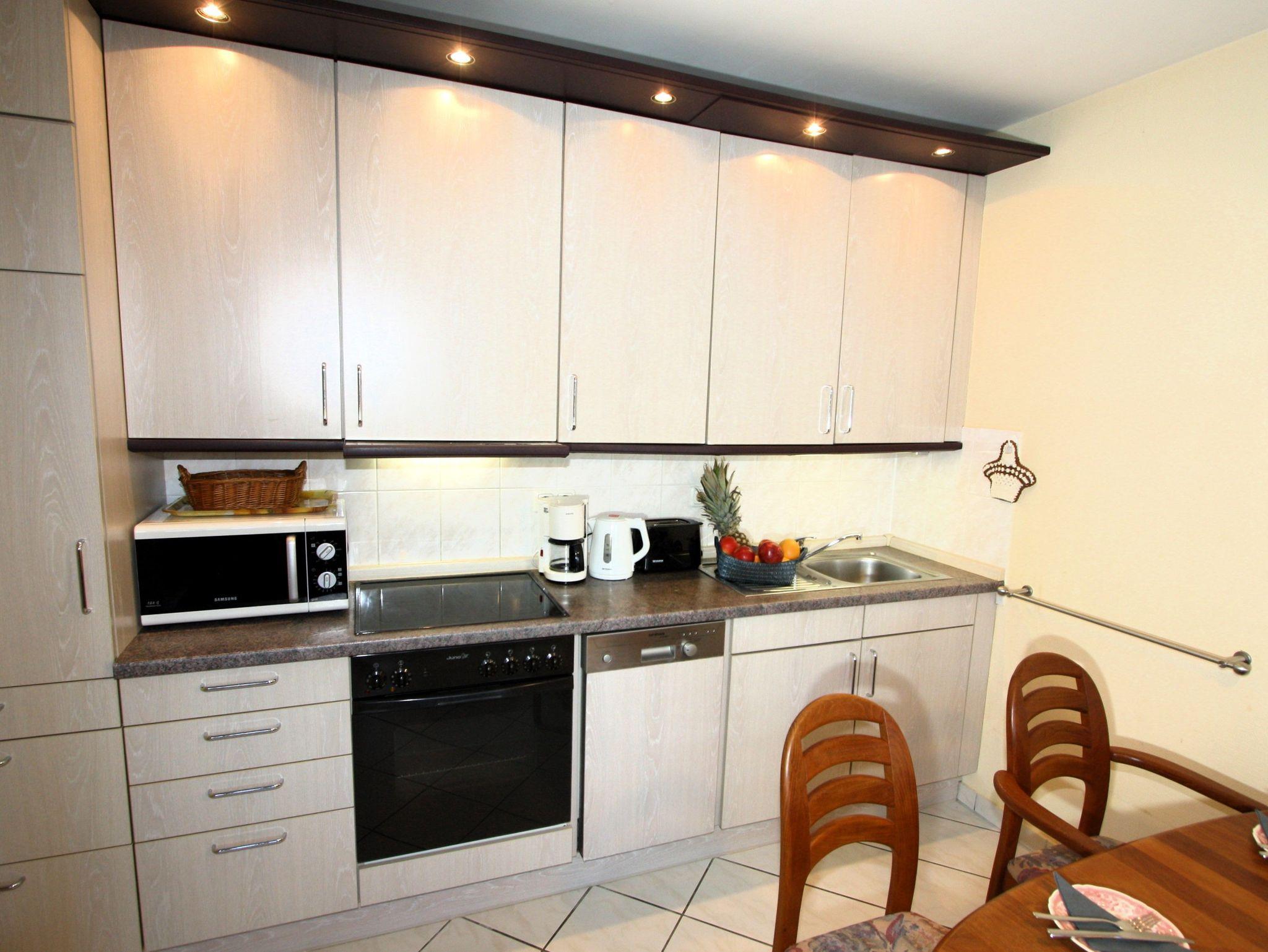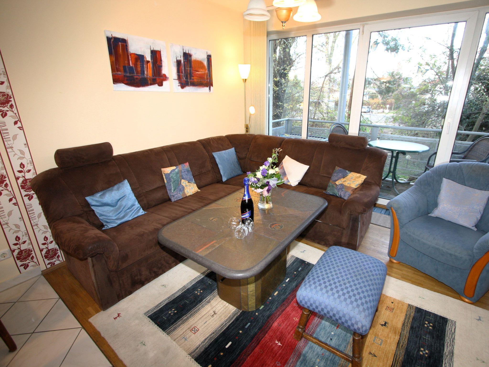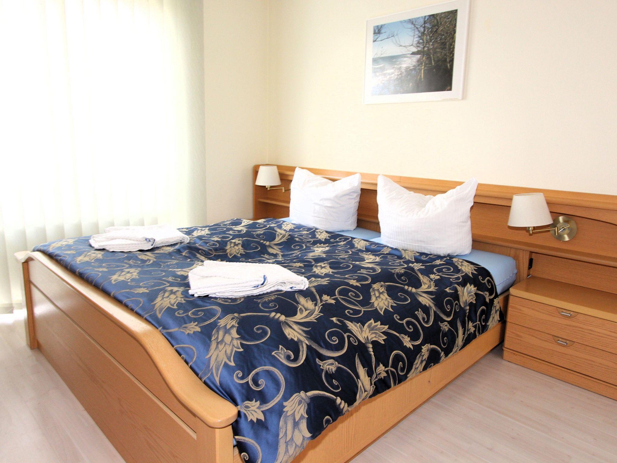 hier urlauben Sie in einem umfassend ausgestatteten, ruhigen 2-Zimmer-Appartement für bis zu 4 Personen auf ca. 48 m² Wohnfläche im 1. OG. Mit dem Fahrstuhl erreichen Sie ohne Stufen und Schwellen schnell und bequem den Wohlfühlbereich (temperiertes Hallenbad und gegen Gebühr Saunen) im Untergeschoss des Hauses, sowie Ihren PKW-Stellplatz in der Tiefgarage.