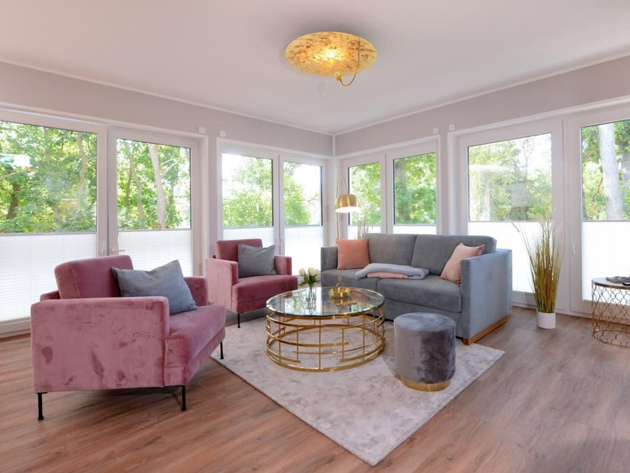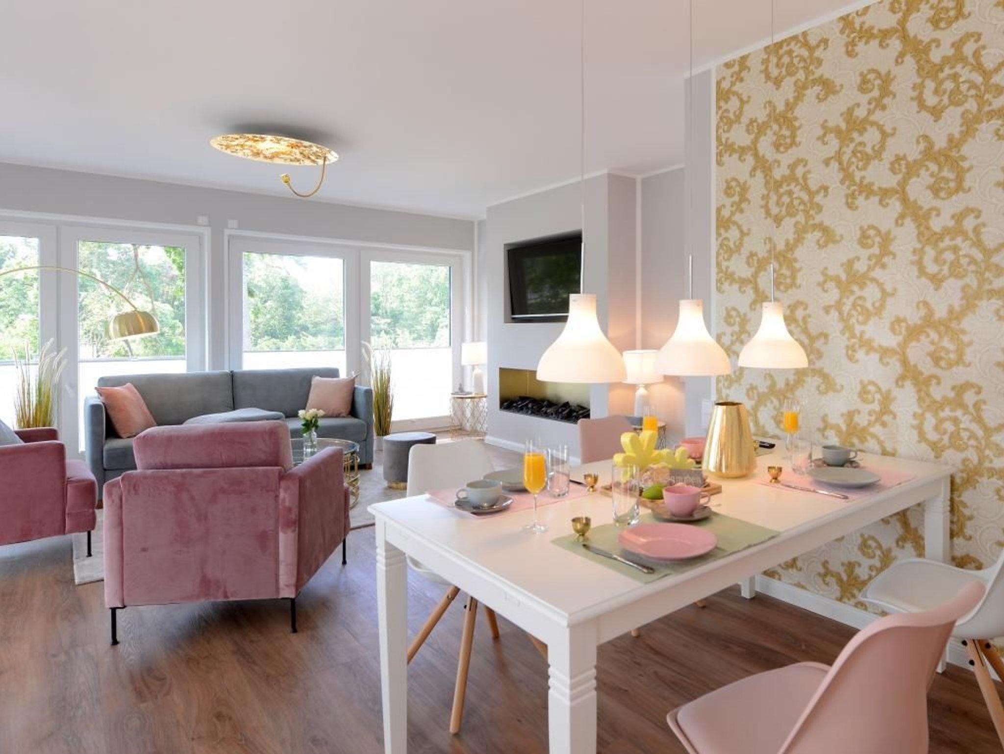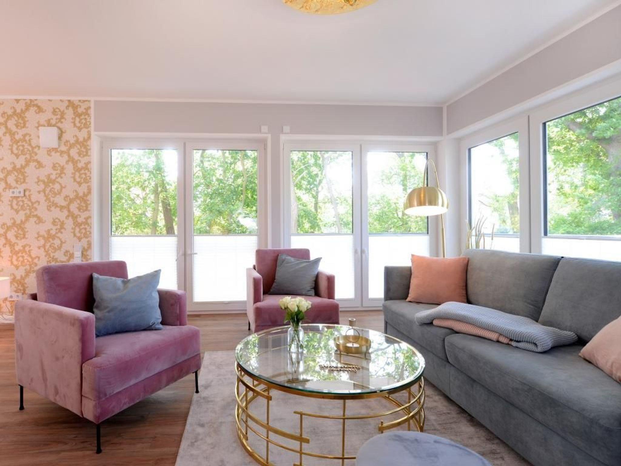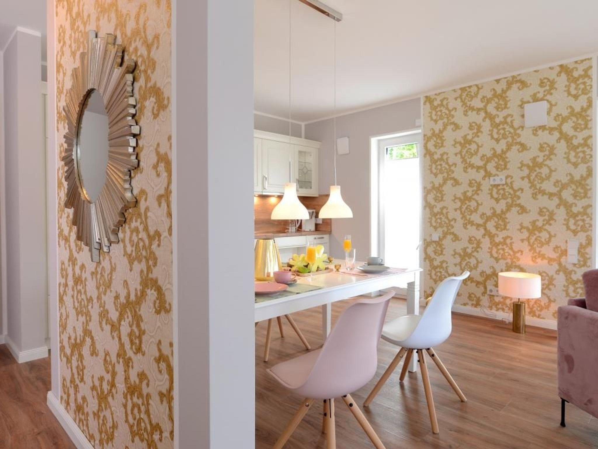 Dieses rollstuhlgerechte, modern eingerichtete 2- Zimmer- Appartement befindet sich im 1. Obergeschoss der Villa. Großzügige 70 m² bieten bis zu 4 Gästen ein bezauberndes Wohnambiente für Ihren Traumurlaub. Sie erreichen das rollstuhlgerechte Appartement bequem über einen Lift. Es empfängt Sie ein lichtdurchfluteter Wohn- und Essbereich. Bodentiefe Fensterfronten lassen die sorgfältig ausgewählte Einrichtung erstrahlen. Hier befindet sich der Zugang zum hübsch möblierten, nordöstlich gelegenen Balkon, welcher durch einen Sichtschutz Ihre Privatsphäre wahrt. Das geschmackvolle Sofa-Ensemble lädt zum Relaxen ein. Mit Blick auf den großen Elektrokamin lassen Sie Ihre Seele baumeln. Das stylische Funktionssofa lässt sich mühelos in ein bequemes Doppelbett verwandeln. Ein Flachbild- TV sowie kostenfreies WLAN sorgen für Unterhaltung. Die integrierte, technisch sehr hochwertig ausgestattete Küchenzeile mit Geschirrspüler, Kühlschrank mit Gefrierfunktion, Backofen, Mikrowelle, Cerankochfeld und vielem mehr lässt keine Wünsche offen. Der große Esstisch für 4 Personen lädt zu geselligen Abenden und einem gemeinsamen Frühstück ein. Für eine erholsame Nachtruhe nach erlebnisreichen Tagen ist ebenfalls gesorgt: das charmant eingerichtete Schlafzimmer mit höhenverstellbarem Doppelbett lässt Sie ins Land der Träume gleiten. Erwachen Sie hier mit Meeresrauschen und erhaschen Sie einen Blick auf das Meer. Der beleuchtete Kleiderschrank mit ausreichend Stauraum sowie ein weiteres TV- Gerät runden die Einrichtung ab. Das moderne Tageslichtbad mit ebenerdiger Wellnessdusche und Duschsitz, unterfahrbarem Waschtisch sowie WC mit Haltegriffen ist rollstuhlgerecht eingerichtet.