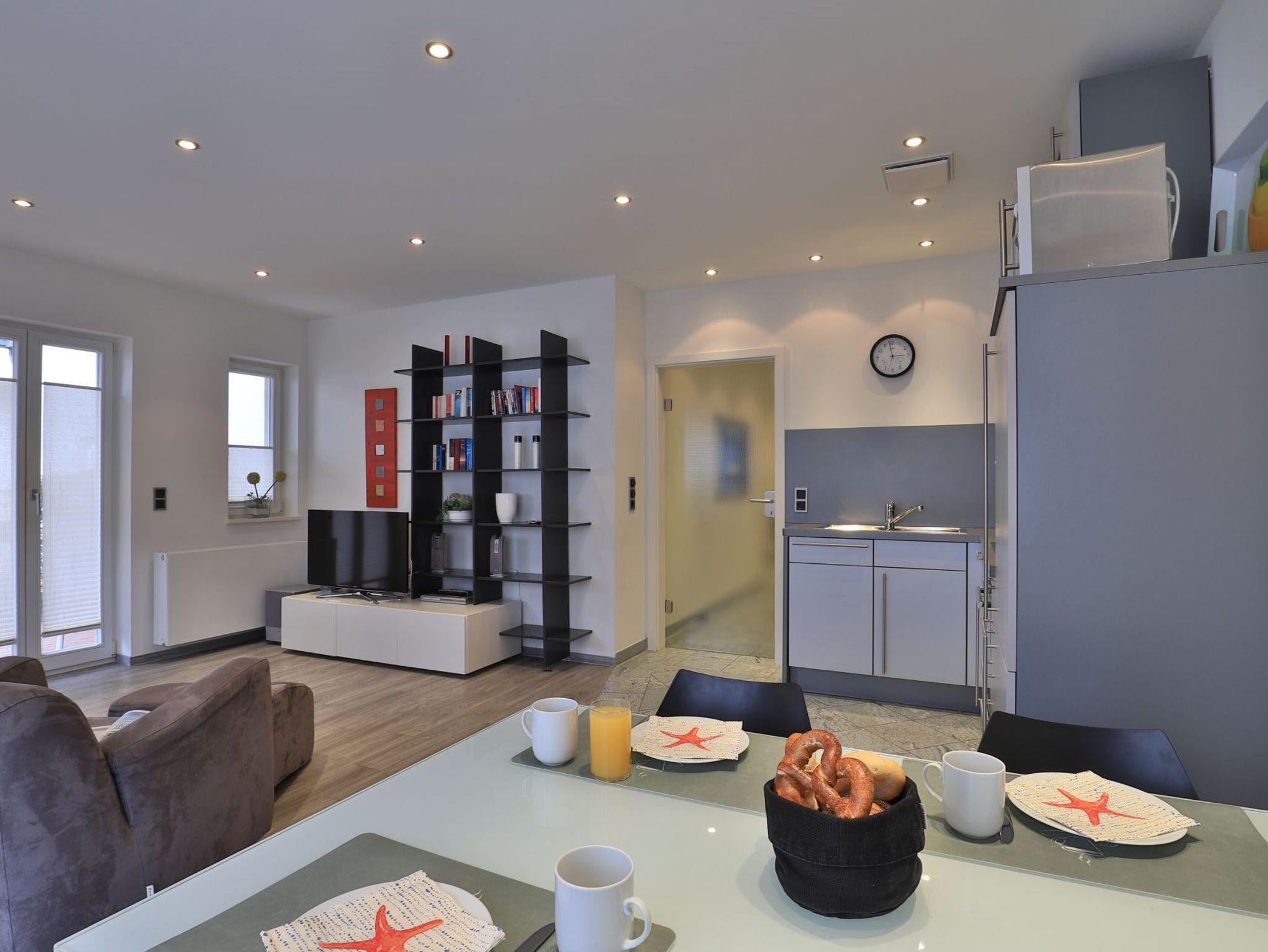 Das sehr hochwertig eingerichtete 3-Zimmer Appartement mit Terrasse, empfängt bis zu 4 Personen auf einer großzügigen Wohnfläche von 62qm. In nur 30 Meter gelangen Sie an den Ostseestrand. Der stilvoll und helle Wohn-/Essbereich verwöhnt die Gäste mit einem Komfort Sofa, Relax- Ruhesessel, Flachbild-Fernseher, DVD-Player, Musikanlage, WLAN kostenfrei. Die offene Küche ist bestens ausgestattet mit Ceranfeld, Backofen, Dunstabzug, Mikrowelle, Spülmaschine, Kaffeemaschine, Wasserkocher und weiteren Küchenutensilien. Ihre zubereiteten Mahlzeiten können Sie an einem großen Esstisch einnehmen. Angenehme Nächte verbringen Sie in dem schicken Schlafzimmer mit Doppelbett und Kleiderschrank und TV-Gerät, wie ebenso in dem weiteren Schlafzimmer mit zwei Einzelbetten und einem begehbaren Ankleidezimmer. Bei Anreise sind Ihre Betten bereits für Sie bezogen und Handtücher liegen bereit. Das moderne Duschbad mit Granitbelag und Fußbodenheizung sowie Glas- Duschkabine und Kosmetikspiegel, lässt Sie vergnügt den Urlaubstag beginnen. Auch ein Gäste- WC befindet sich im Ferienappartement. Eine Waschmaschine & Wäschetrockner können gegen Gebühr genutzt werden. Während der Saison steht ein kostenfreier Strandkorb am Strand bereit. Ihren PKW parken Sie in der Tiefgarage des Hauses, wo sich auch ein Abstellraum für selbst mitgebrachte Fahrräder befindet. Bitte beachten Sie, dass es sich um eine Nichtraucher Wohnung handelt, in der Haustiere nicht gestattet sind. Sie verbringen Ihren Aufenthalt in direkter Lage an der Mittelpromenade und erreichen in wenigen Gehminuten den fast 5 Kilometer langen Sandstrand von Boltenhagen.