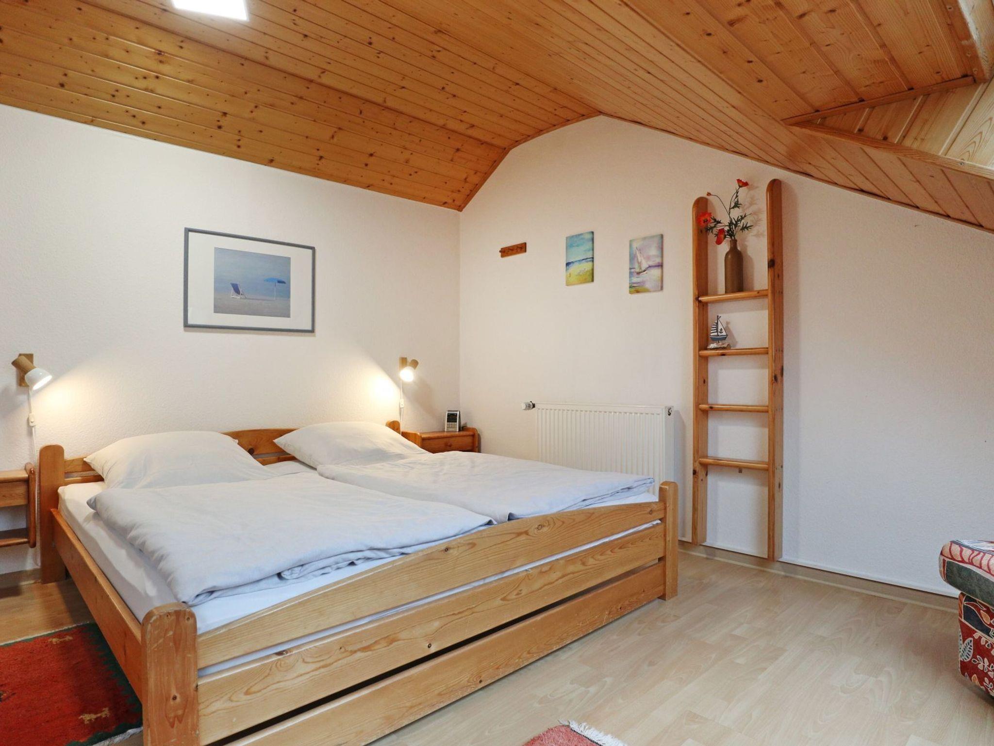 Das Ferienhaus im Urlauberdorf 40b ist ein Mittelhaus von drei Einheiten. Es befindet sich in einem kleinen Waldgebiet nur 350 Meter zum Strand. Das behaglich eingerichtete Feriendomizil mit Terrasse, erstreckt sich über zwei Ebenen und verfügt über eine großzügige Wohnfläche von 63qm. Für bis zu 4 Personen bietet das Haus ideales Wohnen. Es empfängt Sie ein attraktiver Wohn-/ Essbereich mit einem Kaminofen, Sofa, Sessel, Esstisch, Flachbild- TV, Musikanlage und kostenfreier WLAN- Nutzung (ab Dezember 2022 schnelles WLAN (Glasfaseranschluss) verfügbar). Entspannen können Sie auf der saisonabhängig möblierten Süd Terrasse. In den Wohnbereich ist eine voll ausgestattete, offene Küchenzeile integriert. Herd, Geschirrspüler, Mikrowelle, Kaffeemaschine, Toaster, Wasserkocher usw. sind vorhanden. Auf der Wohnebene befinden sich zudem ein Schlafzimmer mit zwei Einzelbetten und Kleiderschrank sowie ein Duschbad mit Waschmaschine. Im Obergeschoss, welches Sie über eine Treppe erreichen, ist ein weiteres Schlafzimmer mit Doppelbett und Kleiderschrank. Für kleine Kinder sind auch ein Reisebett und Hochstuhl vorhanden. Für Ihren PKW steht ein kostenfreier Stellplatz am Haus bereit. Es handelt sich bei diesem Angebot um ein Nichtraucherhaus, in dem Haustiere nicht gestattet sind. Für Familien mit Kindern bietet das strandnahe Urlauberdorf Ferien in naturnaher Umgebung. Gute Einkaufsmöglichkeiten befinden sich in ca. 400 Meter.