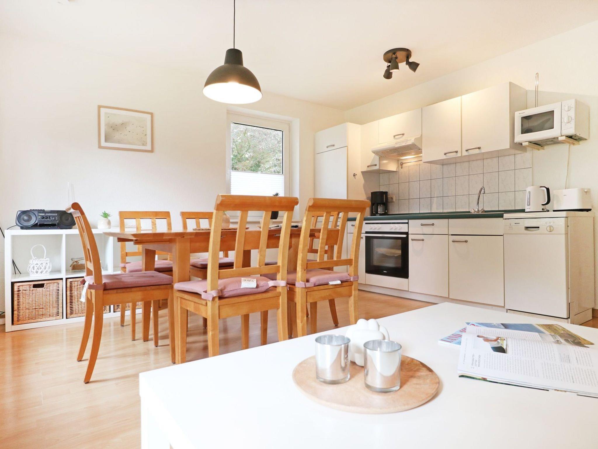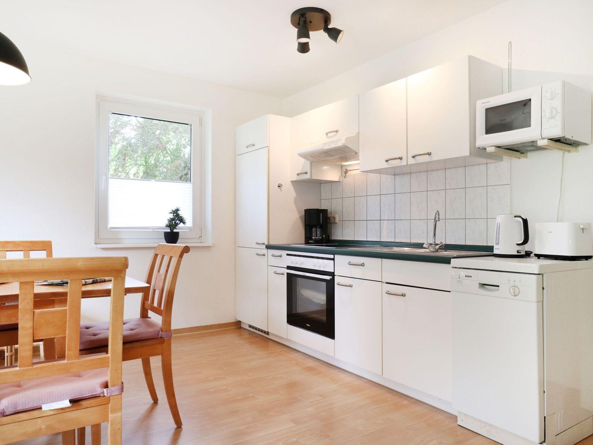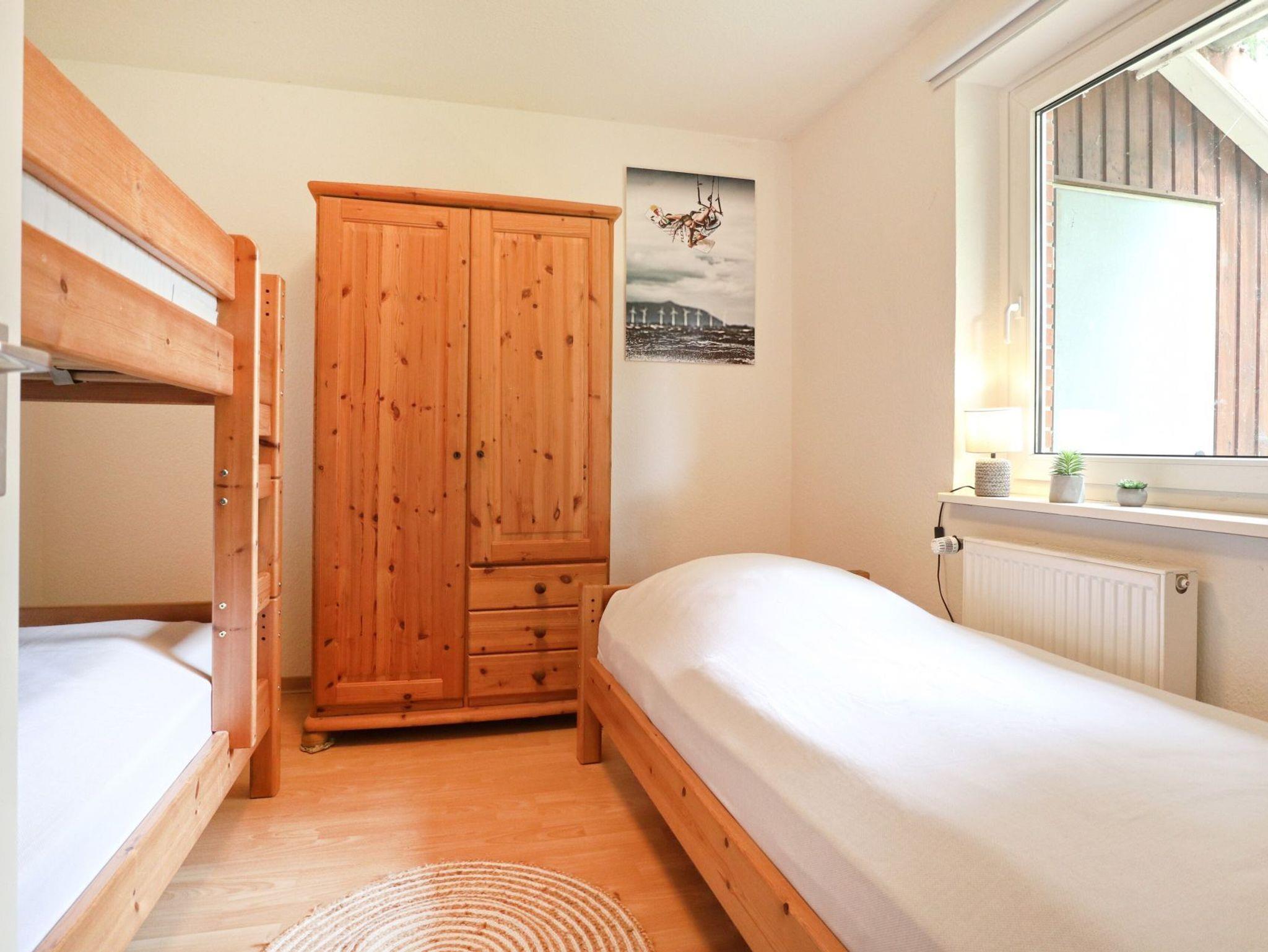 Das Ferien Reihenhaus - Urlauberdorf 36B - mit Süd -West Terrasse bietet auf 63qm familienfreundliches Wohnen zum Wohlfühlen. Der gemütliche Wohn- und Essbereich ist mit einem Sofa mit Schlaffunktion, Kaminofen, Fernseher, Musikanlage und einem Esstisch ausgestattet ? ideal für entspannte Stunden mit der Familie. Zwei separate Schlafzimmer sowie ein Duschbad sind vorhanden. Die integrierte Küchenzeile ist voll ausgestattet mit Herd, Backofen, Mikrowelle, Geschirrspüler, Kaffeemaschine, Wasserkocher, Toaster u.v.m. Erholung finden Sie auf dem saisonal möblierten Süd ? West Terrasse. Im Erdgeschoss befinden sich ein Schlafzimmer mit Etagenbett und Einzelbett sowie ein Kleiderschrank. Das Tageslicht Duschbad mit WC verfügt über eine zweckmäßige Ausstattung und ermöglicht die kostenfreie Waschmaschinen Nutzung. Über eine Treppe gelangen Sie ins Obergeschoss mit einem weiteren Schlafzimmer mit Doppelbett, Kleiderschrank, Kinderbett.