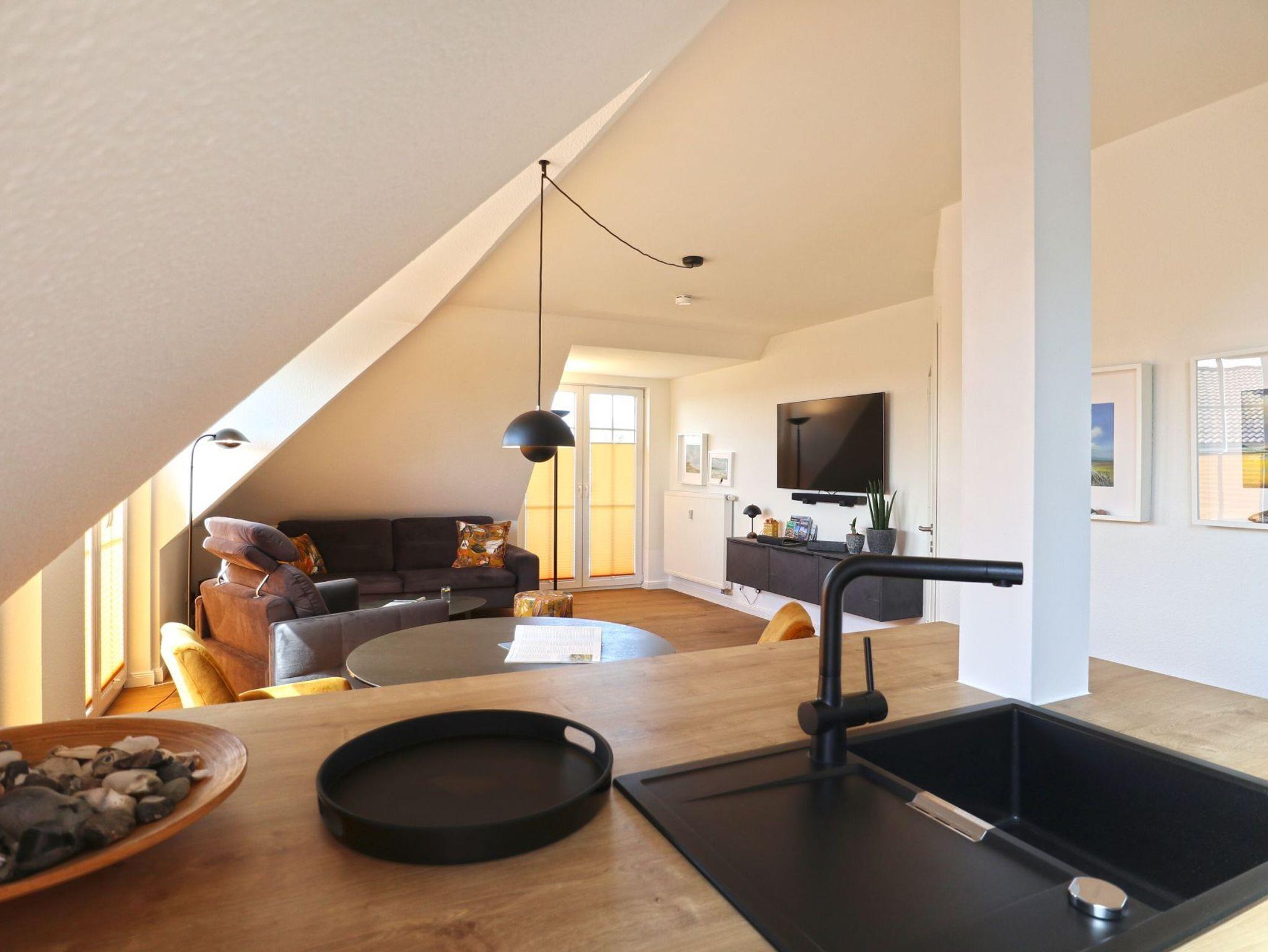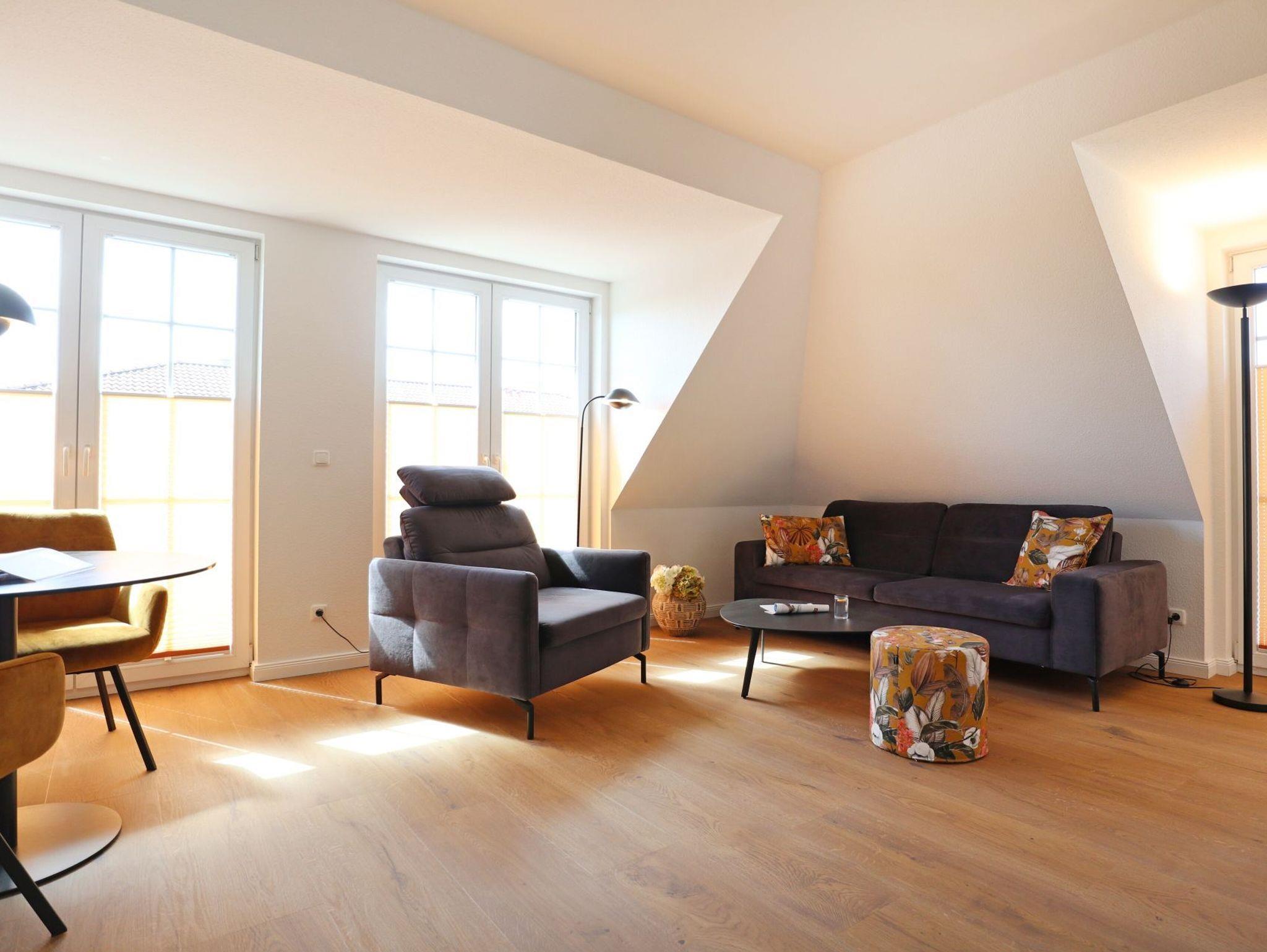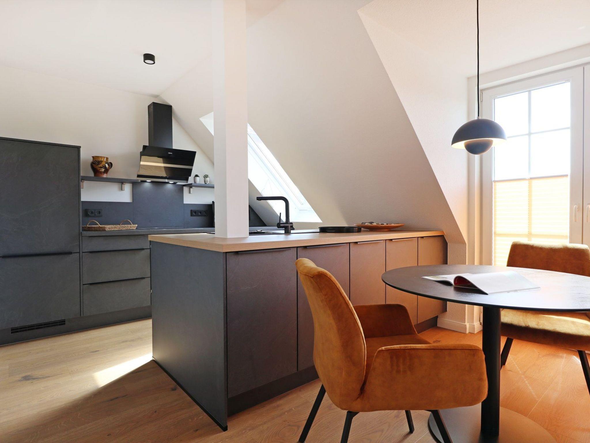 Ankommen und wohlfühlen gilt in dieser in 2023 komplett modernisierten und mit Liebe zum Detail eingerichteten Ferienwohnung. Im hellen und großzügigen Wohnzimmer mit offener, hochwertig ausgestattete Küche, bequemen Sitzmöbeln, Smart-TV und Soundbar werden Sie sich schnell heimisch fühlen. Komfortable Betten sorgen für erholsamen Schlaf. Zwei Balkone nach Osten und Süden und der nahe Ostseestrand laden zum Erholen sein.