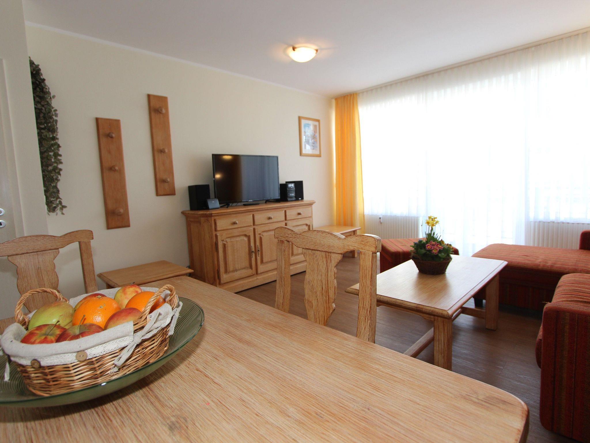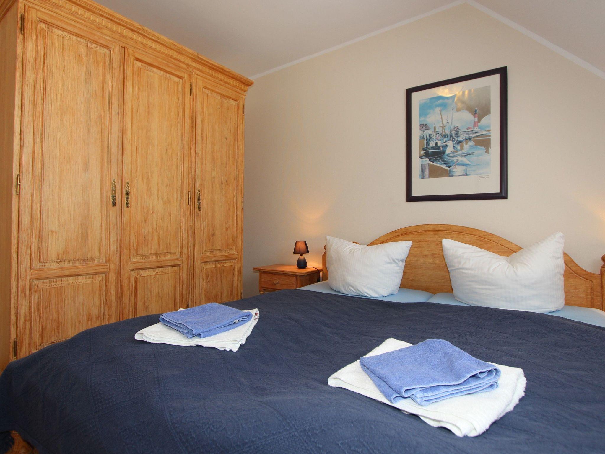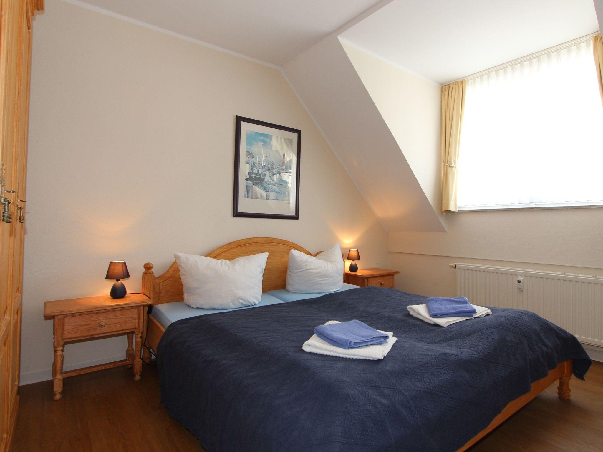 Sie wohnen in einem 2-Zimmer-Appartement für bis zu 4 Personen auf 46 m² im Dachgeschoss. Ein Schlafzimmer mit Doppelbett, Wohn-/Schlafraum mit bequemer Doppelbettcouch, separater Essplatz, voll ausgestatteter Küchenbereich (mit Spülmaschine), Dusche/WC, Balkon, SAT-TV, Telefon. Tiefgaragenstellplatz für PKW; WLAN