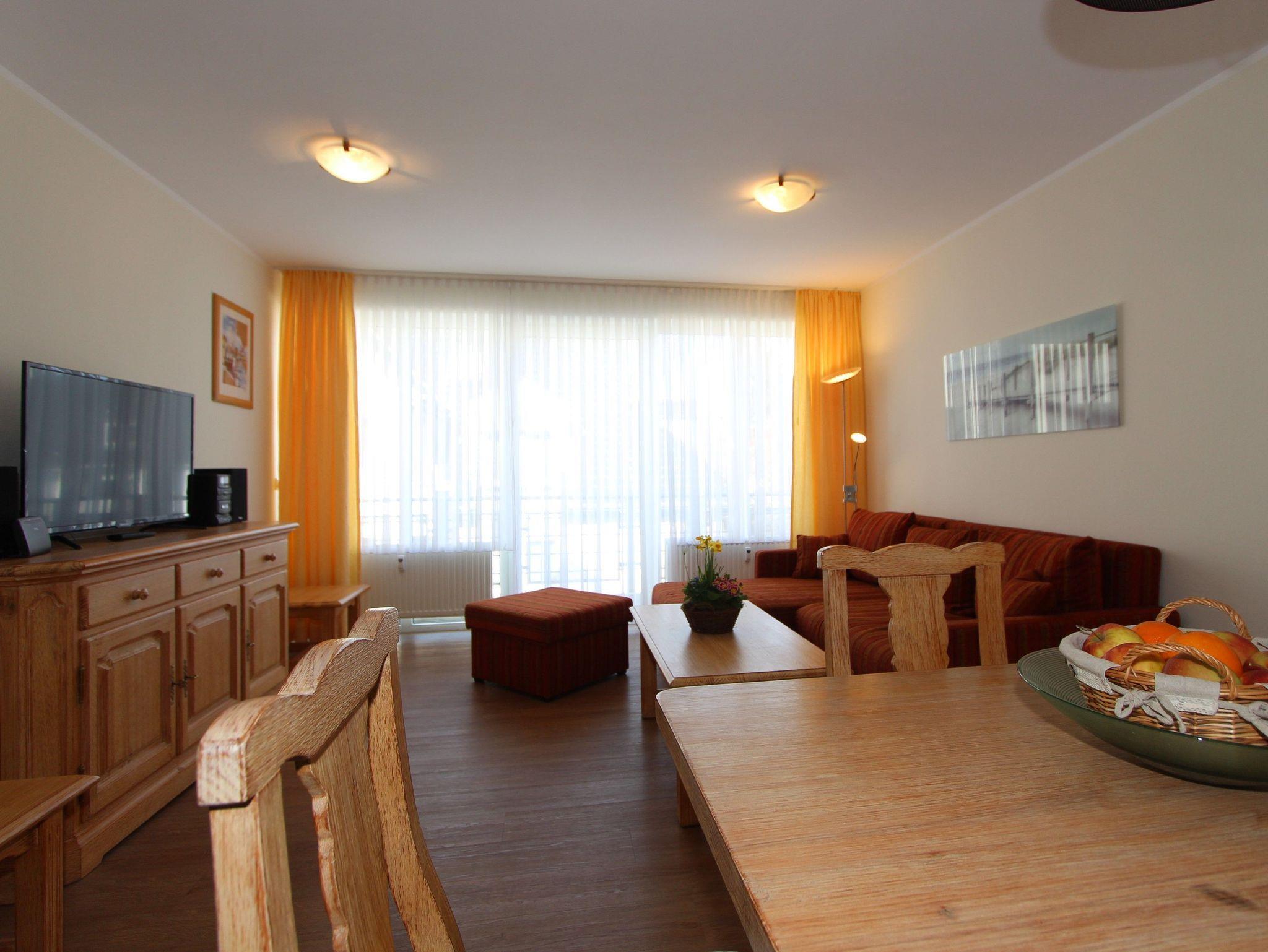 Ihre gut ausgestattete Zwei-Zimmer-Ferienwohnung für bis zu vier Personen verfügt über einen Balkon oder Terrasse, kostenfreies WLAN und sky-Empfang. Sie erreichen die Wohnung bequem mit dem Aufzug, für Ihren PKW steht ein Platz in der Tiefgarage zur Verfügung. Dort befindet sich zudem ein Waschraum mit Münzwaschmaschinen und Münzwäschetrockner und ein Platz für Ihre Fahrräder.