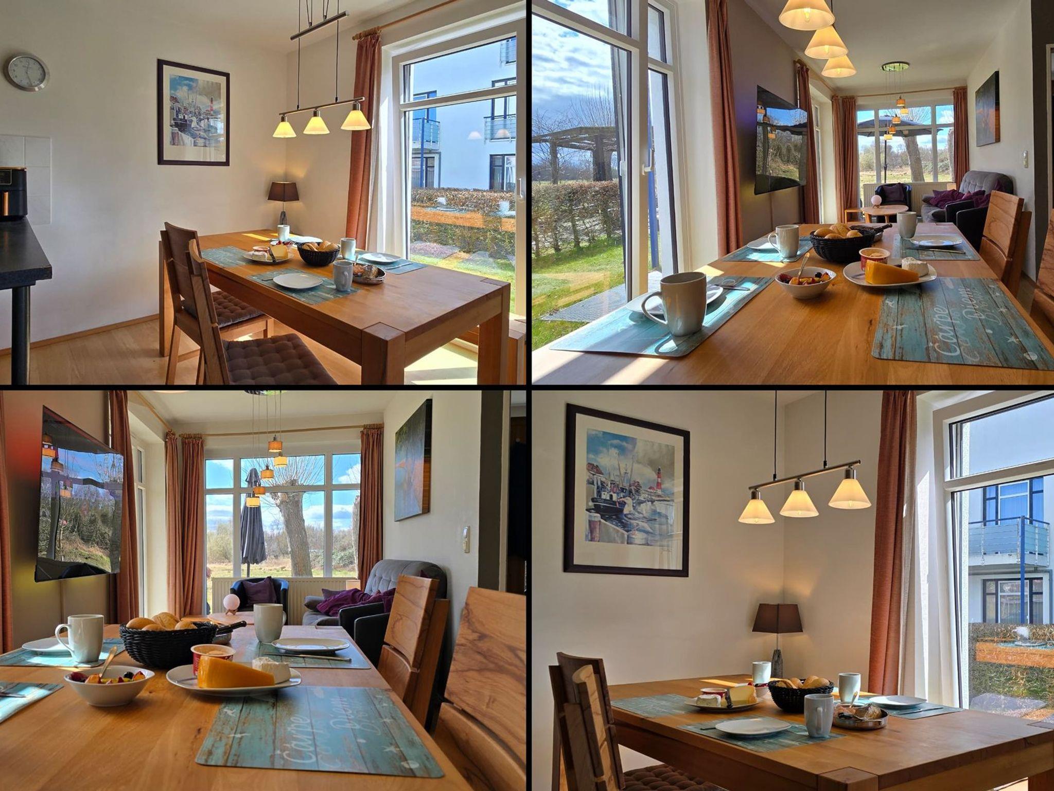 Das 2- Zimmer Ferienappartement Haffblick 19 mit sonniger Terrasse besitzt eine Wohnfläche von 62qm und ist mit maximal 6 Personen belegbar. Wir empfehlen eine Belegung mit bis zu 4 Personen. Es empfängt Sie ein behaglicher Wohn-Essbereich mit einem ausziehbaren Schlafsofa, welches zwei zusätzliche Schlafmöglichkeiten bietet. Zudem befinden sich weitere Sitzmöbel sowie ein großer Esstisch im Wohnbereich. Ein Fernseher mit Sky Empfang und eine Musikanlage sind ebenfalls vorhanden. WLAN ist kostenfrei. Die zugehörige Terrasse ist saisonal möbliert und verwöhnt mit einem schönen Blick über die Salzwiesen. Ihre Mahlzeiten können Sie bequem in der integrierten und voll ausgestatteten Küchenzeile zubereiten. Hier sind vorhanden ein Herd mit Backofen, Mikrowelle, Kühlschrank, Geschirrspüler, Kaffeemaschine, Wasserkocher und Toaster. Das geräumige Schlafzimmer ist mit einem Doppelbett und einem Etagenbett eingerichtet, so dass hier bis zu 4 Personen nächtigen können. Auch ein großer Kleiderschrank für Ihre Garderobe ist vorhanden. Zur Wohnung gehört ein Duschbad mit Waschtisch und WC. Es handelt sich um eine Nichtraucherwohnung, in der Haustiere gegen Gebühr gestattet sind. Für ihren PKW ist ein gebührenfreier Außenstellplatz reserviert. Sie verbringen Ihren Urlaub nah zum Zentrum des Ostseebades und erreichen in nur 200 Meter das Meer mit einem feinsandigen Badestrand. Auf Wunsch sind gegen Gebühr Wäschepakete mit Handtüchern und Bettwäschen zu buchbar.