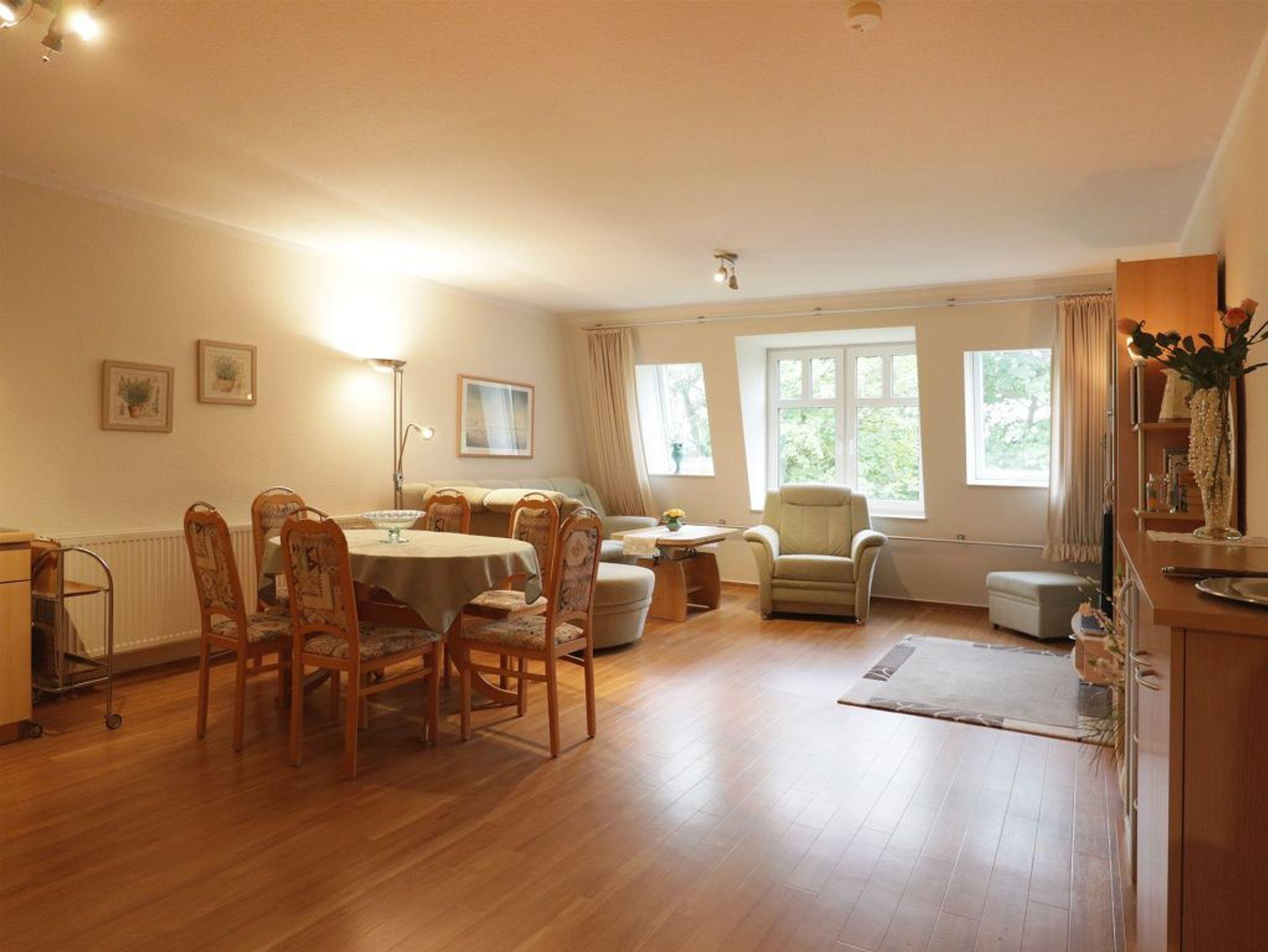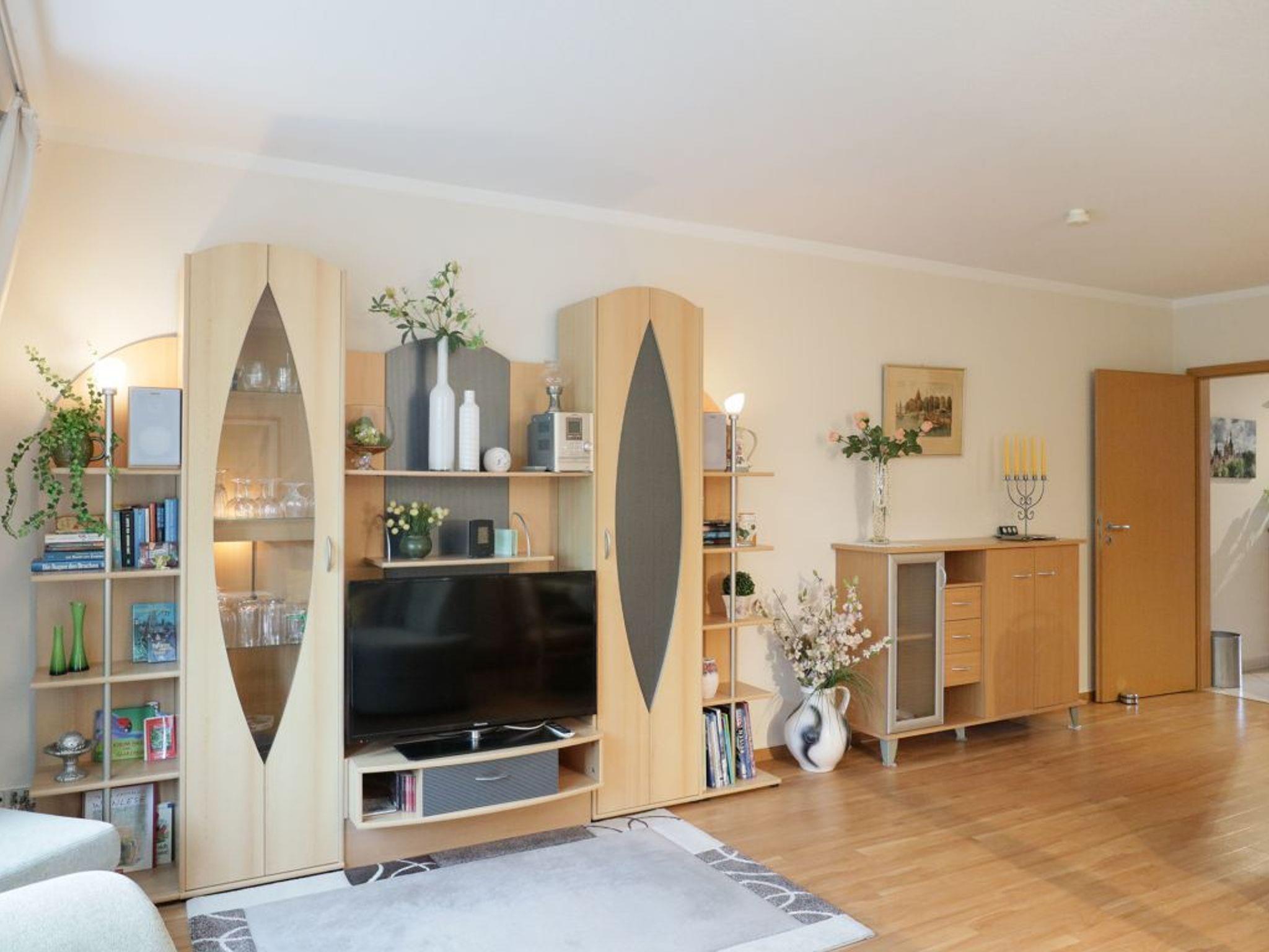 Das 2-Zimmer Ferienappartement ?Minervapark 28? befindet sich im 2. Obergeschoss. Mit einer Wohnfläche von 58qm bietet die gemütliche Wohnung viel Raum für 2 Personen. Im Wohn/-Essbereich empfängt Sie eine bequeme Sofagarnitur mit Sessel sowie Sideboard mit Regalen. Für gemeinsame Mahlzeiten ist ein Esstisch im Wohnbereich vorhanden und technische Unterhaltung bieten Fernseher, DVD-Player, Musikanlage sowie gebührenfreies WALN. Für die Eigenversorgung finden Sie in der offenen, integrierten Wohnküche alles, was für die Zubereitung von Urlaubsmahlzeiten benötigt wird: Ceranherd, Backofen, Mikrowelle, Dunstabzug, Kühlschrank mit integr. Gefrierfach, Geschirrspüler, Kaffeemaschine, Wasserkocher, Toaster usw. Im Schlafzimmer mit Doppelbett und Kleiderschrank mit viel Stauraum für die Urlaubsgarderobe, verbringen Sie angenehme Nächte. Zugehörig ist ein Duschbad mit Waschtisch, Föhn, WC. Ebenso sind Bügelbrett und Bügeleisen vorhanden. Ihren PKW parken Sie in der hauseigenen Tiefgarage und gelangen von dort bequem mit dem Fahrstuhl zu den Wohnungsetagen. Nichtraucher. Keine Haustiere. Kein Balkon oder Terrasse.