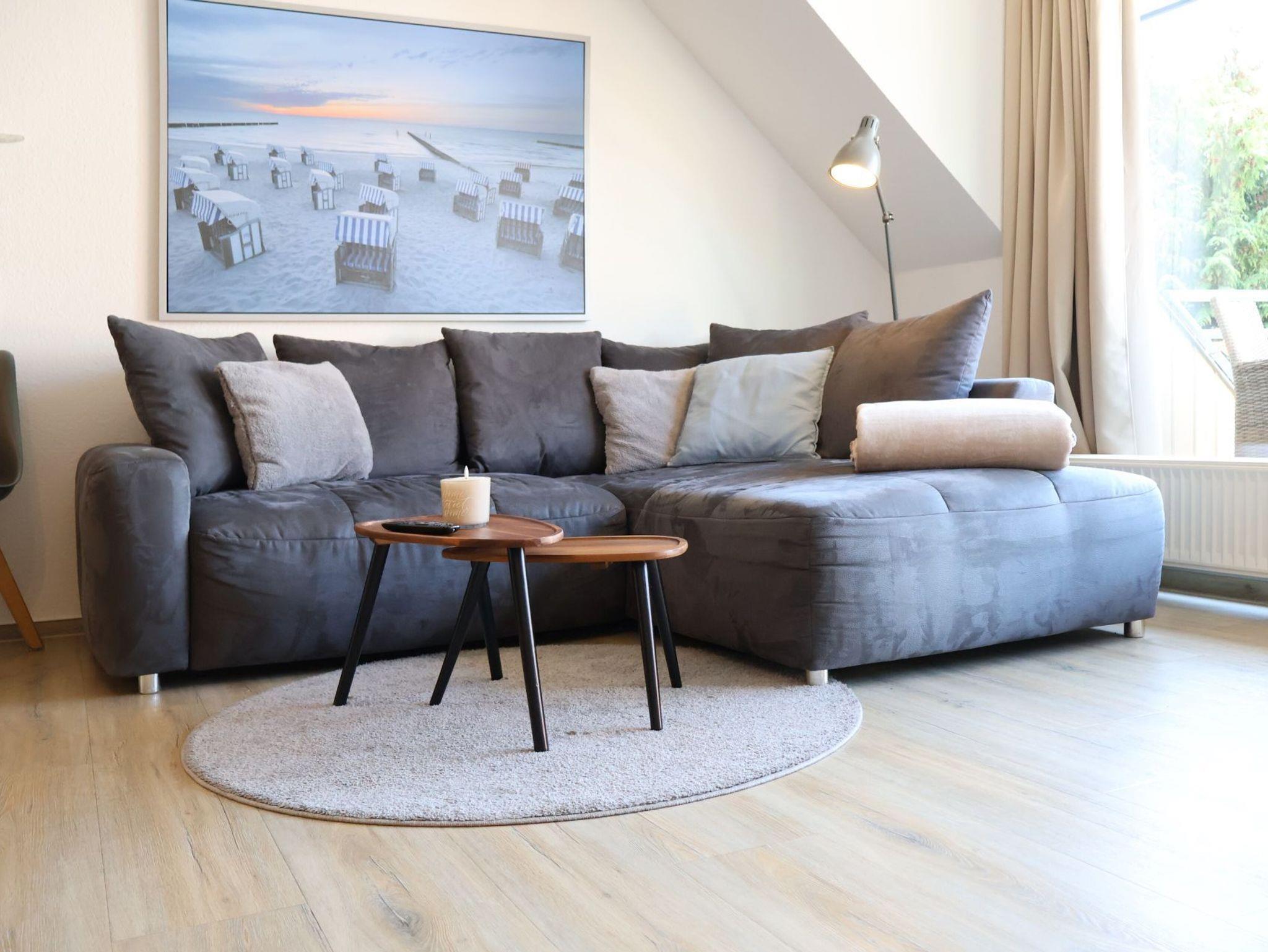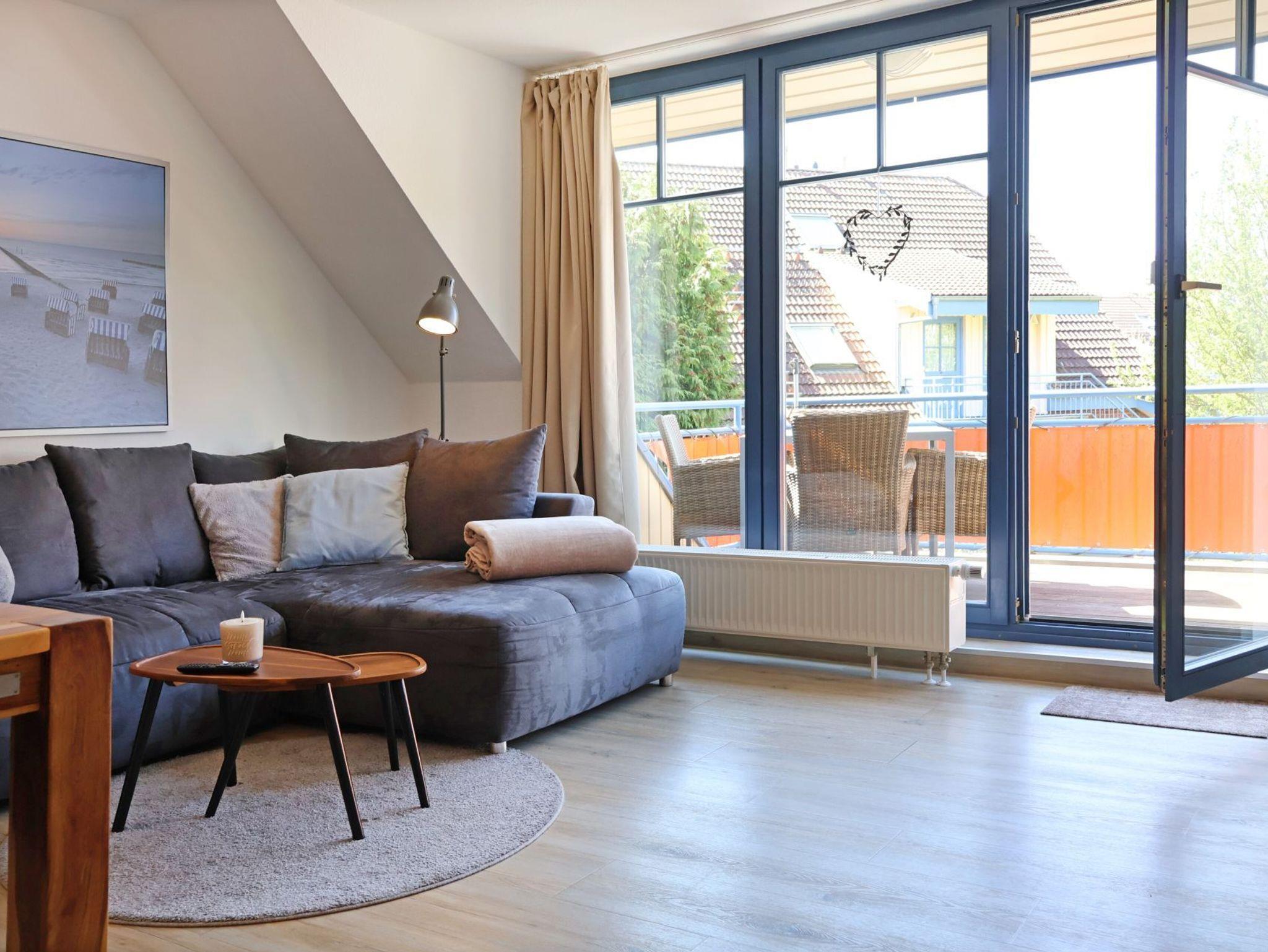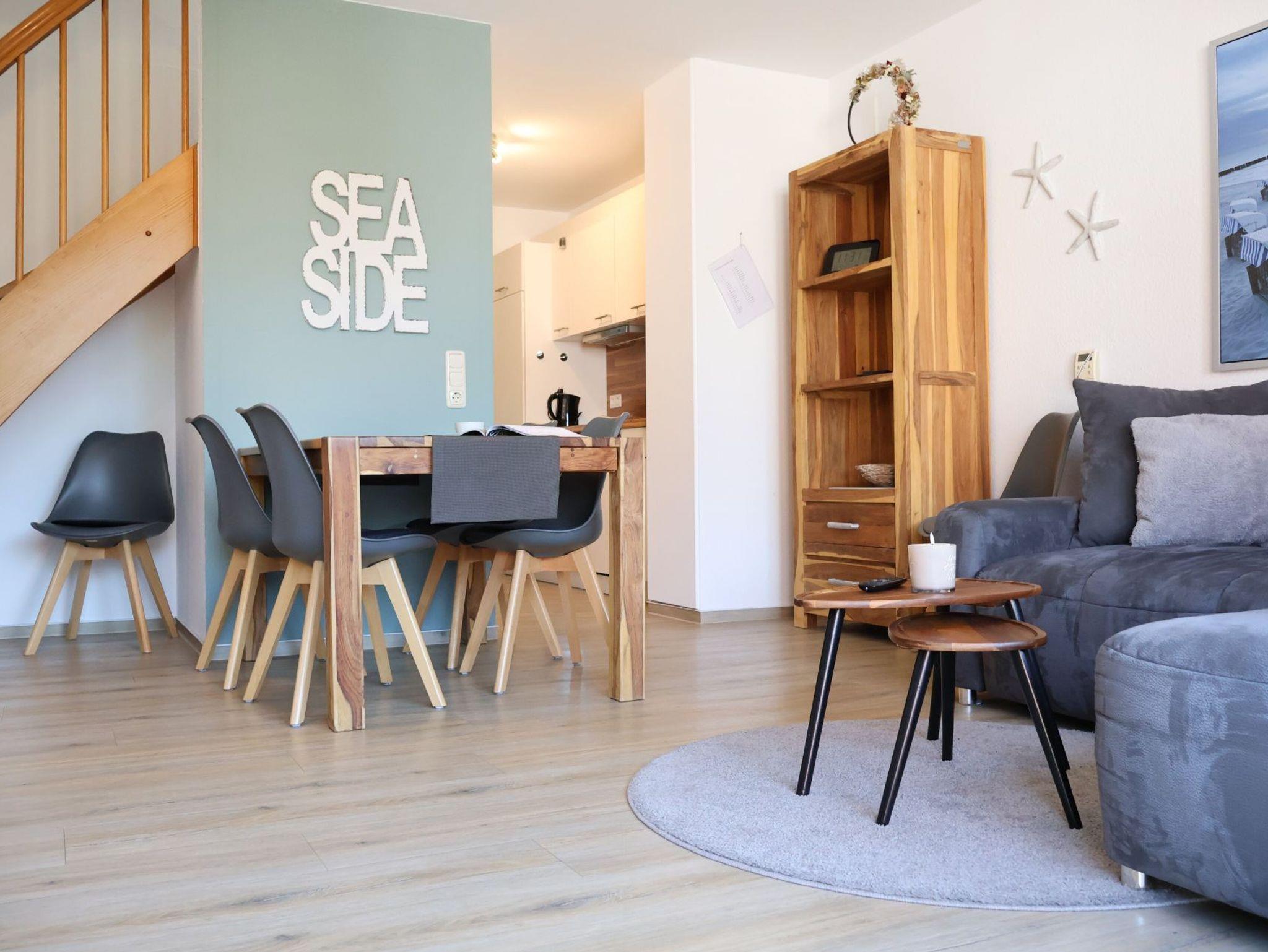 Am Rande eines kleinen Waldgebietes befindet sich die familienfreundliche Ferienanlage Papillon. In nur 250 Meter gelangen sie an den feinsandigen Strand von Boltenhagen. Für bis zu 4 Personen ist die sich über zwei Ebenen erstreckende Nichtraucher Ferienwohnung- Papillon 6-6- mit Balkon bestens geeignet. Die Wohnfläche beträgt 55qm. Es begrüßt Sie in der unteren Ebene ein geräumiger Wohn-/Essbereich mit Esstisch, bequemer Sofalandschaft, einem große Flachbild Fernseher, Musikanlage, WLAN kostenfrei. In den Wohnbereich wurde geschickt eine offene Küchenzeile integriert, die über Ceranfeldherd, Backofen, Dunstabzug, Geschirrspüler sowie Kaffeemaschine, Toaster, Wasserkocher und weiteren Kochutensilien verfügt. Den sonnigen Balkon betreten Sie ebenfalls von dieser Ebene aus. Ein Schlafzimmer mit Doppelbett und Kleiderschrank, wie auch ein großzügiges Duschbad ist im unteren Bereich der Ferienwohnung vorhanden. Über eine Treppe gelangen Sie in die obere Ebene, wo sich ein weiteres Schlafzimmer mit jeweils zwei Einzelbetten befindet. Kostenfrei parken Sie Ihren PKW am Haus. Für mitgebrachte Fahrräder befindet sich im Kellergeschoss ein Abstellraum.