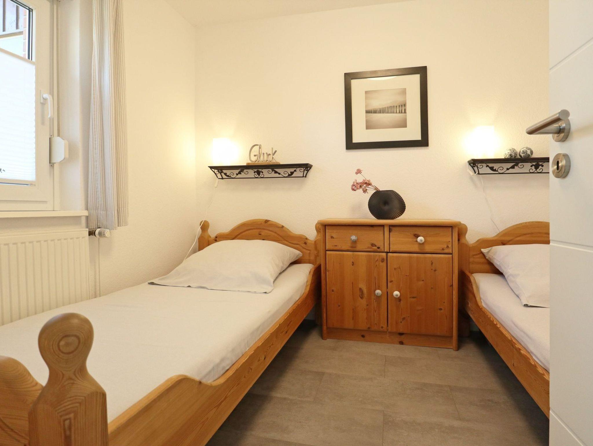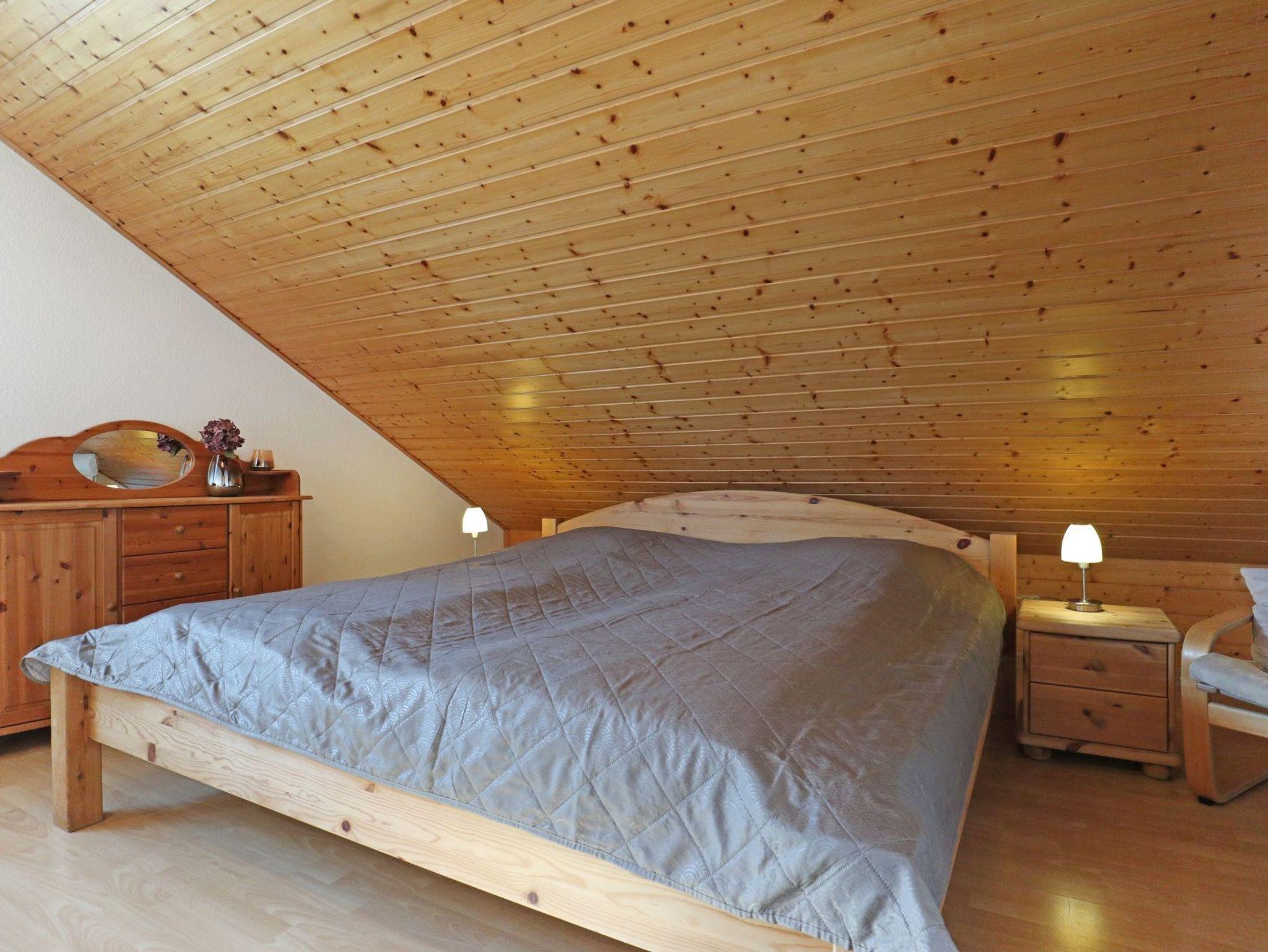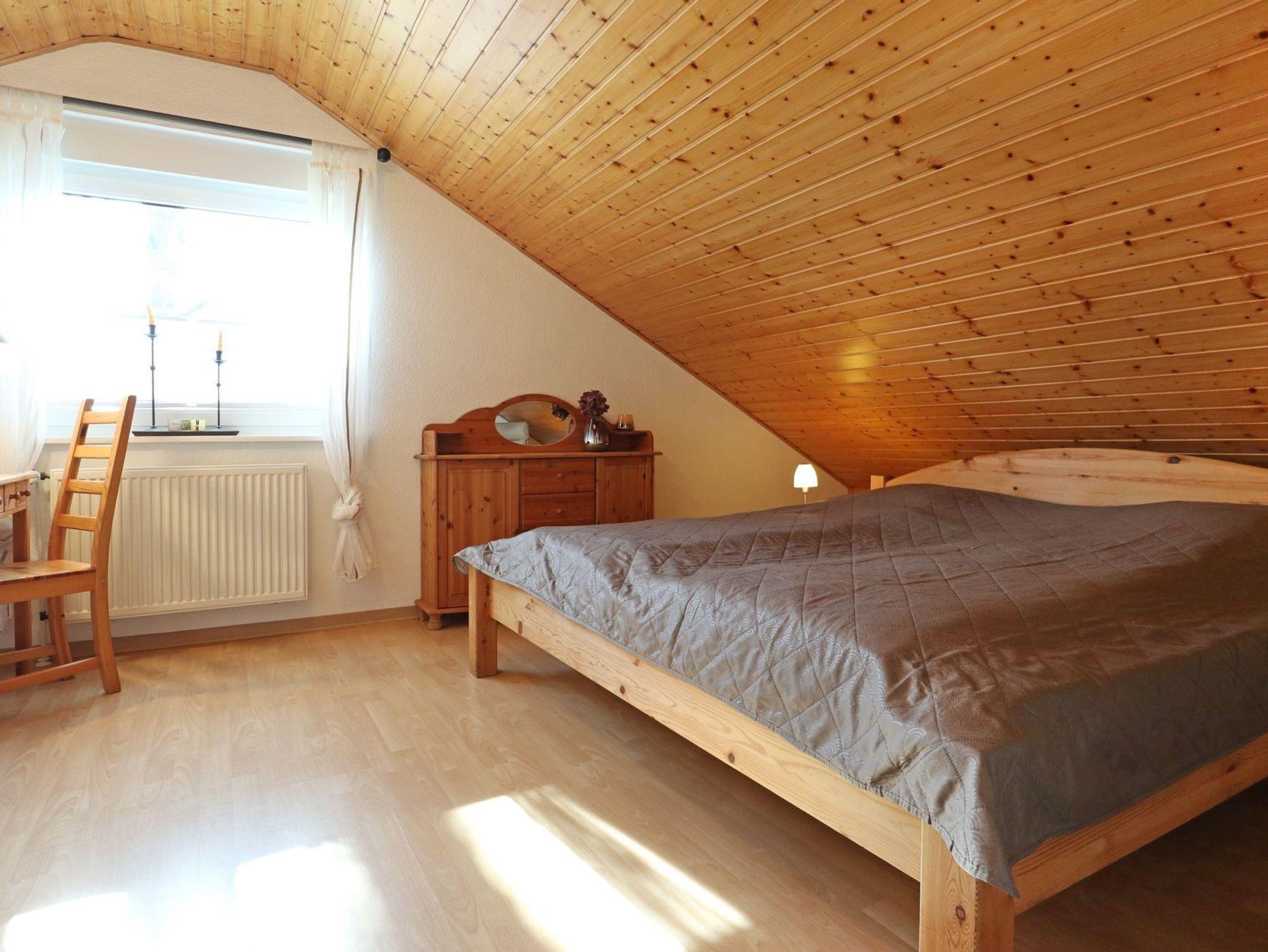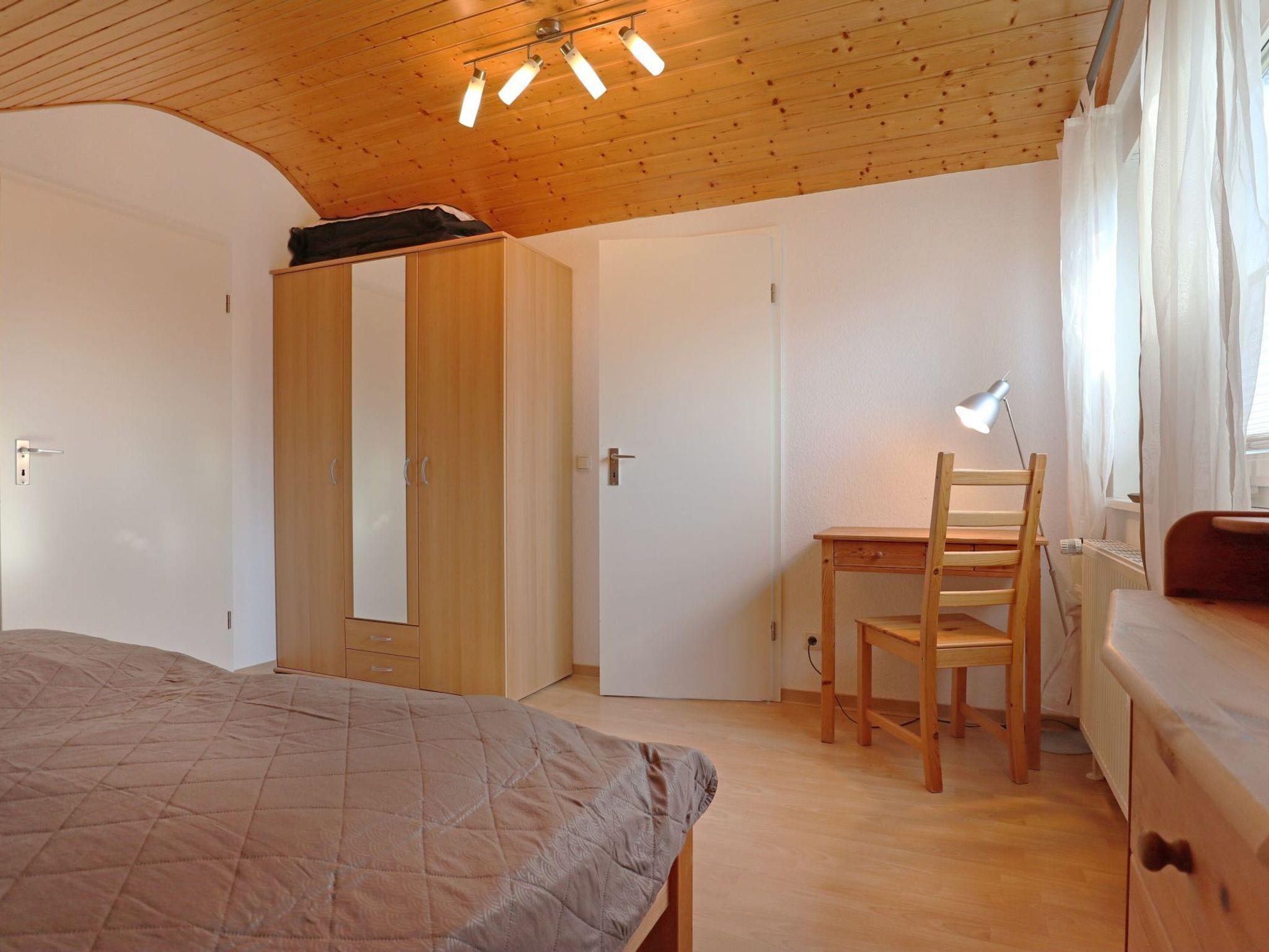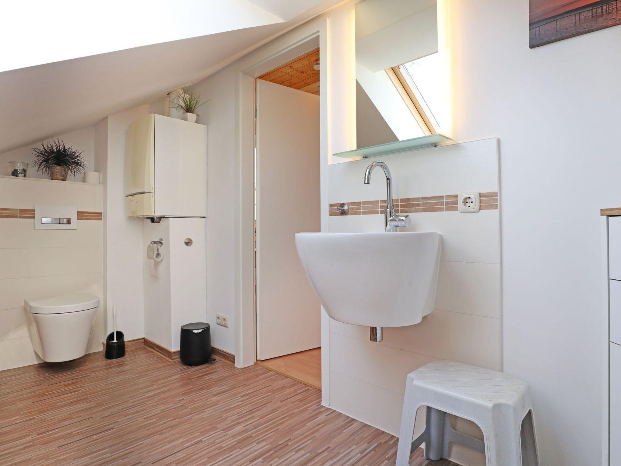 Im Erdgeschoss befinden sich ein Schlafzimmer mit zwei Einzelbetten und Kleiderschrank sowie ein Tageslicht Duschbad, Waschtisch, Fön, WC und Waschmaschinen Nutzung. Über eine Treppe gelangen Sie ins Obergeschoss mit einem weiteren Schlafzimmer mit Doppelbett, Kleiderschrank, 2. Fernseher, Sitzgelegenheit. Ein Gäste-WC ist ebenso vorhanden. Familienfreundlich mit Kinderhochstuhl, Kinderbett, Spielzeug, Bollerwagen.