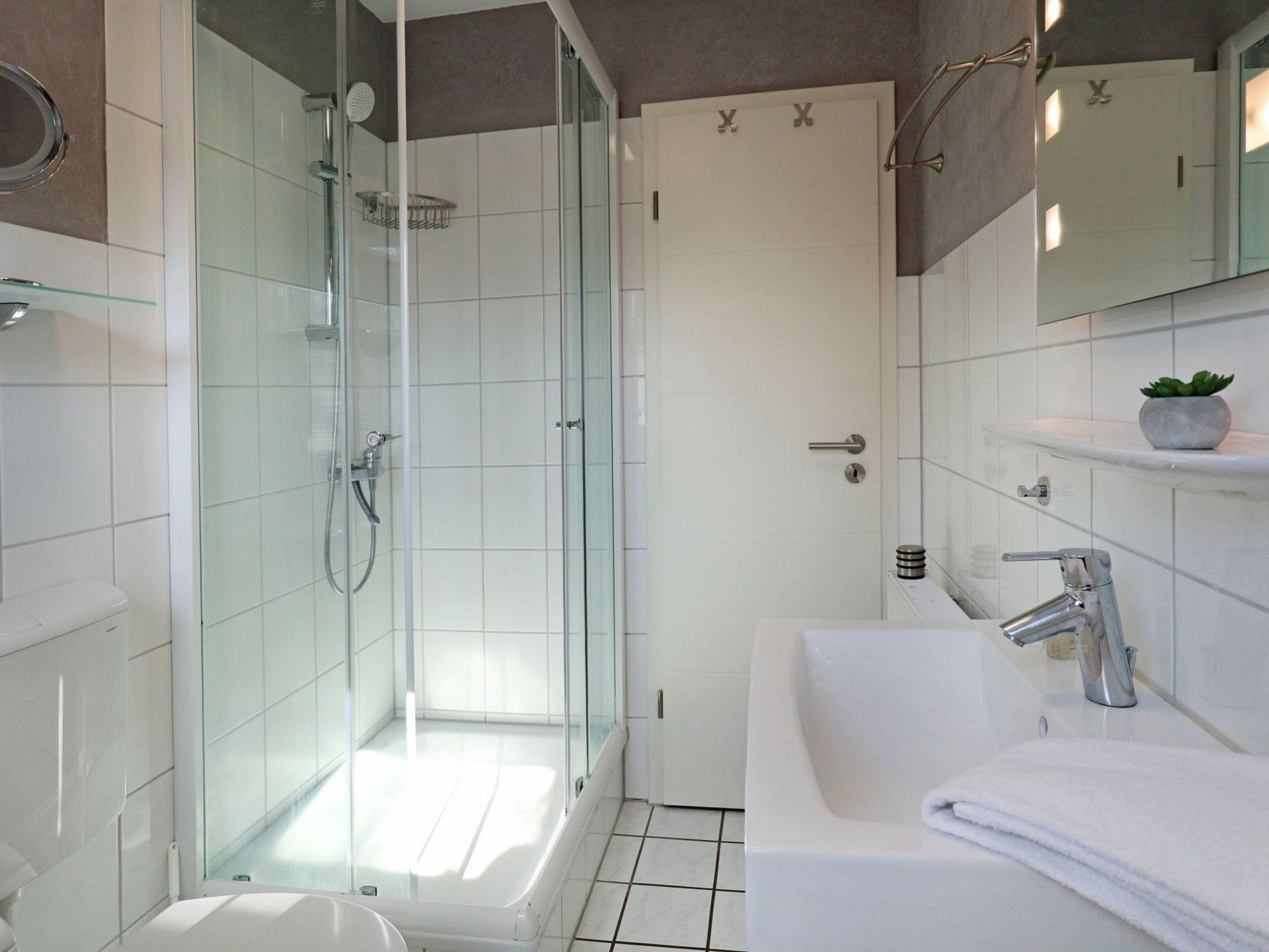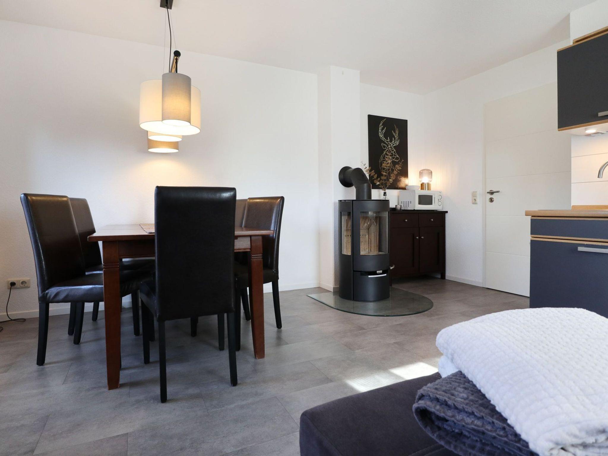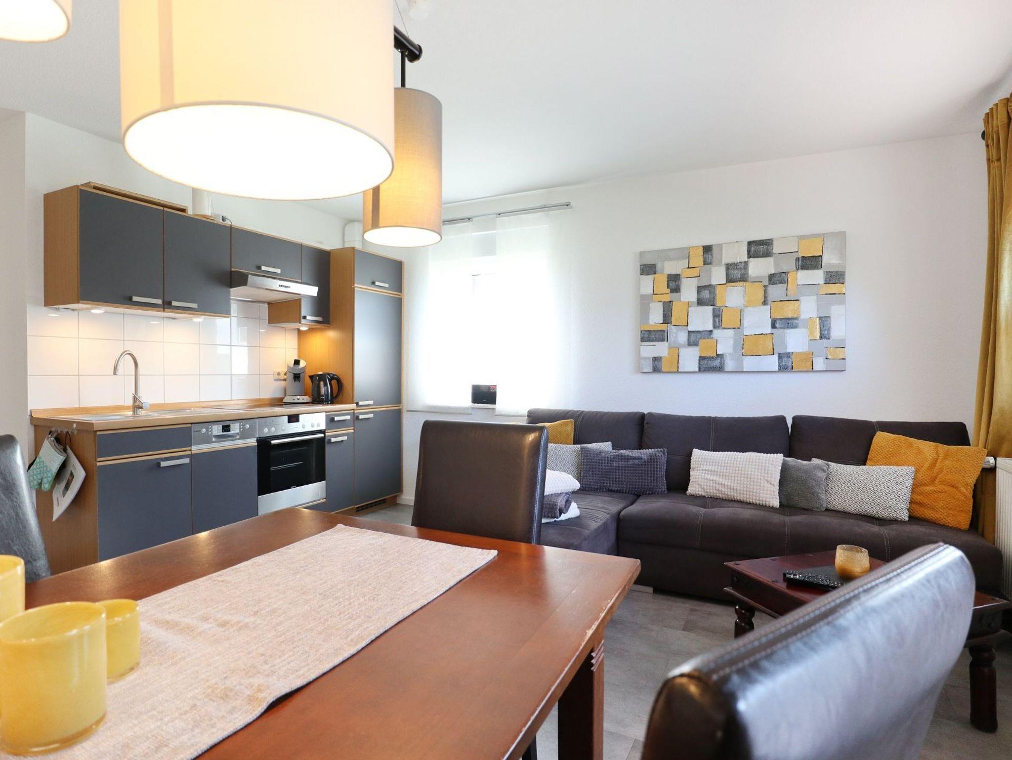 Die integrierte Küchenzeile ist voll ausgestattet mit Herd, Backofen, Mikrowelle, Geschirrspüler, Kaffeemaschine, Wasserkocher, Toaster u.v.m. Erholung finden Sie auf der saisonal möblierten West-Terrasse mit Grillmöglichkeit.