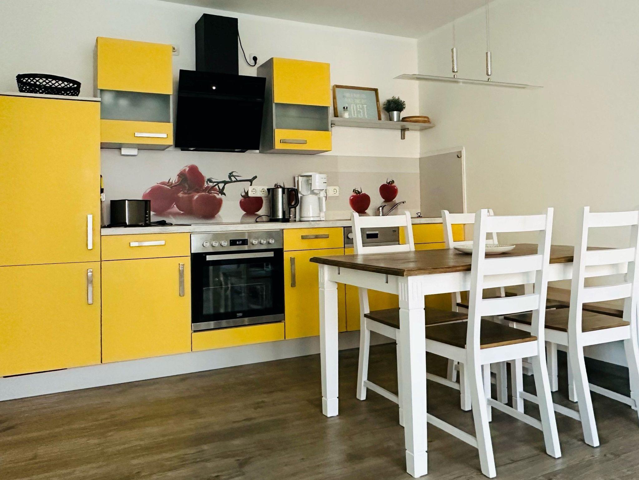 - voll ausgestattete Küche mit kombiniertem Backofen inkl. Mikrowelle und Spülmaschine