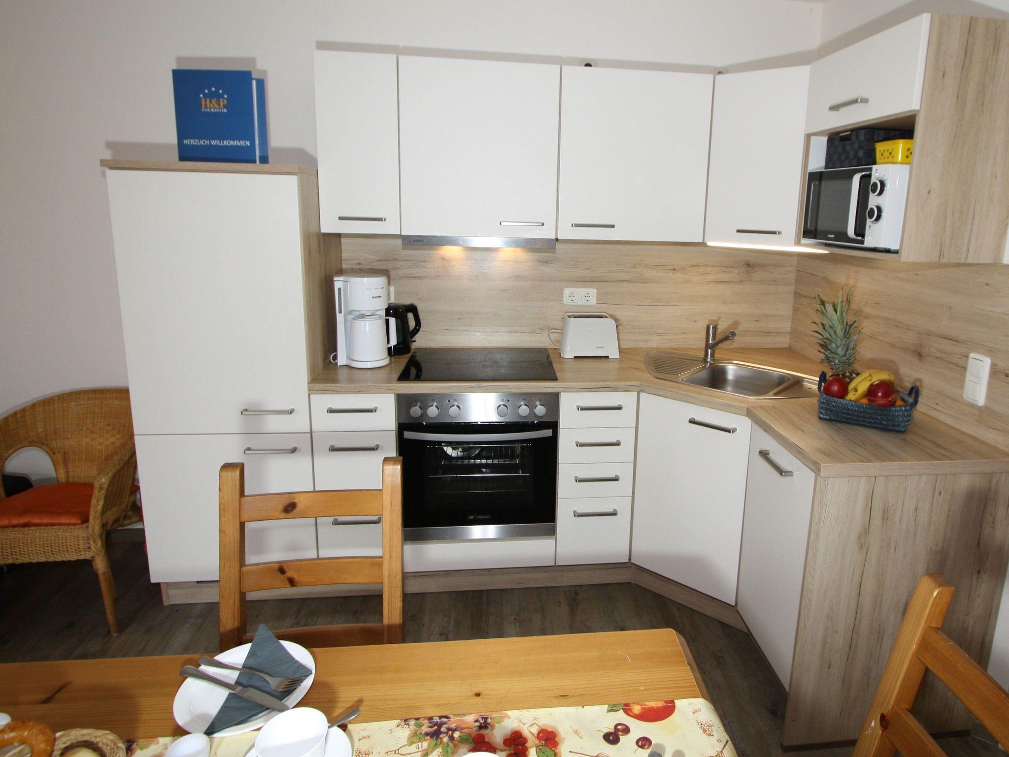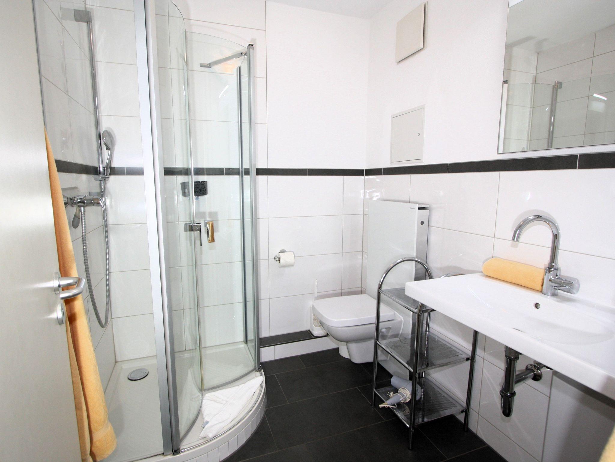 Ihre gut ausgestattete Zwei-Zimmer-Ferienwohnung für bis zu vier Personen verfügt über einen Balkon oder Terrasse, kostenfreies WLAN und sky-Empfang. Sie erreichen die Wohnung bequem mit dem Aufzug, für Ihren PKW steht ein Platz in der Tiefgarage zur Verfügung. Dort befindet sich zudem ein Waschraum mit Münzwaschmaschinen und Münzwäschetrockner und ein Platz für Ihre Fahrräder.