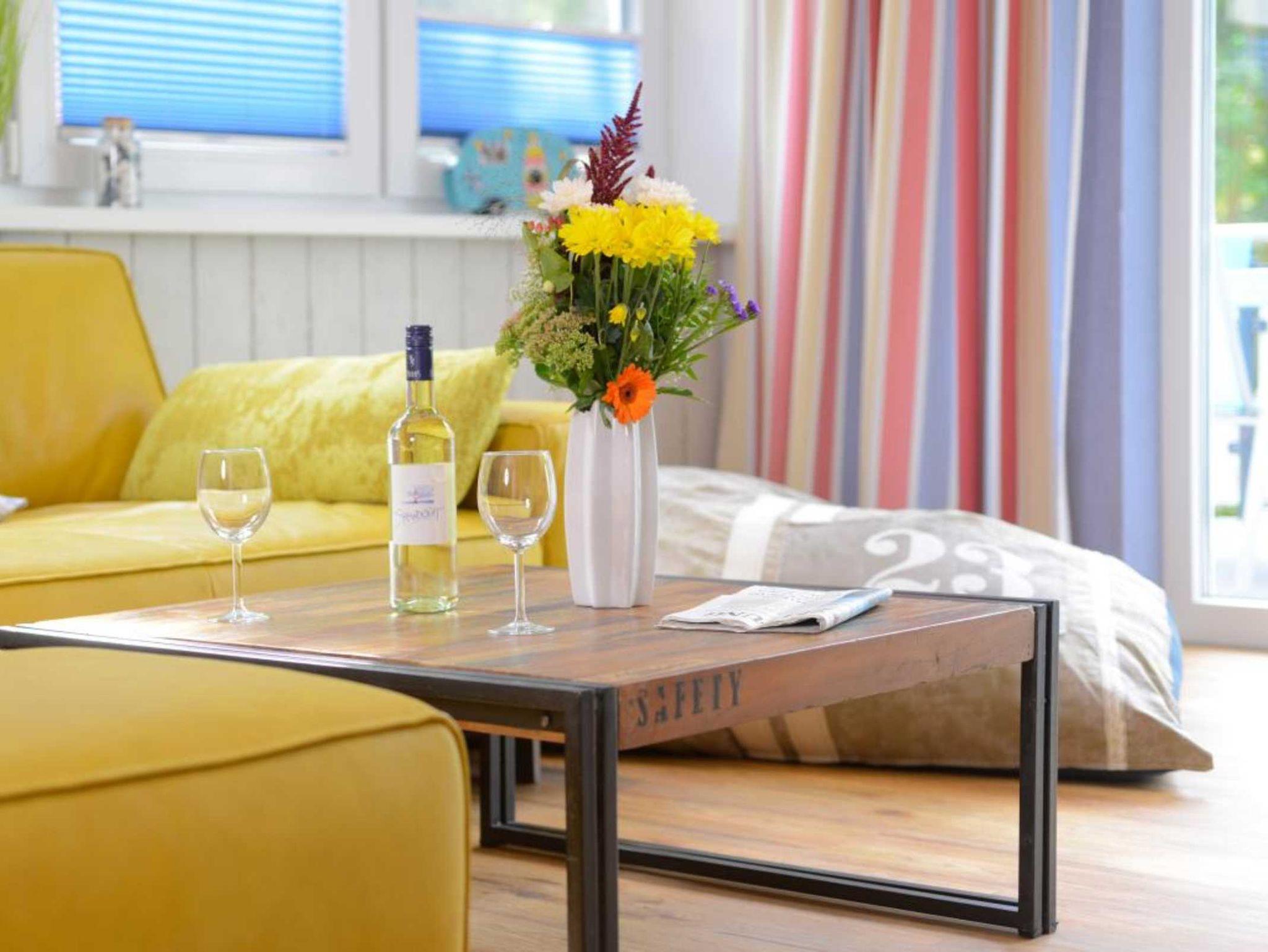 Das 3- Zimmer Traumdomizil ? Florida 5 Freitag - mit zwei Dachterrassen, bietet eine Wohnfläche von 75qm. Eine Belegung ist mit max.4 Personen möglich. Im höchsten Wohnkomfort eingerichtet, erwartet Sie hier warme Wohnatmosphäre mit Holzoptikbodenbelag. Der Wohn-/Essbereich lädt mit einer Sofalandschaft und einem gemütlichen Essbereich zum Träumen ein. Technische Unterhaltung bieten Fernseher, Blu-Ray-Player, DVD, und Musikanlage. WLAN nutzen Sie gebührenfrei. Vom Wohnraum aus gelangen Sie auf eine der Dachterrassen. Ebenso hochwertig ist die Ausstattung der Wohnraumküchenzeile, die Ihnen die Eigenversorgung ermöglicht mit: Herd, Backofen, Dunstabzug, Mikrowelle, Kühlschrank mit integr. Gefrierfach, Geschirrspüler, Kaffeemaschine, Wasserkocher, usw.
