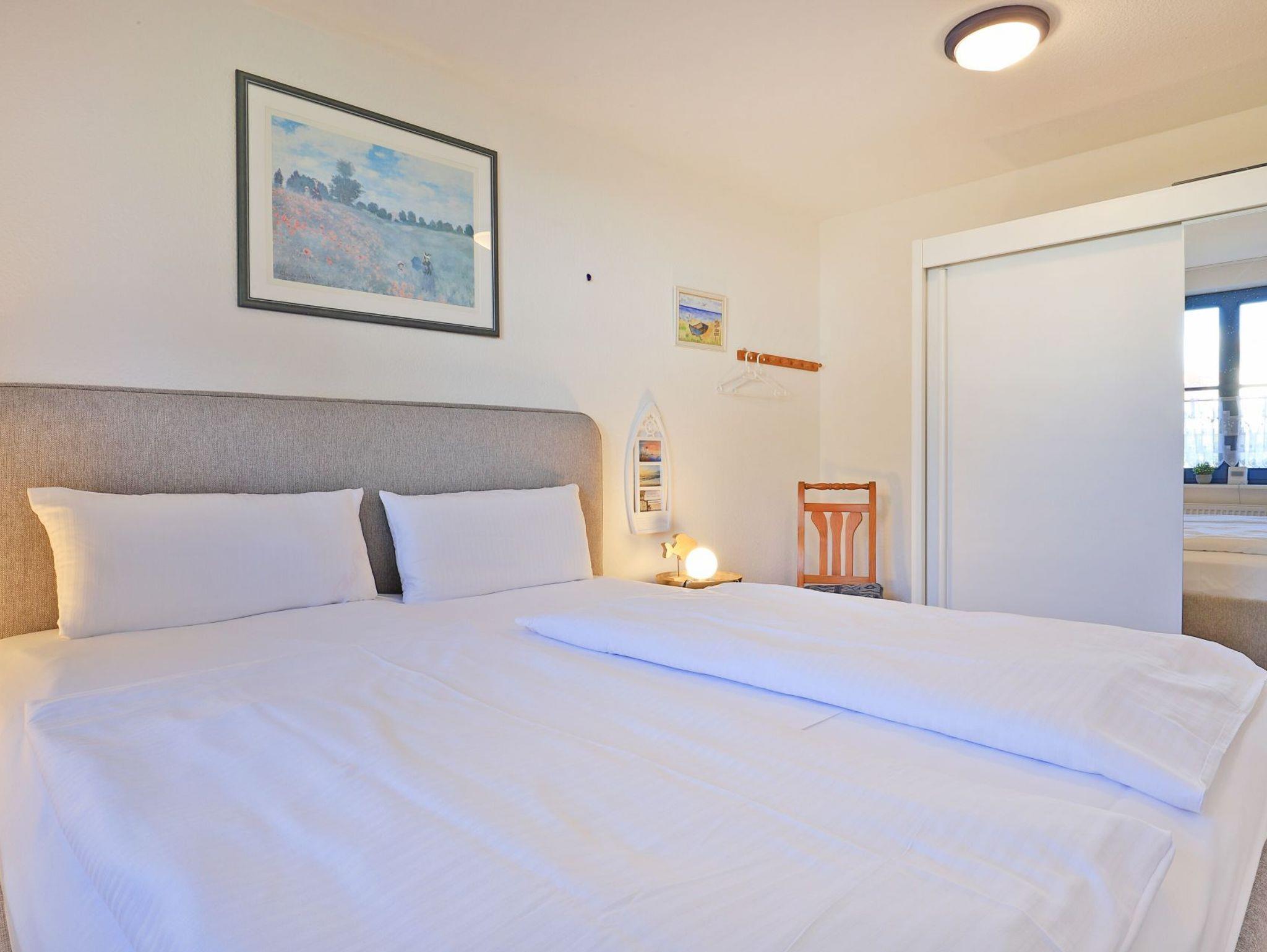 Das innenliegende Duschbad ist geräumig und mit einer niedrigen Duschtasse modernisiert. Für mitgebrachte Fahrräder befindet sich im Kellerbereich ein Abstellraum. Ebenso können dort Waschmaschine und Wäschetrockner gegen Gebühr benutzt werden. Ihr Fahrzeug parken Sie kostenfrei nah des Hauses. In der Nichtraucher Wohnung sind Haustiere herzlich willkommen.