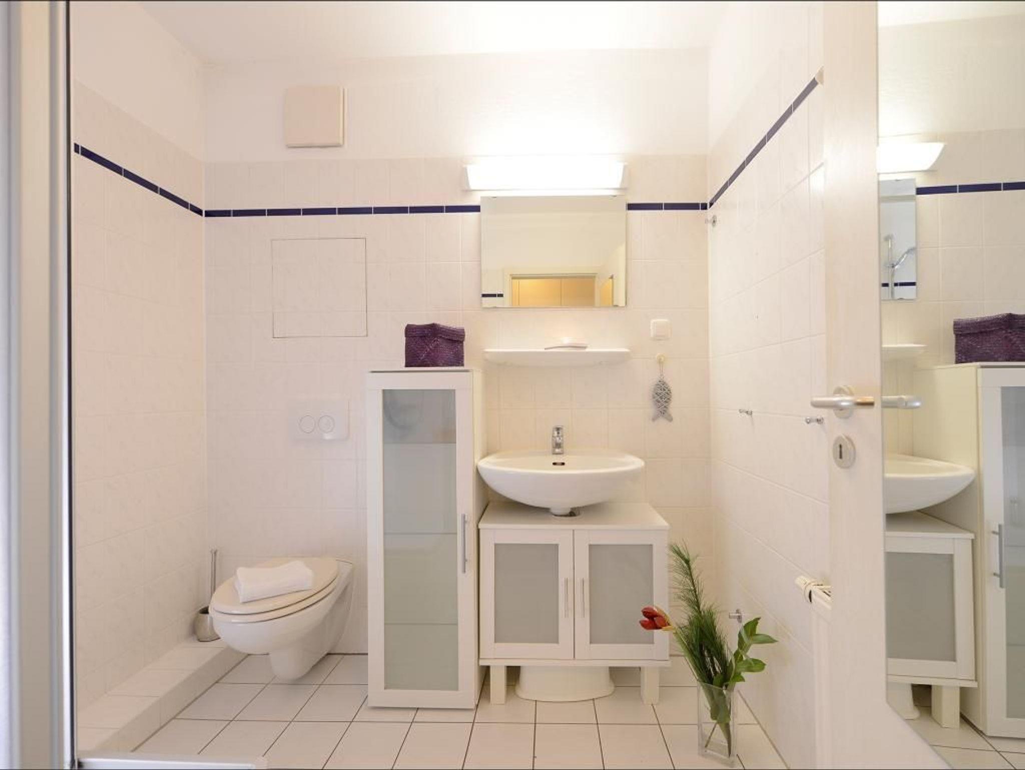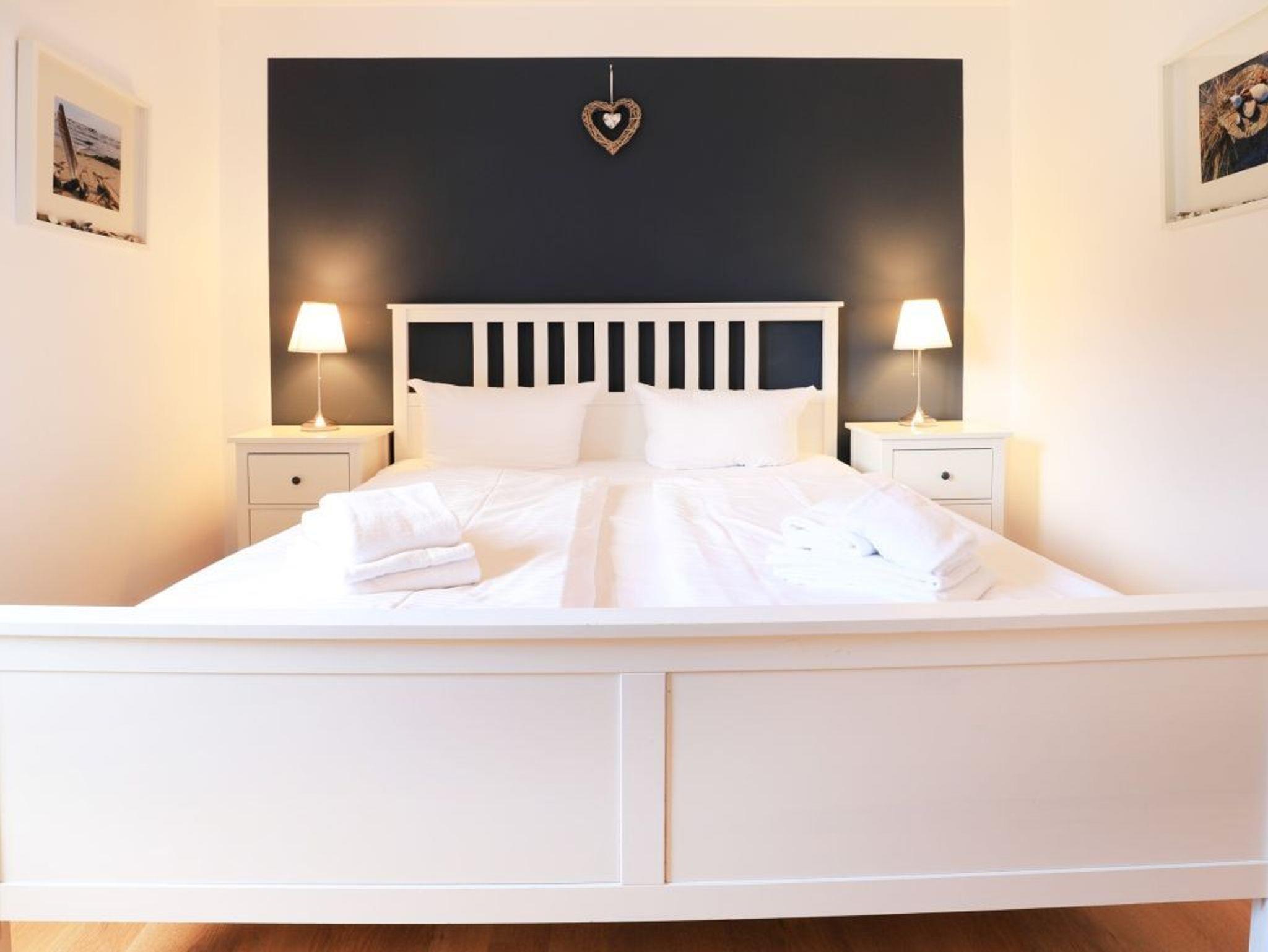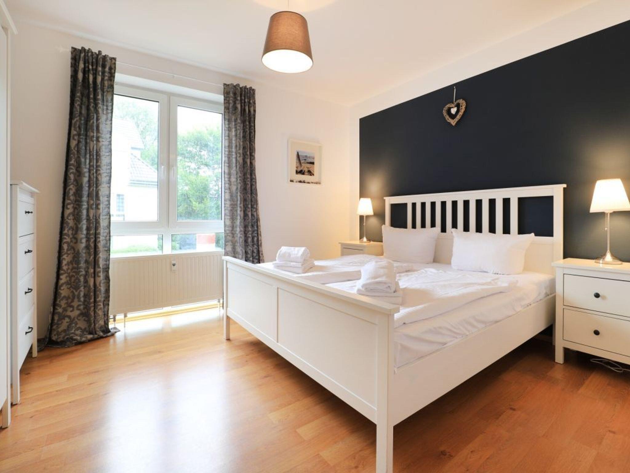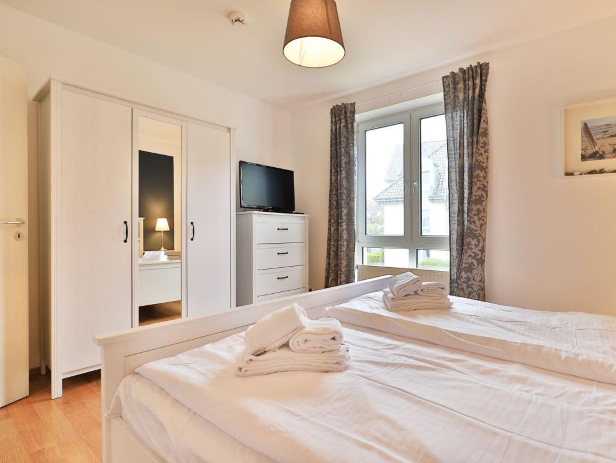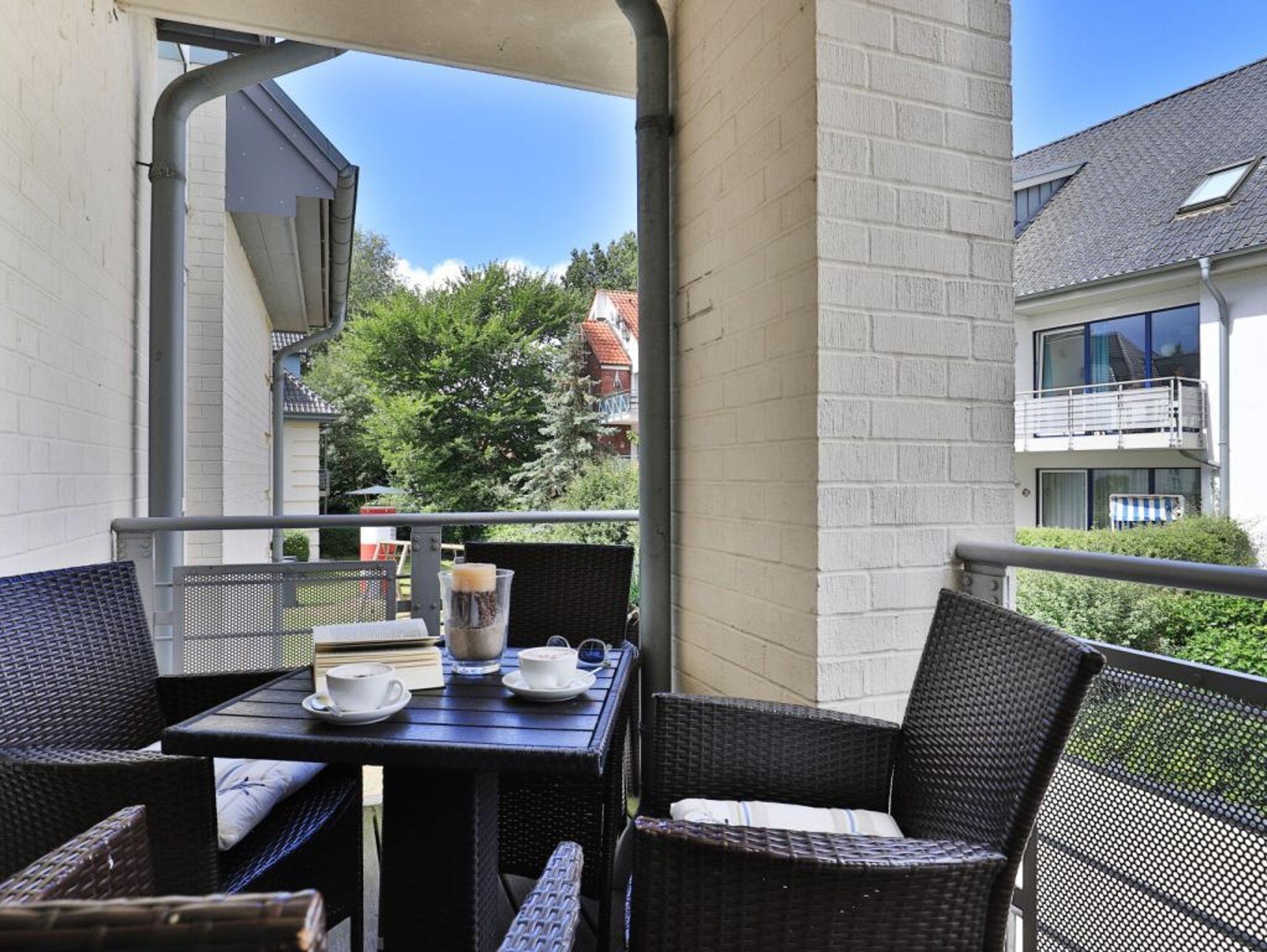 Das familienfreundliche 2-Zimmer-Appartement ist sehr komfortabel ausgestattet. Es liegt im 1. Obergeschoss und bietet auf 50 m² Wohnfläche Platz für bis zu 4 Personen. Auf dem saisonal möblierten Balkon können sie entspannen. Eine voll ausgestattete Wohnküche, ein separates Schlafzimmer und ein geräumiges Duschbad mit WC, Fön ist vorhanden. Der gemütliche Wohnbereich ist mit einem Sofa ausgestattet, das sich einfach in eine Schlafcouch verwandeln lässt und somit eine Liegefläche von 1,60m mal 2,00m bietet. Zur technischen Ausstattung gehört ein Fernseher mit SKY (Cinema, Sport), ein DVD-Player, eine Musikanlage und kostenfreies WLAN. Die Küchenzeile ist ideal für Selbstversorger und bietet einen Ceranfeldherd mit Backofen, Mikrowelle, Kühlschrank mit Gefrierfach, Geschirrspüler und weitere Geräte. Ihre Mahlzeiten können Sie am Esstisch oder auf dem saisonal möblierten Balkon zu sich nehmen. Das geräumige Schlafzimmer ist mit einem Doppelbett, einem großen Kleiderschrank, Wäschekommode und einem 2. Fernseher eingerichtet. Ein Einbauschrank im Eingangsflur bietet zusätzlichen Stauraum, und ein Kinderhochstuhl steht ebenfalls bereit. Der Fußboden ist gefliest. Ihr Fahrzeug parken Sie kostenfrei auf dem eigenen Tiefgaragenstellplatz. Eine Waschmaschine und ein Wäschetrockner sind im Haus gegen Gebühr verfügbar. Hunde sind gegen Gebühr herzlich willkommen.