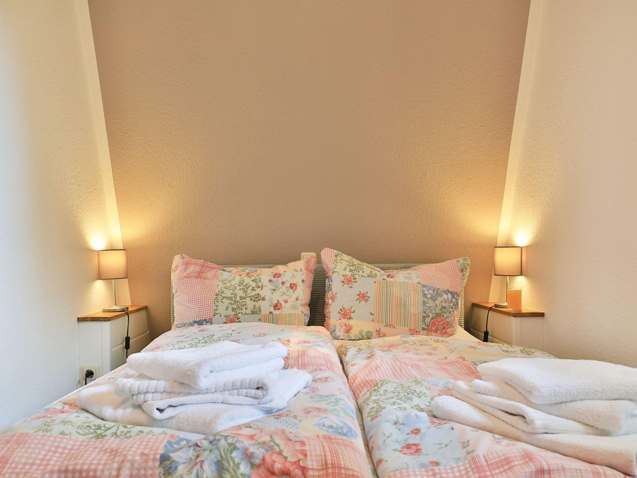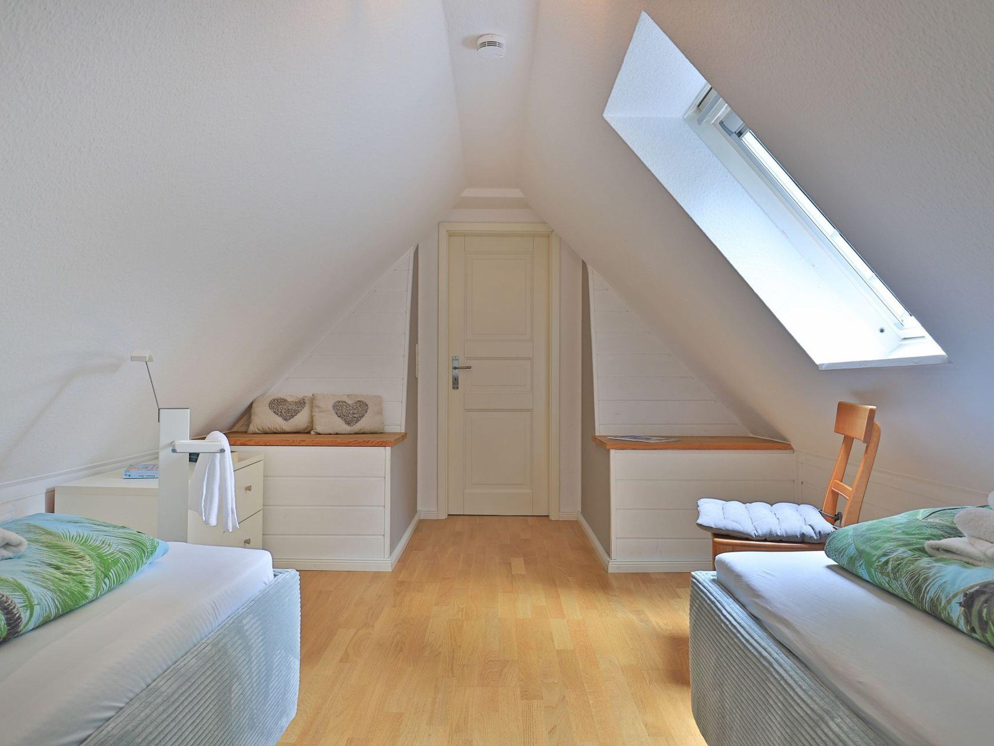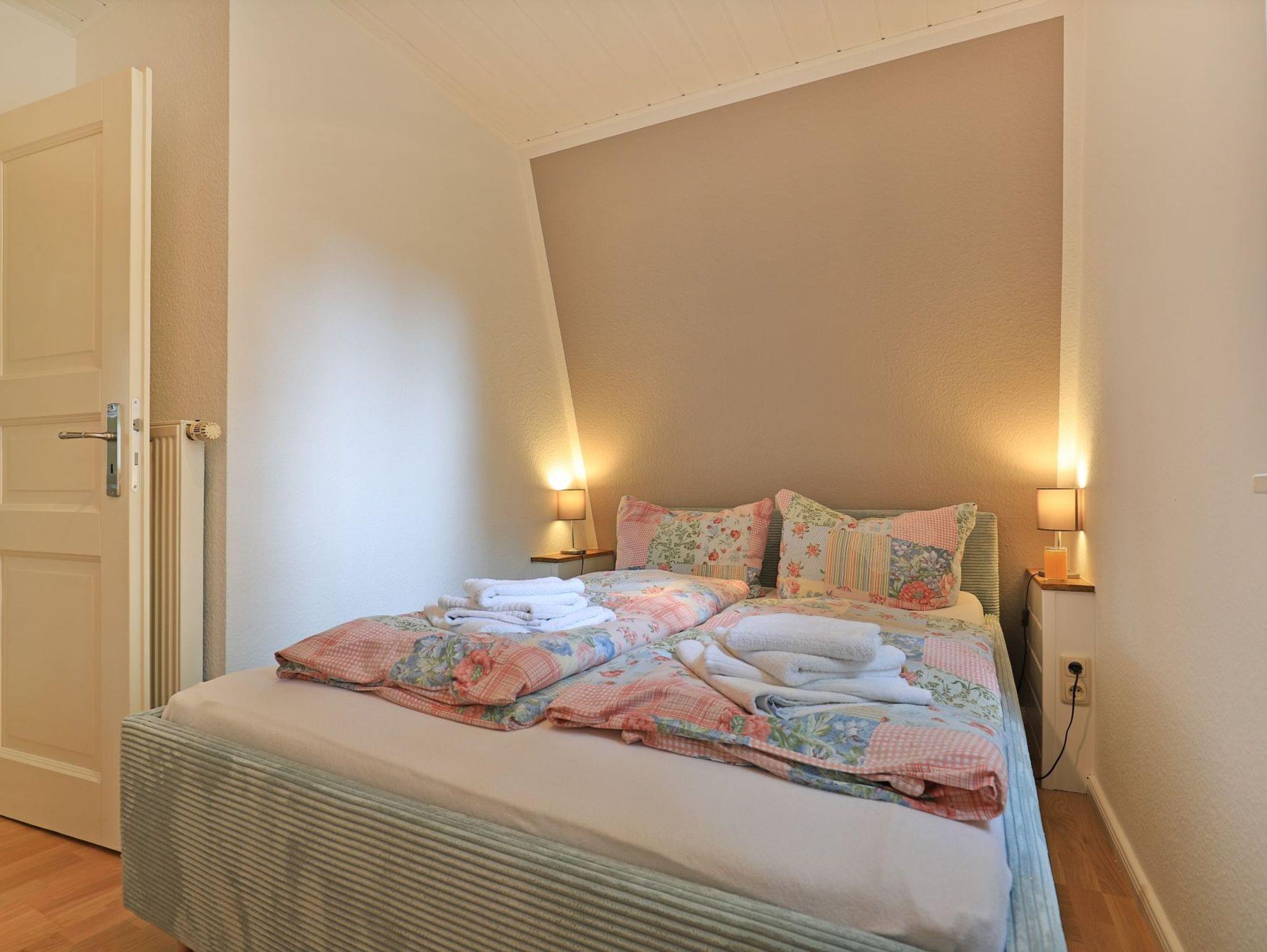 Die 3- Zimmer Meerblick Suite Seeschwalbe, mit zwei Balkonen, ist eine Traumferienwohnung mit einer Wohnfläche von 60qm. Eine Belegung ist mit max. 4 Personen möglich. Sehr komfortabel empfängt Sie der geschmackvoll möblierte Wohn-Essbereich mit einem bequemen Sofa, zwei Lehnsesseln, Schrank sowie Esstisch. Ein Fernseher, Musikanlage und gebührenfreies WLAN sorgen für Unterhaltung. Die in den Wohnbereich integrierte, kleine Einbauküche ermöglicht die Selbstversorgung mit: Ceranfeldherd, Backofen, Kühlschrank mit integr. Gefrierfach, Kaffeemaschine, Wasserkocher, Toaster u.v.m. Ihre zubereiteten Mahlzeiten können Sie am Esstisch zu sich nehmen, oder während der wärmeren Monate genießen Sie Ihren Kaffee auf einem der saisonal möblierten Balkone in Nord-Ost bzw. Süd-West Ausrichtung. Erholsame Nächte ermöglichen zwei separate Schlafzimmer. Eines mit Doppelbett 1,40m x 2,00m. Das zweite Schlafzimmer ist mit zwei Einzelbetten ausgestattet. Bei Anreise sind Ihre Betten bereits für Sie bezogen und Handtücher liegen bereit. Die Ferienwohnung besitzt ein Duschbad mit Waschtisch, Föhn und WC. Allen Hausgästen steht der 2000qm große Garten mit schattigen Ruhezonen und Gartenliegen zum Entspannen zur Verfügung.