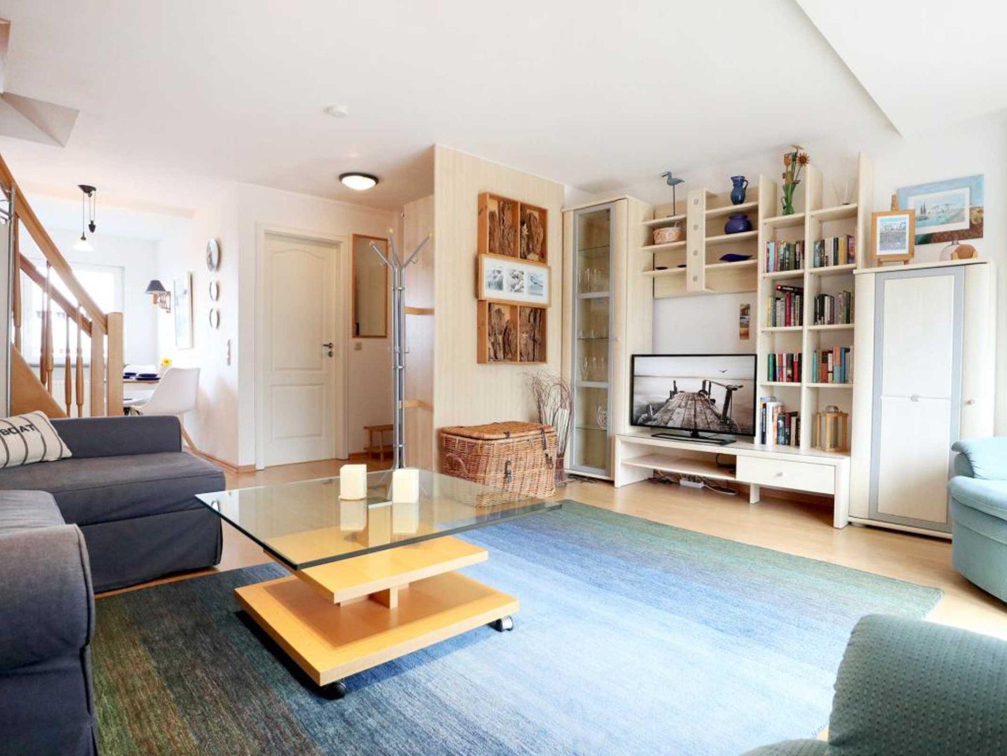 Nur 20m zur Ostsee verwöhnt das hochwertig eingerichtete 2-Zimmer-Maisonetten-Appartement mit einer großzügigen Wohnfläche von 60qm und einem Balkon mit Blickrichtung Küstenschutzwald. Eine Belegung dieser Ferienwohnung ist mit max. 4 Personen möglich. Im hellen Wohn-Essbereich befinden sich ein großes Sofa, wie auch ein ausziehbares Sofa, das zwei zusätzliche Schlafplätze ermöglicht. Ebenso sind Fernseher und Radio vorhanden. Ideal für Selbstversorger bietet die offene Wohnküche, mit Meerblick, sämtliche Vorzüge zur Mahlzeitenzubereitung mit: Ceranherd, Backofen, Kühlschrank mit Frostfach, Spülmaschine, Wasserkocher, Kaffeemaschine, Toaster u.v.m. Für gemeinsame Mahlzeiten ist ein kleiner Esstisch für 2 Personen vorhanden.