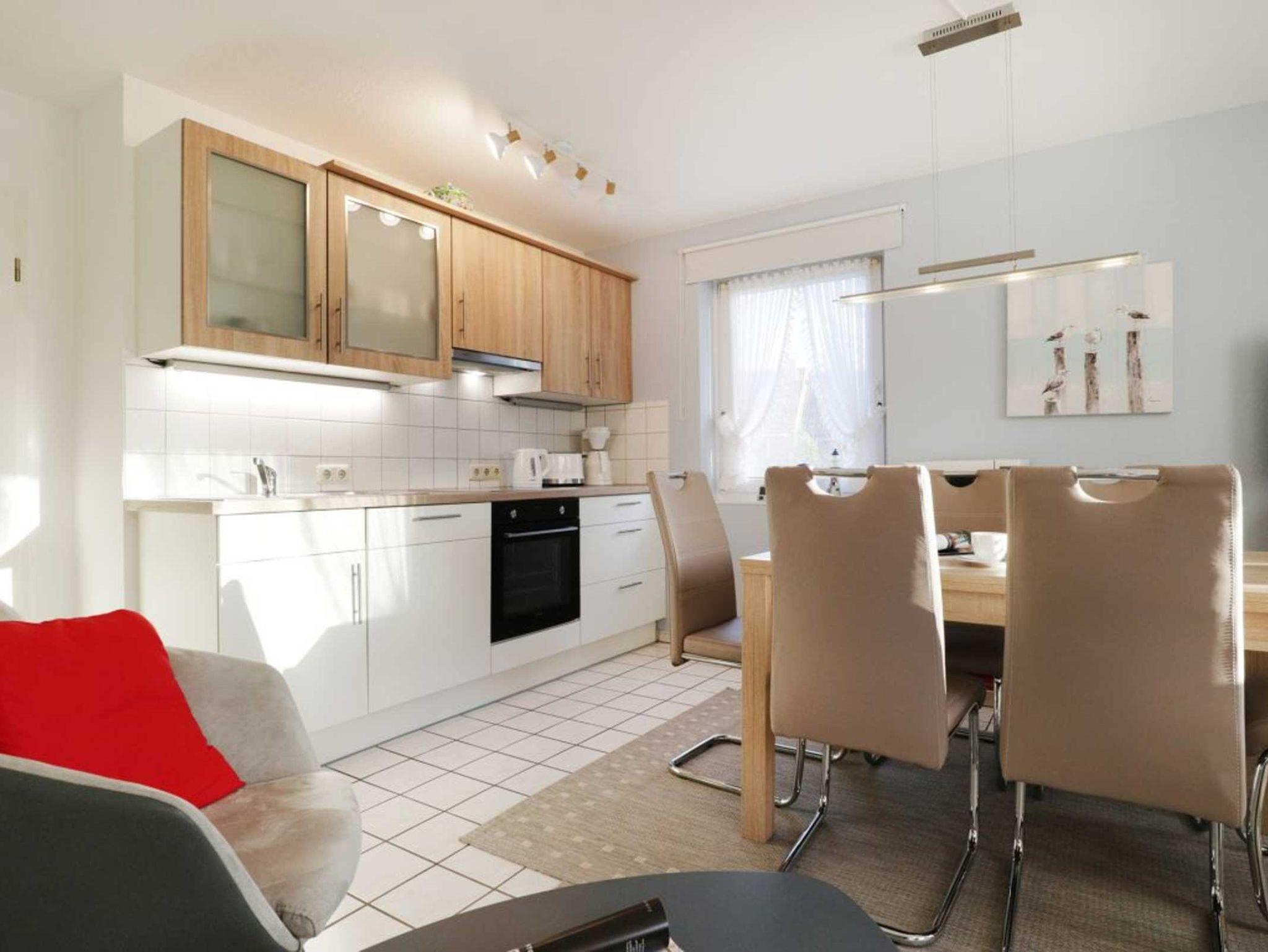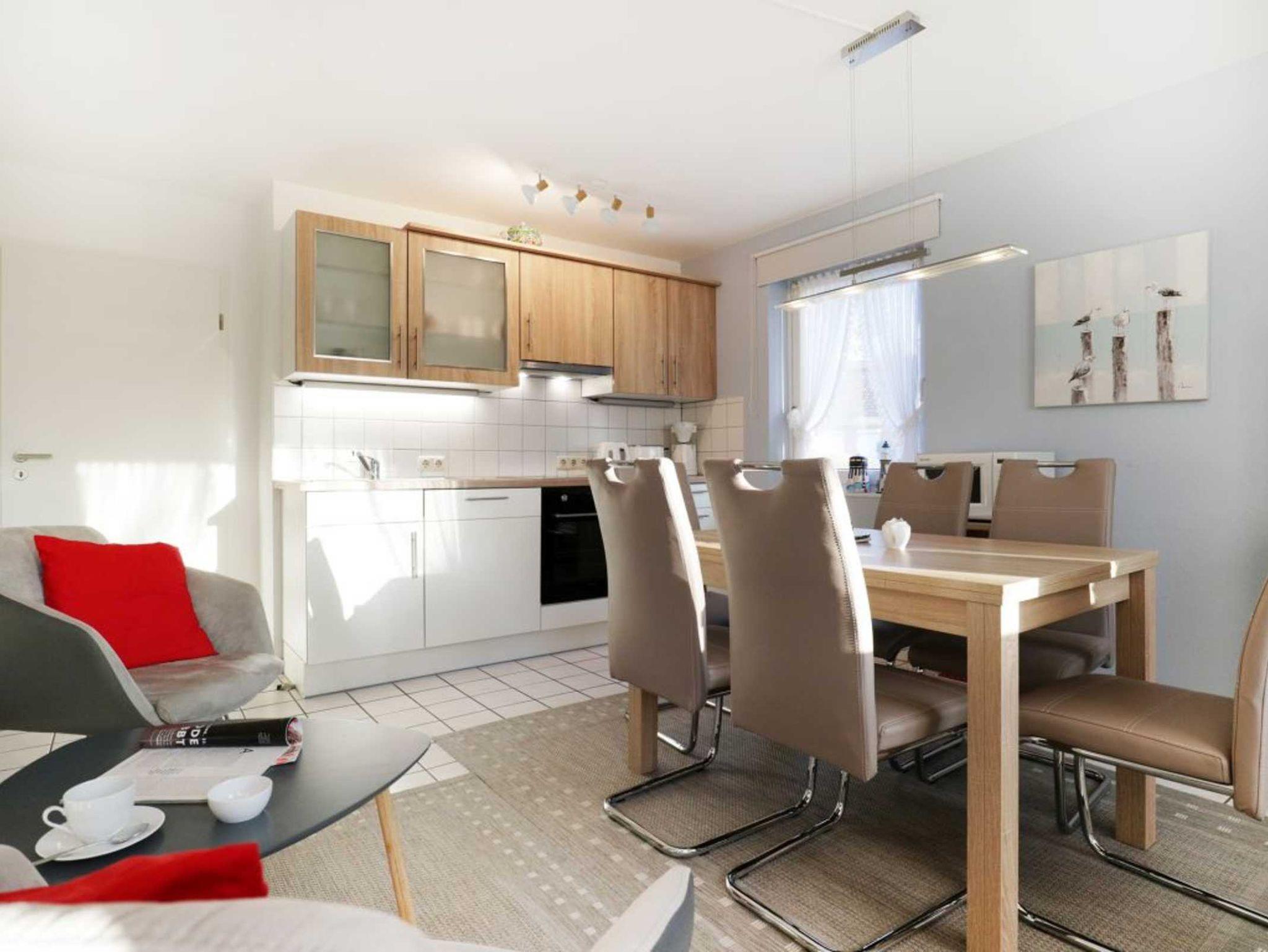 Das attraktive Reihenhaus im Urlauberdorf 47a ist ideal für Gäste, die mit ihrem Hund (gegen Gebühr) entspannte Ferien verbringen möchten. Insbesondere die nahe Lage, nur 350 Meter zum Badestrand mit Hundestrandabschnitt ist hervorzuheben. Zudem beginnen direkt am Haus schöne Spazierwege. Es empfängt Sie auf einer Wohnfläche von 55qm ein großzügiger Wohn-/Essbereich, einem bequemen Sofa, welches ausziehbar ist und somit zwei zusätzliche Schlafgelegenheiten ermöglicht. Flachbild Fernseher und Musikanlage sind selbstverständlich vorhanden. Gemeinsame Mahlzeiten, die Sie in der integrierten Küchenzeile zubereiten können, nehmen Sie an dem vorhandenen Esstisch ein.