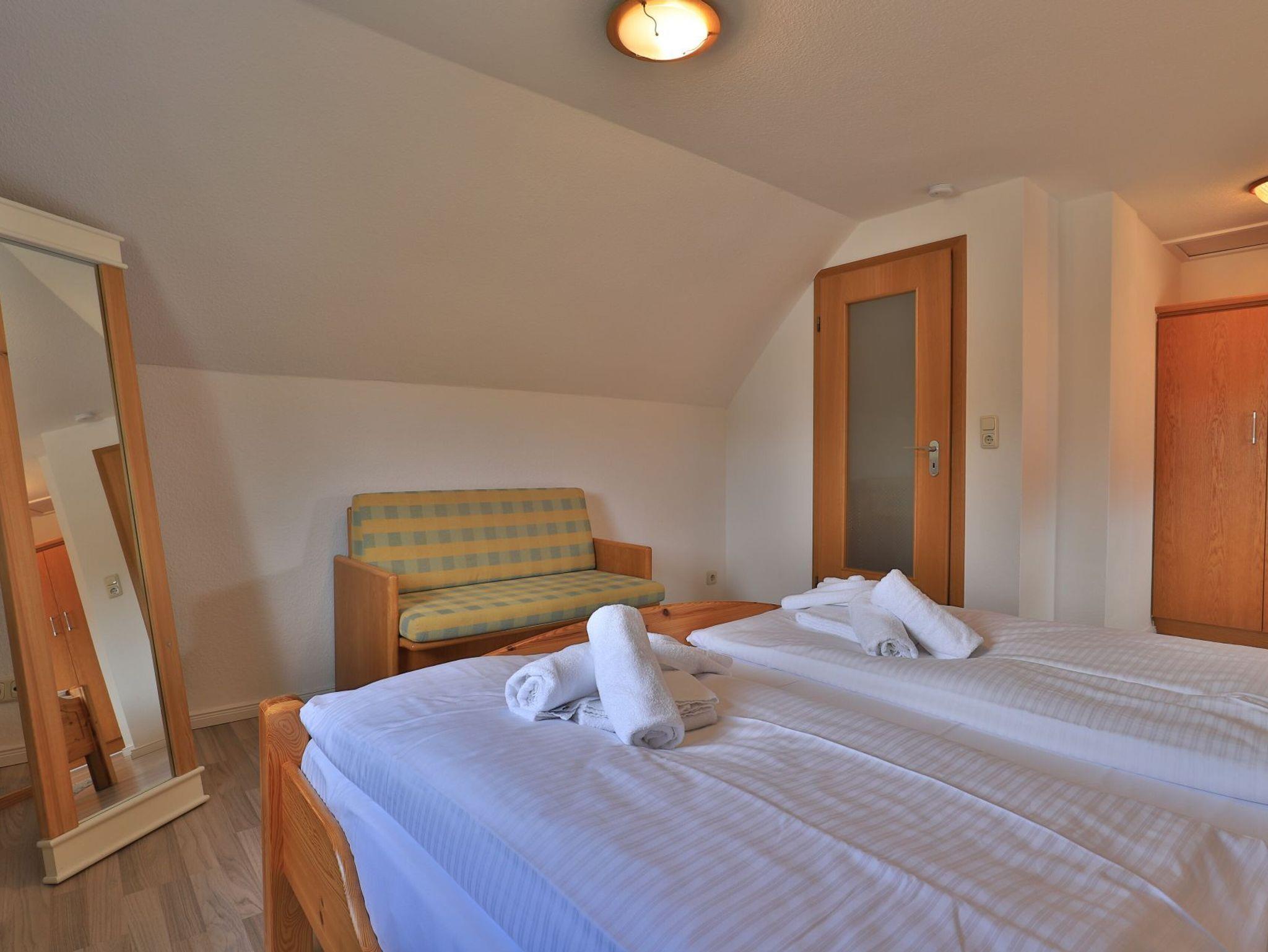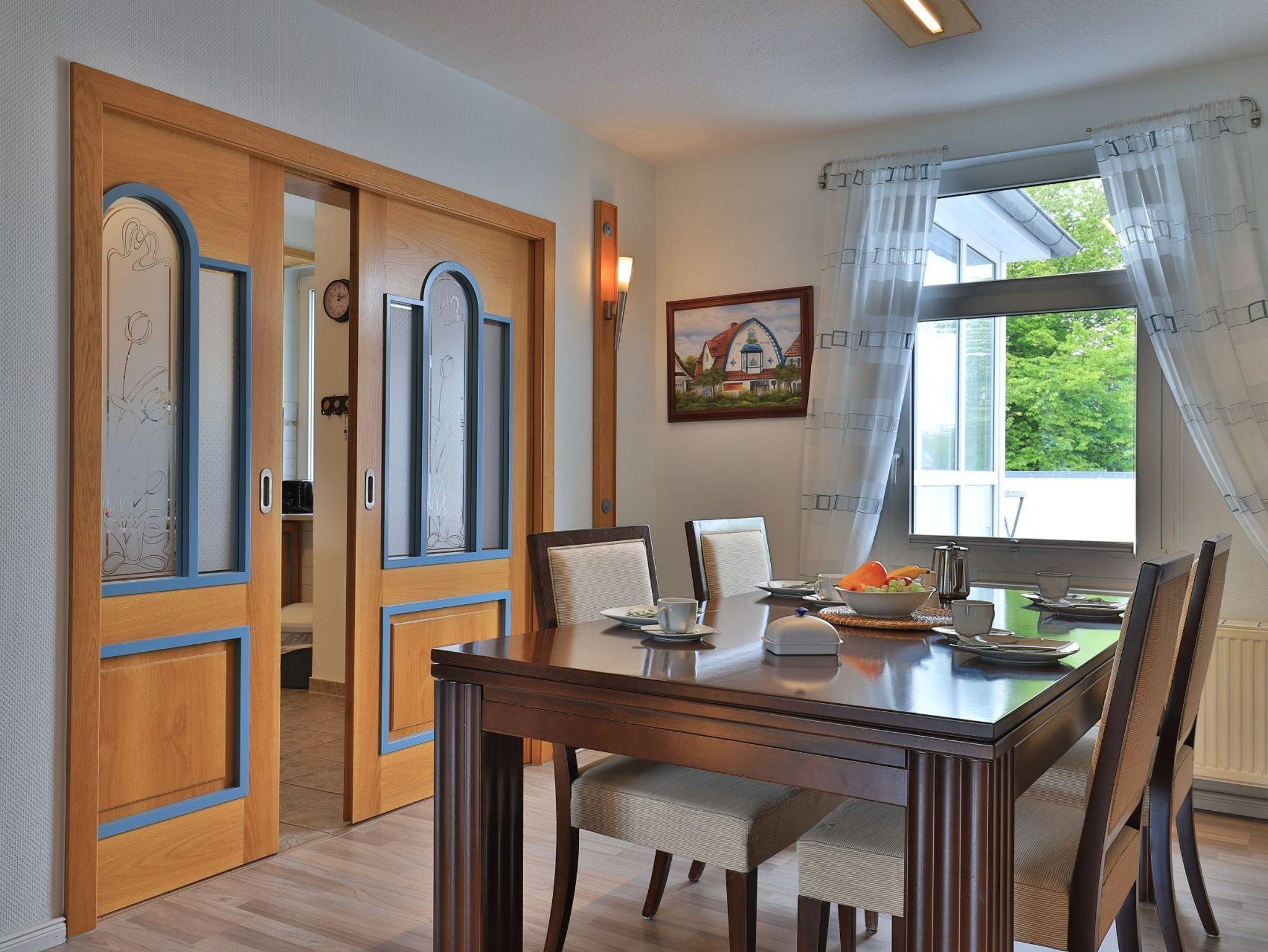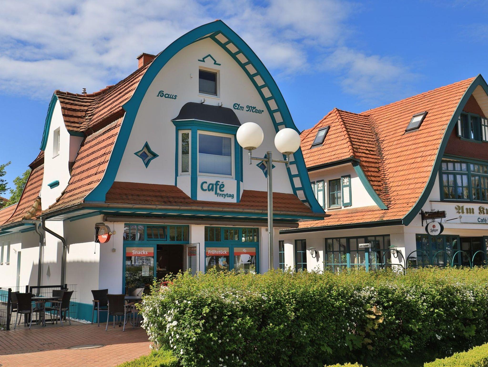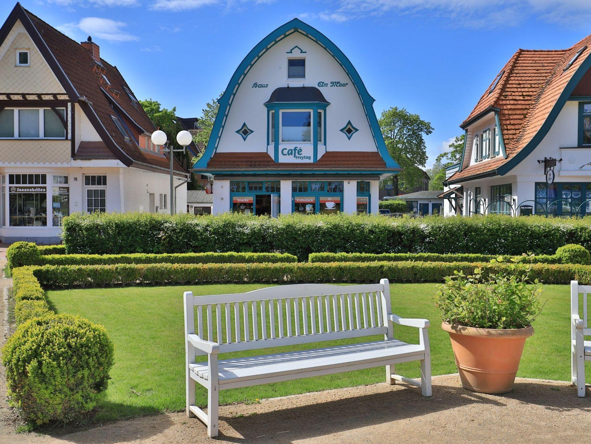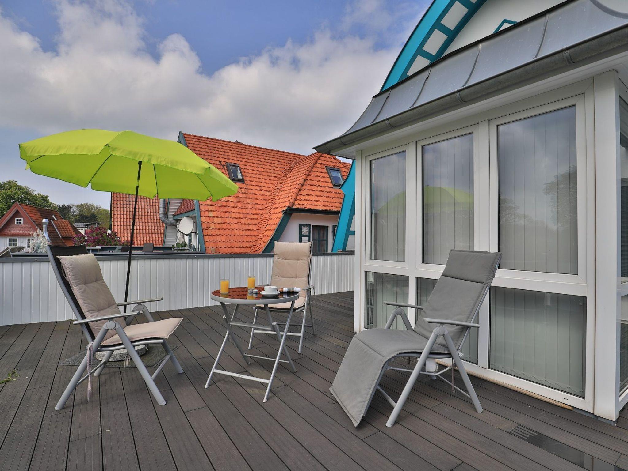 Die charmante 2-Zimmer-Maisonetten Ferienwohnung liegt 40 Meter zur Ostsee und bietet für bis zu 2 Personen eine Wohnfläche von 80qm. Sie bewohnen das 1. Obergeschoss über zwei Ebenen. -Kleines Haus am Meer- verfügt über einen separaten Eingang. Die nach Süd-/West und somit zum Ortszentrum ausgerichtete Dachterrasse ist 12qm groß -saisonal möbliert. Hell und freundlich empfängt Sie der geräumige Wohn-/ Essbereich, von dem Sie den Blick auf die Ostsee genießen können. Des Weiteren ist im Wohnbereich ein bequemes Sofa wie auch eine Sitzbank im Retro Style und ein Esstisch vorhanden. Zur technischen Ausstattung gehören ein Fernseher, Musikanlage, WLAN kostenfrei. Die separate Küche ist gut ausgestattet mit Ceranfeldherd, Backofen, Dunstabzug, Kühlschrank, Kaffeemaschine, Toaster u.s.w. In der 2. Wohnebene befinden sich ein großes Schlafzimmer mit Doppelbett und Kleiderschrank sowie ein modernes Duschbad. Für Ihren PKW steht ein kostenfreier Stellplatz zur Verfügung. Es handelt sich um eine Nichtraucher Wohnung, in der Haustiere nicht gestattet sind. Für Gäste, die kurze Wege bevorzugen ist dieses Feriendomizil in direkter Kurparklage geradezu ideal. Bummeln Sie entlang der Mittelpromenade vorbei an kleinen Boutiquen bis hin zum Küstenwäldchen.