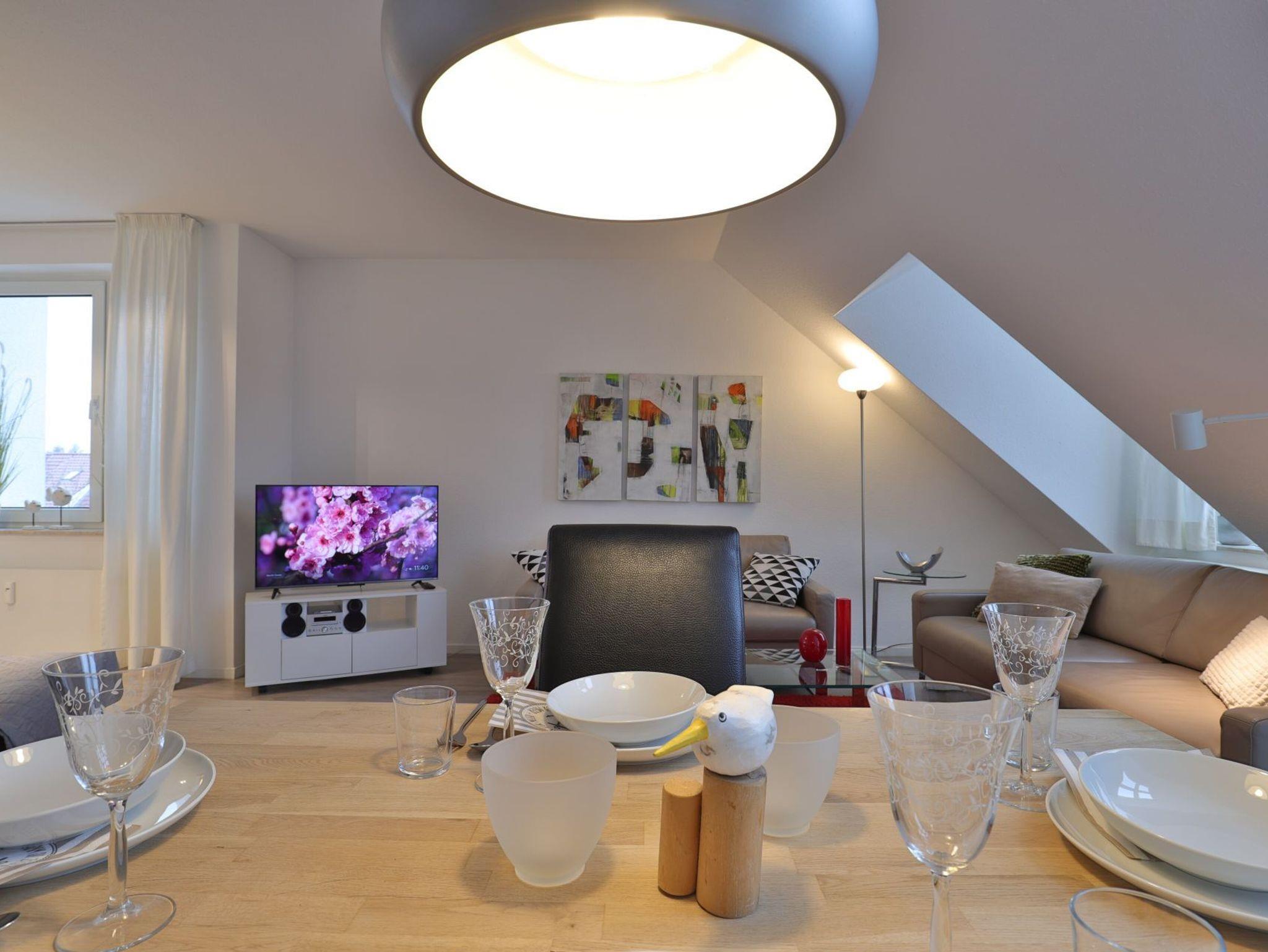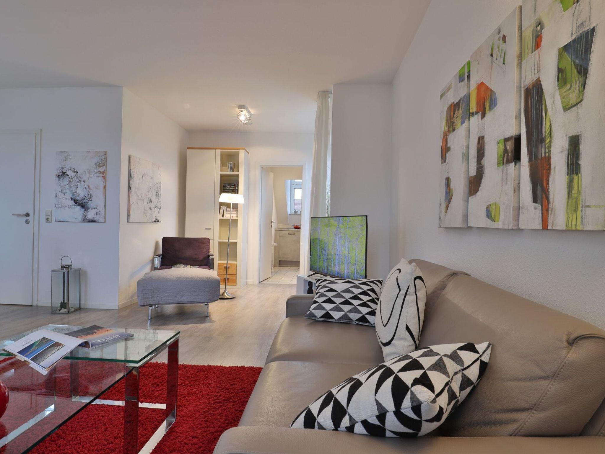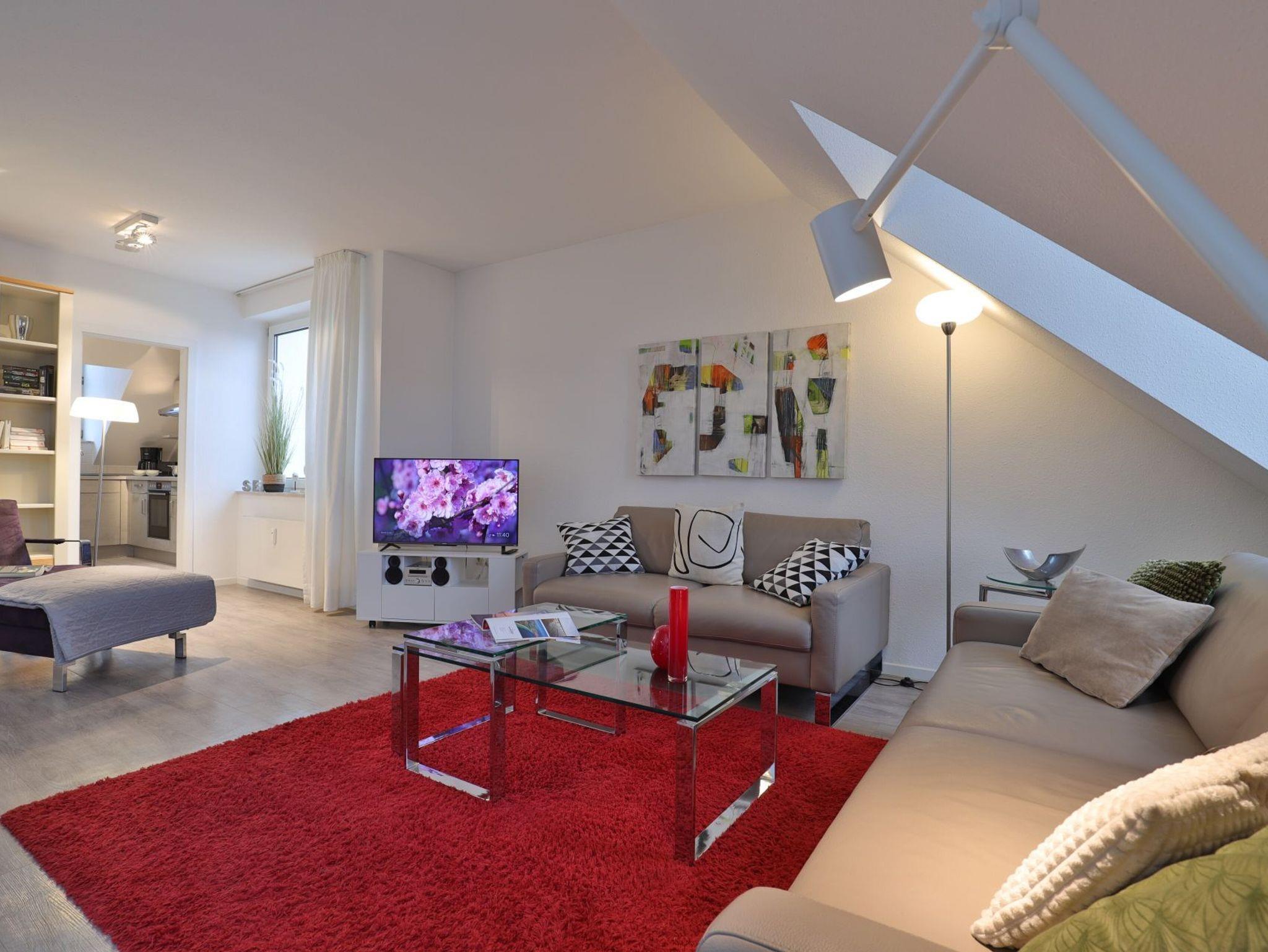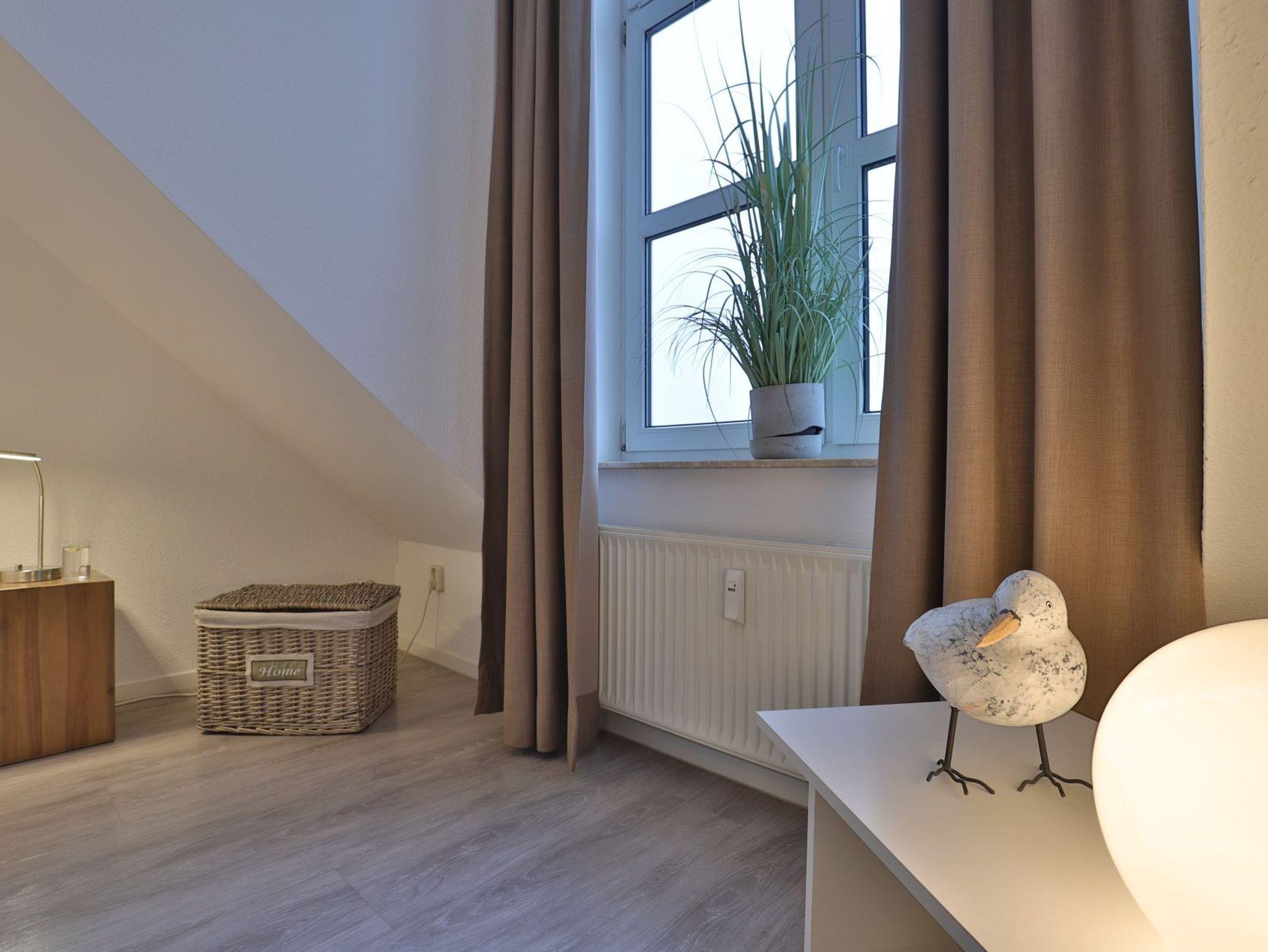 Nur 350 Meter vom Strand entfernt befindet sich die modernisierte 3-Zimmer-Ferienwohnung ? Sünnslag 13-59 -mit Balkon im Dachgeschoss einer gepflegten Ferienwohnanlage. Das hochwertig ausgestattete Appartement bietet auf ca. 63 qm Wohnfläche Platz für bis zu 4 Personen. Der helle Wohnbereich verfügt über ein bequemes Sofa, einen gemütlichen Ruhesessel sowie einen Esstisch für gemeinsame Mahlzeiten. Zur Unterhaltung stehen ein Flachbild-TV, DVD-Player, Musikanlage und kostenfreies WLAN zur Verfügung. Die separate Küche ist voll ausgestattet mit Cerankochfeld, Backofen, Mikrowelle, Kühlschrank, Geschirrspüler sowie Kaffeemaschine, Toaster und Wasserkocher. Zwei separate Schlafzimmer sorgen für erholsamen Schlaf: eines mit Doppelbett und Kleiderschrank, das zweite mit zwei Einzelbetten. Ein zweckmäßig ausgestattetes Duschbad ist vorhanden. Für kleine Kinder steht ein Reisebett im Appartement. Ebenso sind Bügeleisen und Bügelbrett vorhanden. Ein kostenfreier, reservierter PKW-Stellplatz befindet sich direkt am Haus. Nichtraucherwohnung, Haustiere sind nicht erlaubt. Zur Erleichterung des Reisegepäcks können Bettwäsche und Handtücher gegen Gebühr hinzugebucht werden; die Wäschepakete erhalten Sie bei Anreise im Büro.