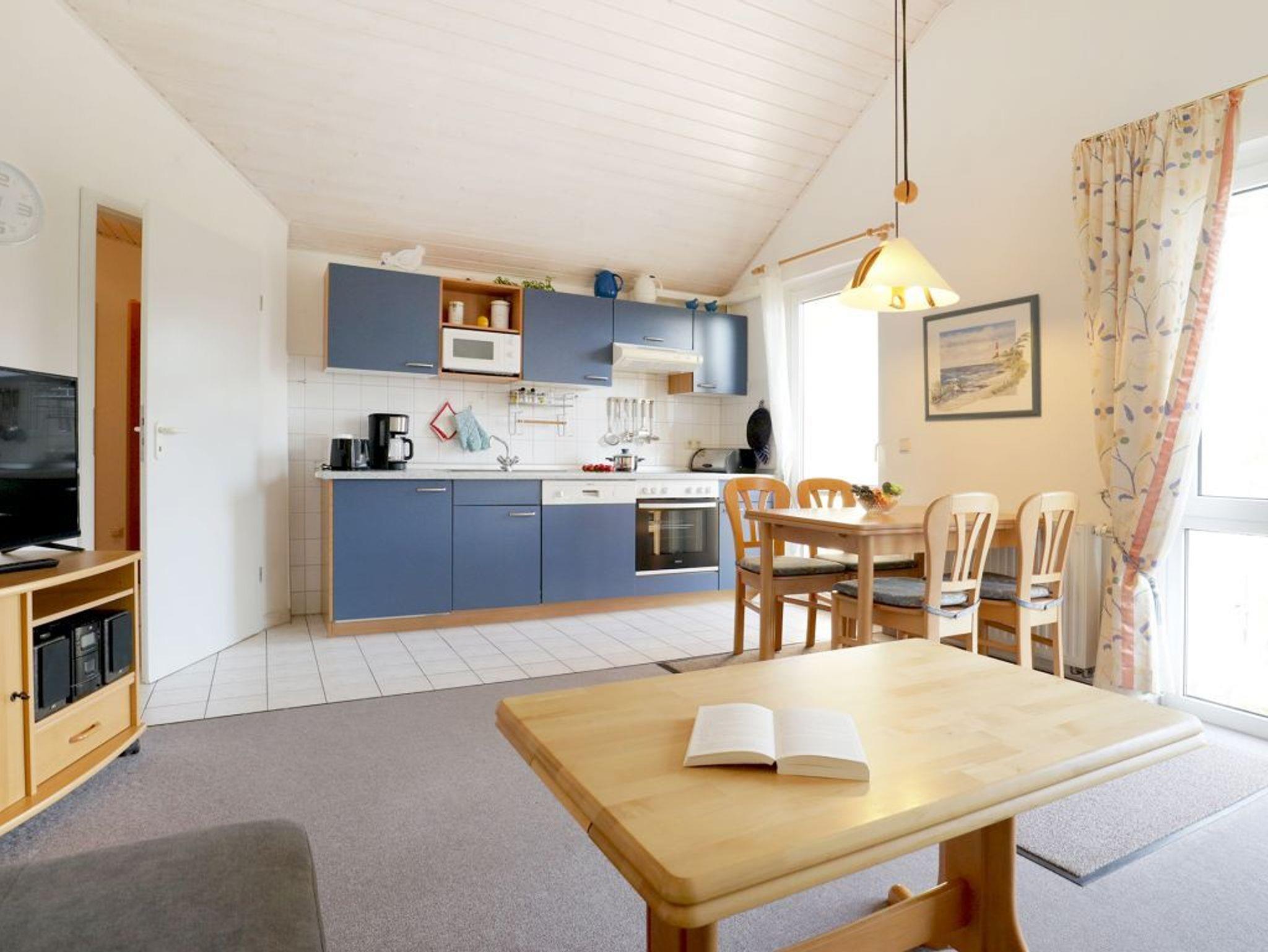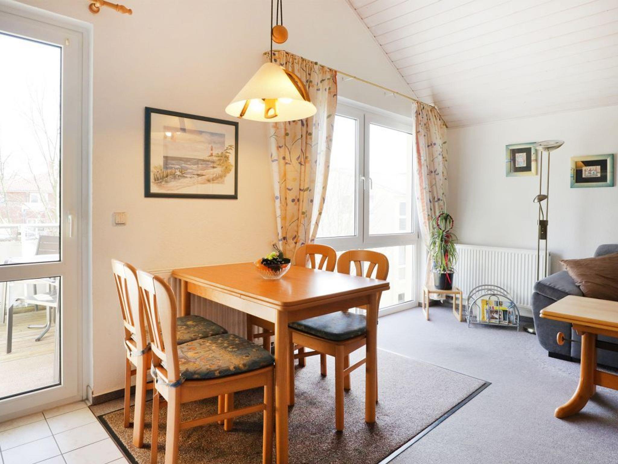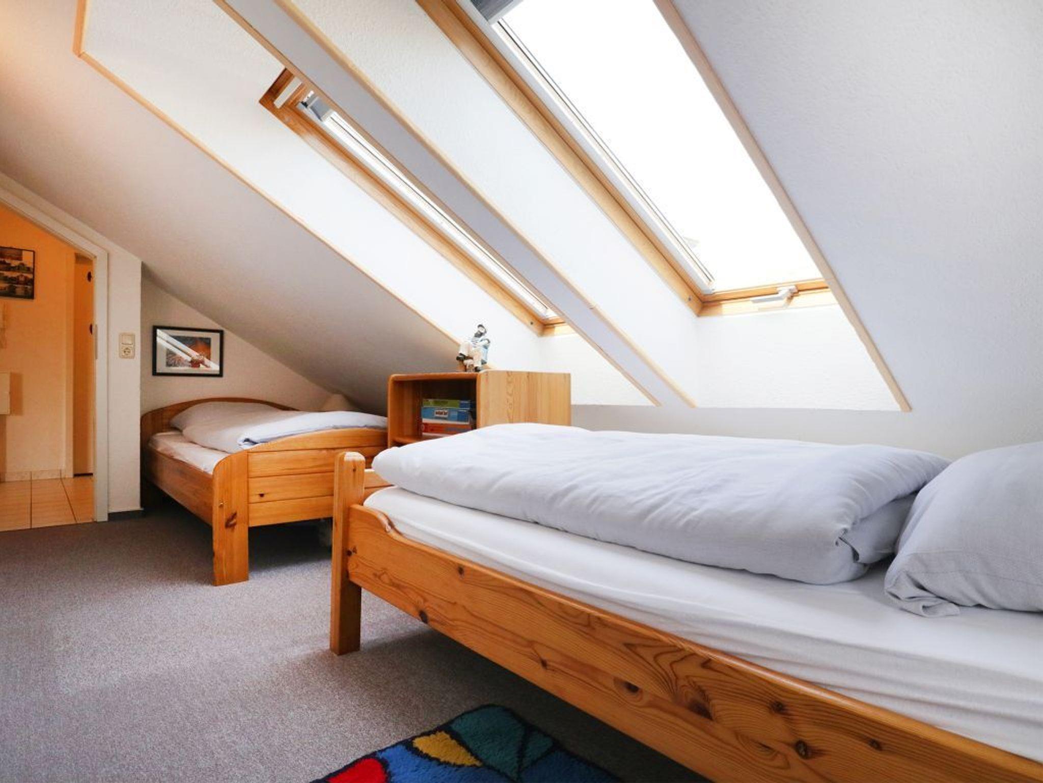 Die Wohnfläche der Wohnung - Godewind 11- beträgt 54qm. Im geräumigen Wohnzimmer mit Esstisch befinden sich ein bequemes Sofa, Fernseher und Musikanlage. Die in den Wohnbereich integrierte Küchenzeile ist mit einem 4 - Plattenherd, Backofen, Mikrowelle, Kühlschrank sowie Geschirrspüler u.v.m. ausgestattet. Der teilweise überdachte Balkon liegt in Süd-/Ost Richtung. Das 1. Schlafzimmer ist mit einem Doppelbett, Schränken und Schreibtisch zudem mit einem Fernseher eingerichtet. Das 2. Schlafzimmer- unter einer gemütlichen Dachschräge- bietet zwei Einzelbetten. Zur Wohnung gehört ein Duschbad indem Sie auch eine Waschmaschine und einen Fön nutzen können. Für Ihren PKW steht ein reservierter Stellplatz vor dem Haus bereit. Für kleine Kinder sind ein Kinderhochstuhl und ein Kinderreisebett in der Wohnung vorhanden. Es handelt sich um eine Nichtraucher Unterkunft. Haustiere sind nicht gestattet.