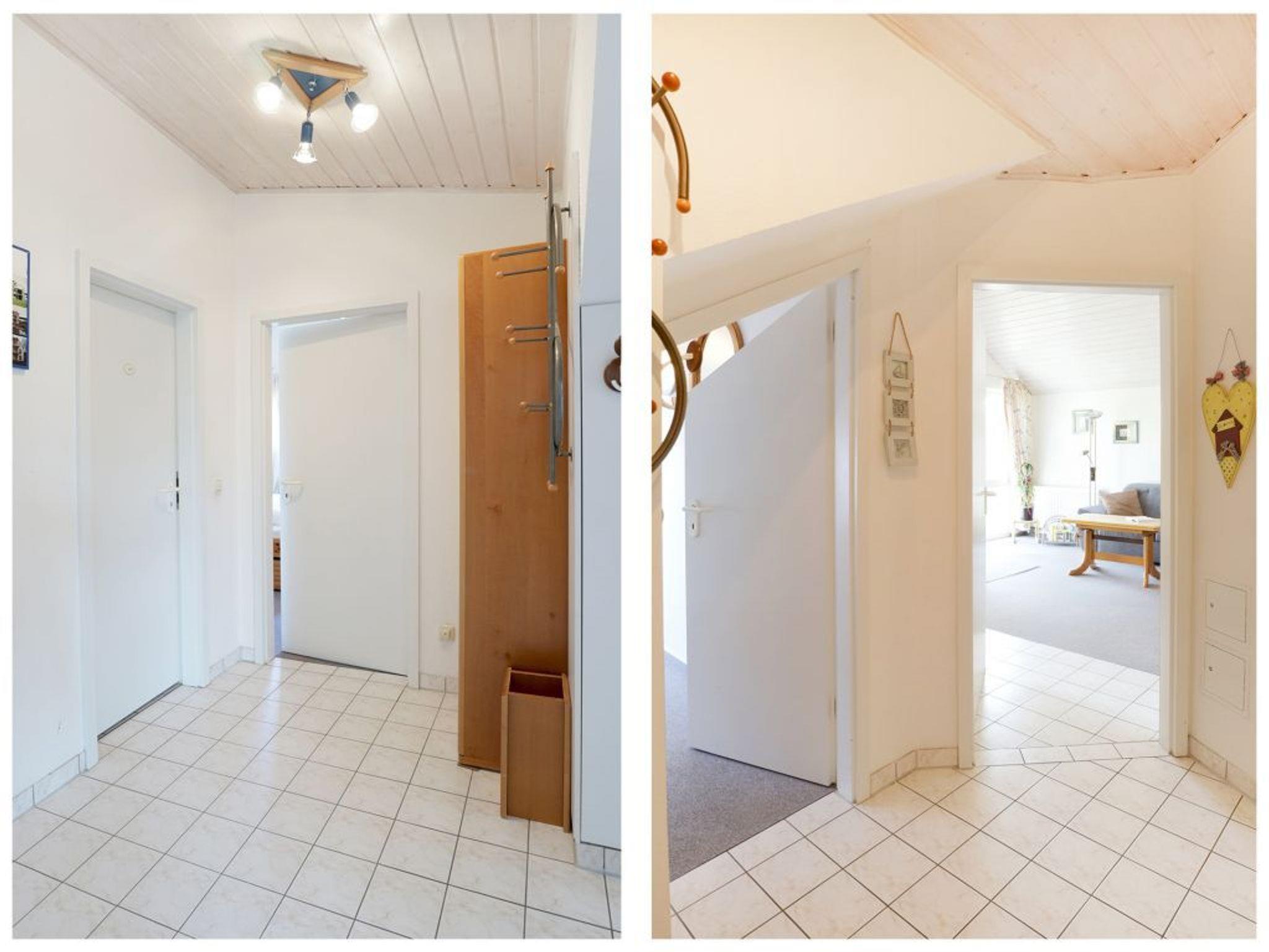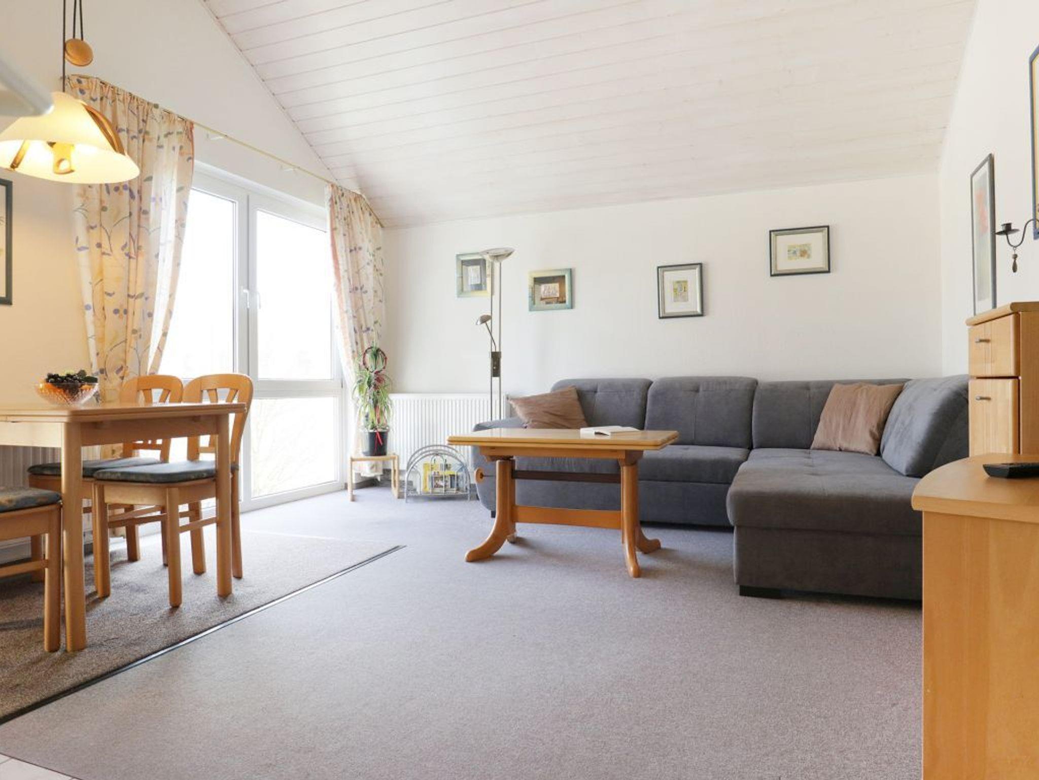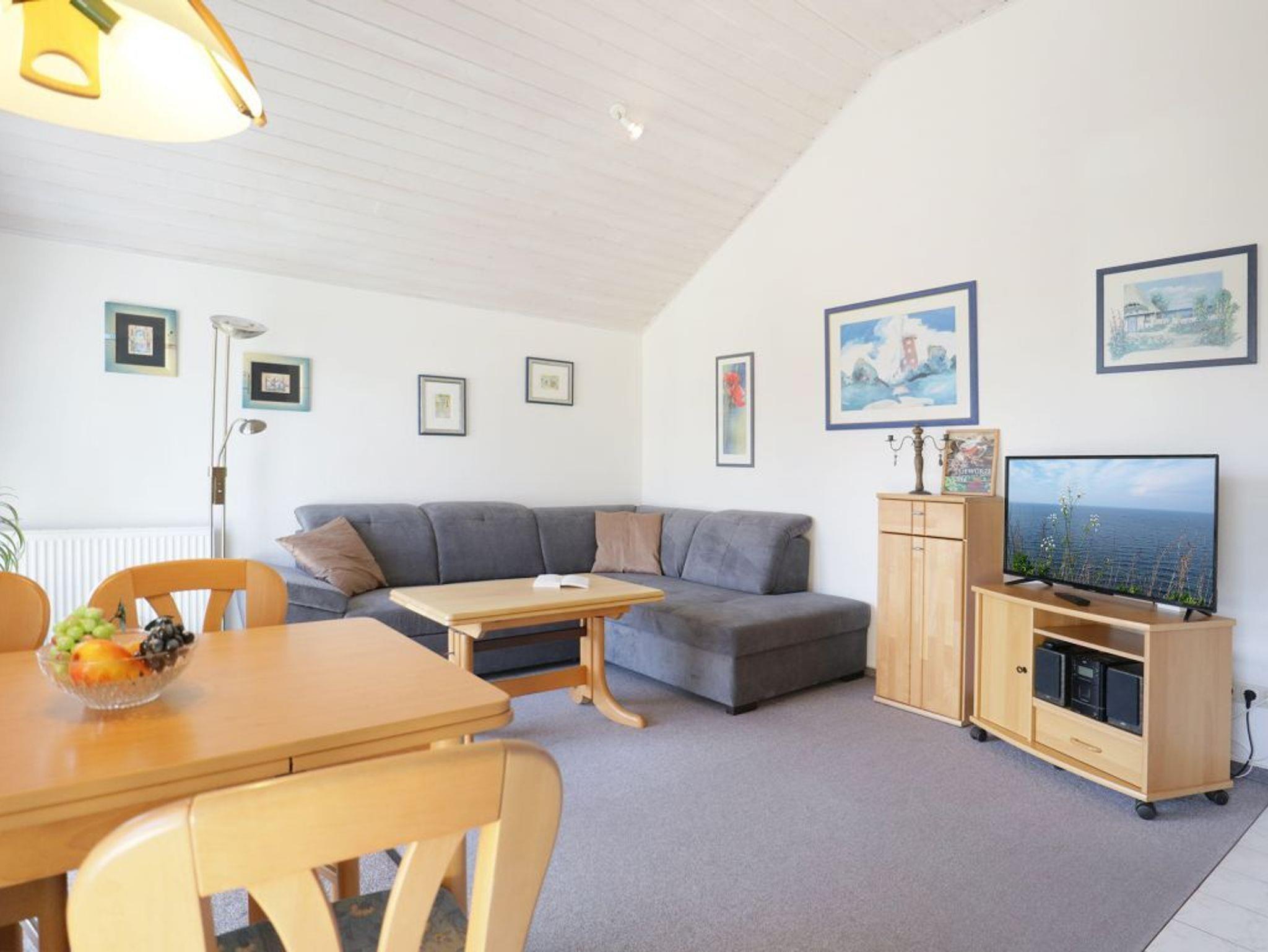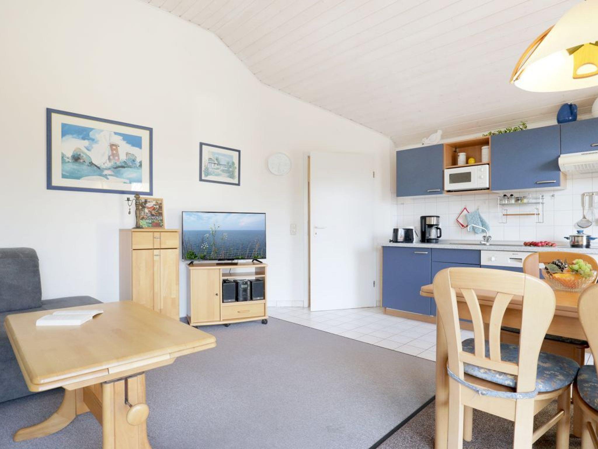 Die Wohnfläche der Wohnung - Godewind 11- beträgt 54qm. Im geräumigen Wohnzimmer mit Esstisch befinden sich ein bequemes Sofa, Fernseher und Musikanlage. Die in den Wohnbereich integrierte Küchenzeile ist mit einem 4 - Plattenherd, Backofen, Mikrowelle, Kühlschrank sowie Geschirrspüler u.v.m. ausgestattet. Der teilweise überdachte Balkon liegt in Süd-/Ost Richtung. Das 1. Schlafzimmer ist mit einem Doppelbett, Schränken und Schreibtisch zudem mit einem Fernseher eingerichtet. Das 2. Schlafzimmer- unter einer gemütlichen Dachschräge- bietet zwei Einzelbetten. Zur Wohnung gehört ein Duschbad indem Sie auch eine Waschmaschine und einen Fön nutzen können. Für Ihren PKW steht ein reservierter Stellplatz vor dem Haus bereit. Für kleine Kinder sind ein Kinderhochstuhl und ein Kinderreisebett in der Wohnung vorhanden. Es handelt sich um eine Nichtraucher Unterkunft. Haustiere sind nicht gestattet.