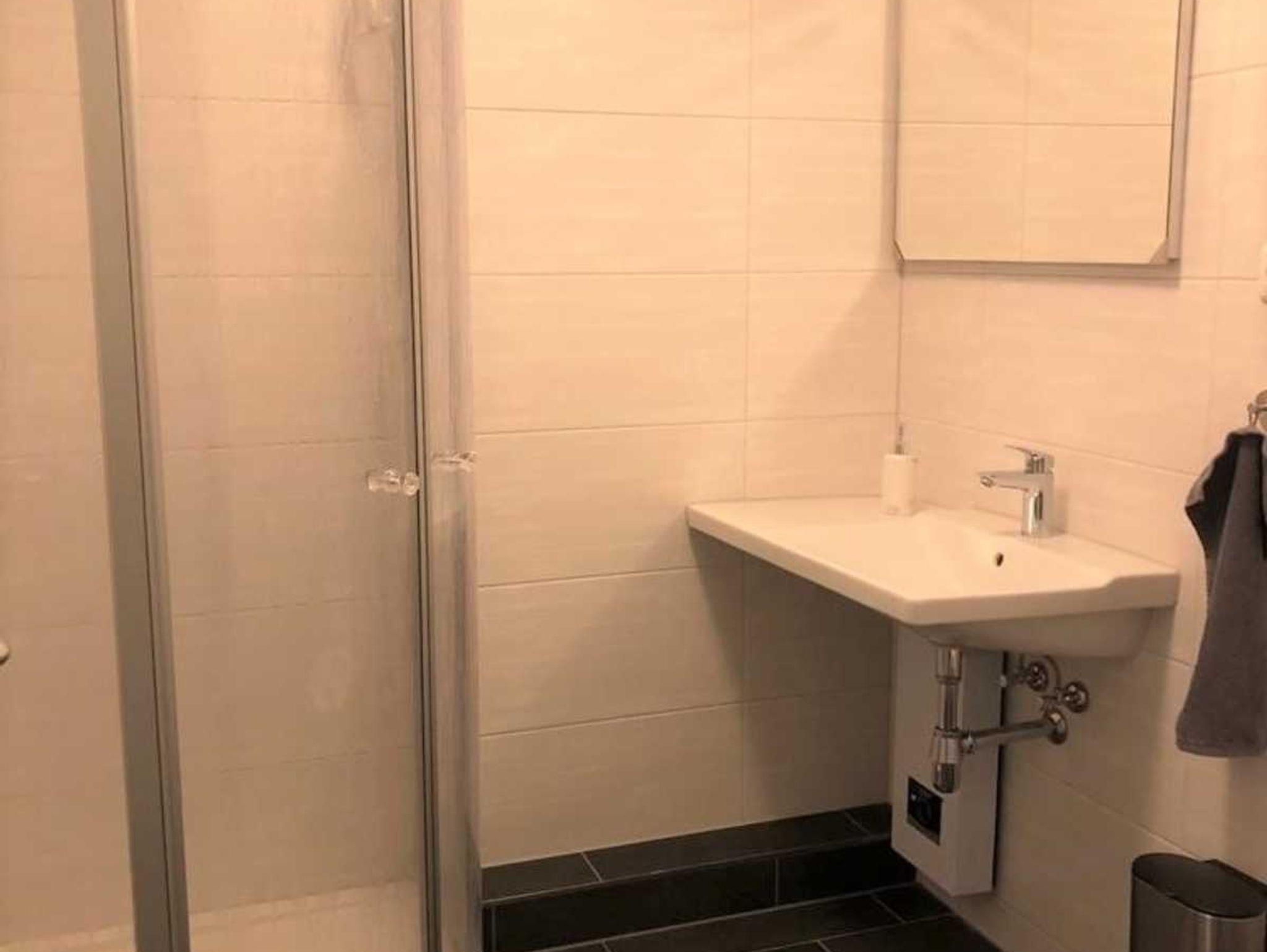 Das Badezimmer entspricht mit einer fast ebenerdigen Dusche und einem Handtuchwärmer gehobenen