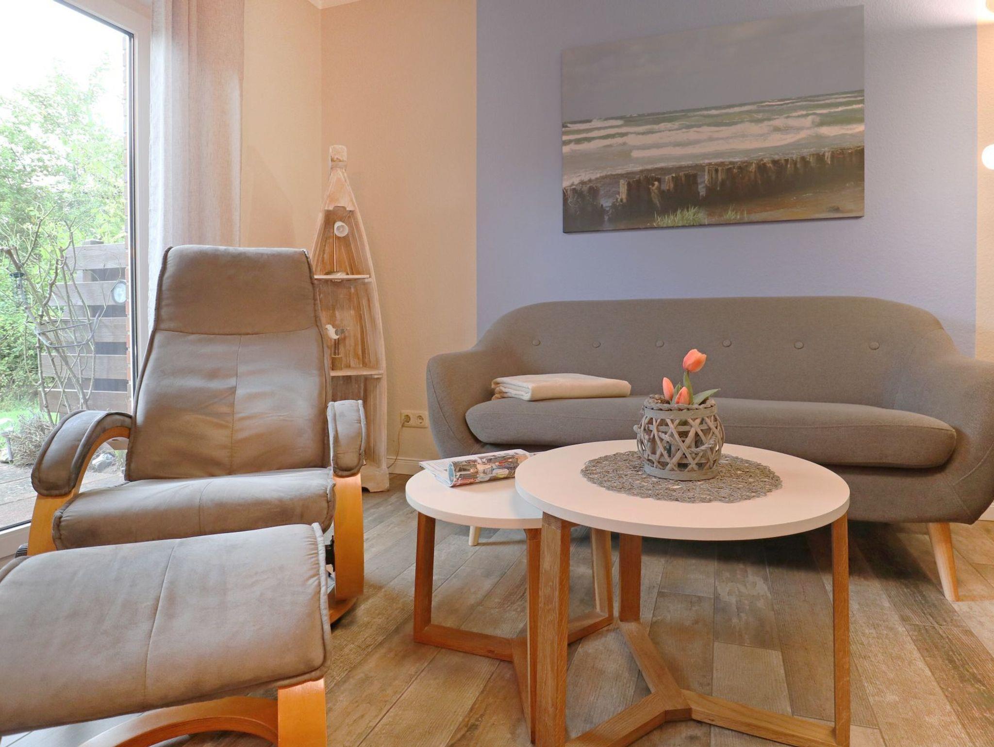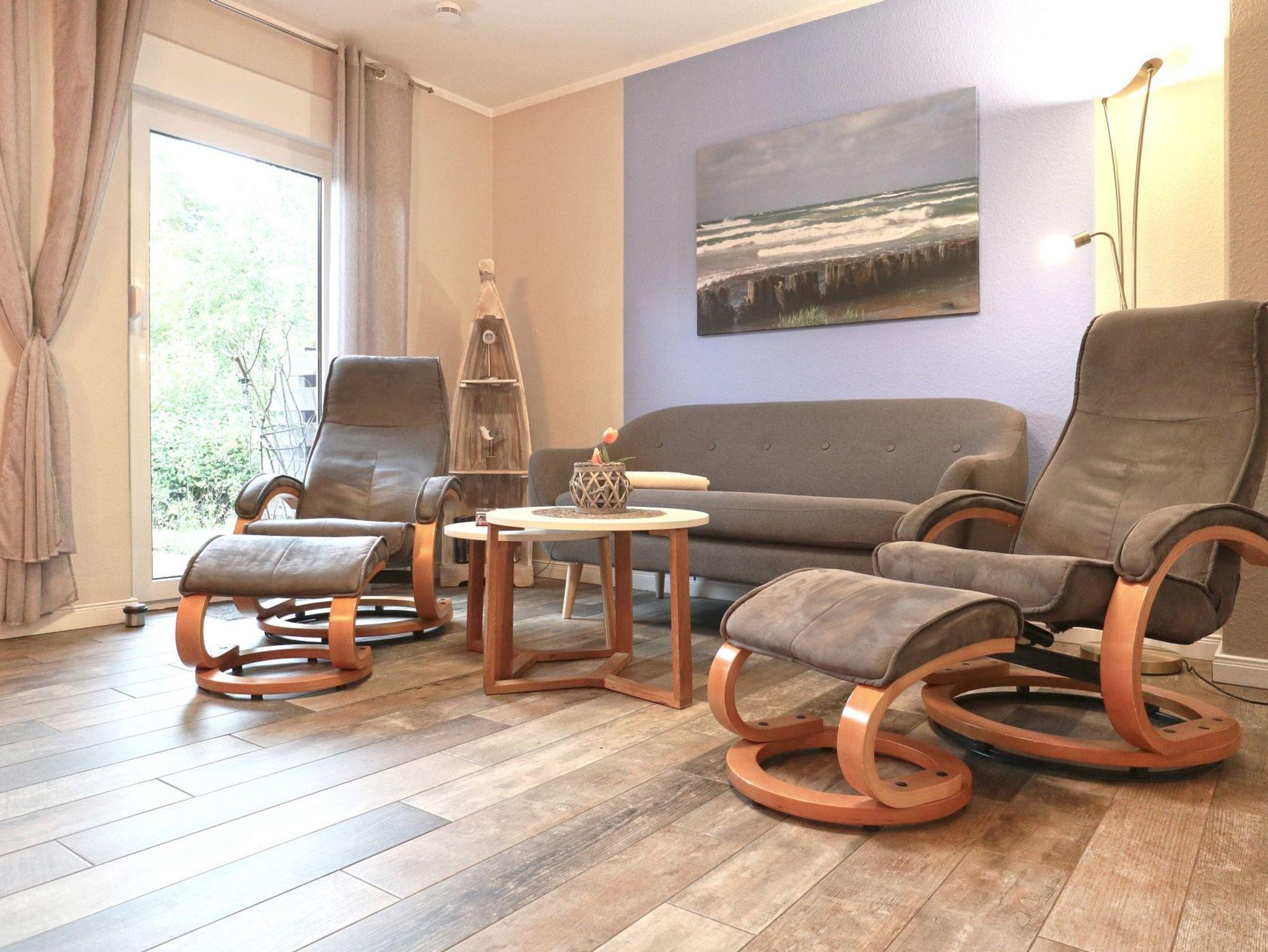 Für einen perfekten Familienurlaub mit bis zu vier Personen ist das strandnahe 3-Zimmer Ferienhaus im Urlauberdorf 41c nahezu perfekt. Kostenfrei können Sie den Bollerwagen sowie Kinderhochstuhl und Kinderbett nutzen. Das gemütlich eingerichtete Ferienhaus bietet Ihnen eine großzügige Wohnfläche von 54qm und empfängt Sie im Erdgeschoss mit einem sehr geschmackvoll möblierten Wohn-/Essbereich in dem ein Sofa und Ruhesessel, Esstisch sowie Fernseher mit DVD und Musikanlage vorhanden sind. Das WLAN nutzen Sie kostenfrei. Vom Wohnraum betreten Sie die sonnige Terrasse, die saisonal bedingt möbliert ist. Eine offene Küchenzeile ist in den Wohnbereich integriert und verfügt über einen Ceranfeldherd mit Backofen, Mikrowelle, Geschirrspüler, Kaffeemaschine, Toaster, Wasserkocher usw. Ebenso befinden sich im Erdgeschoss ein Schlafzimmer mit zwei Einzelbetten und ein hell gefliestes Duschbad, wo auch eine Waschmaschine zur kostenfreien Nutzung bereitsteht. Über eine Treppe gelangen Sie in das Obergeschoss mit einem weiteren Schlafzimmer in dem sich ein Doppelbett, Kleiderschrank und auch ein Fernseher befinden. Zudem sind Bügelbrett und Bügeleisen vorhanden. Ein Gäste-WC befindet sich ebenso im Obergeschoss. Für Ihren PKW ist ein kostenfreier Stellplatz am Haus reserviert. Wir weisen darauf hin, dass es sich um ein Haus für Nichtraucher handelt, in dem Haustiere nicht gestattet sind. In ca. 400 Meter erreichen Sie ein Einkaufszentrum.
