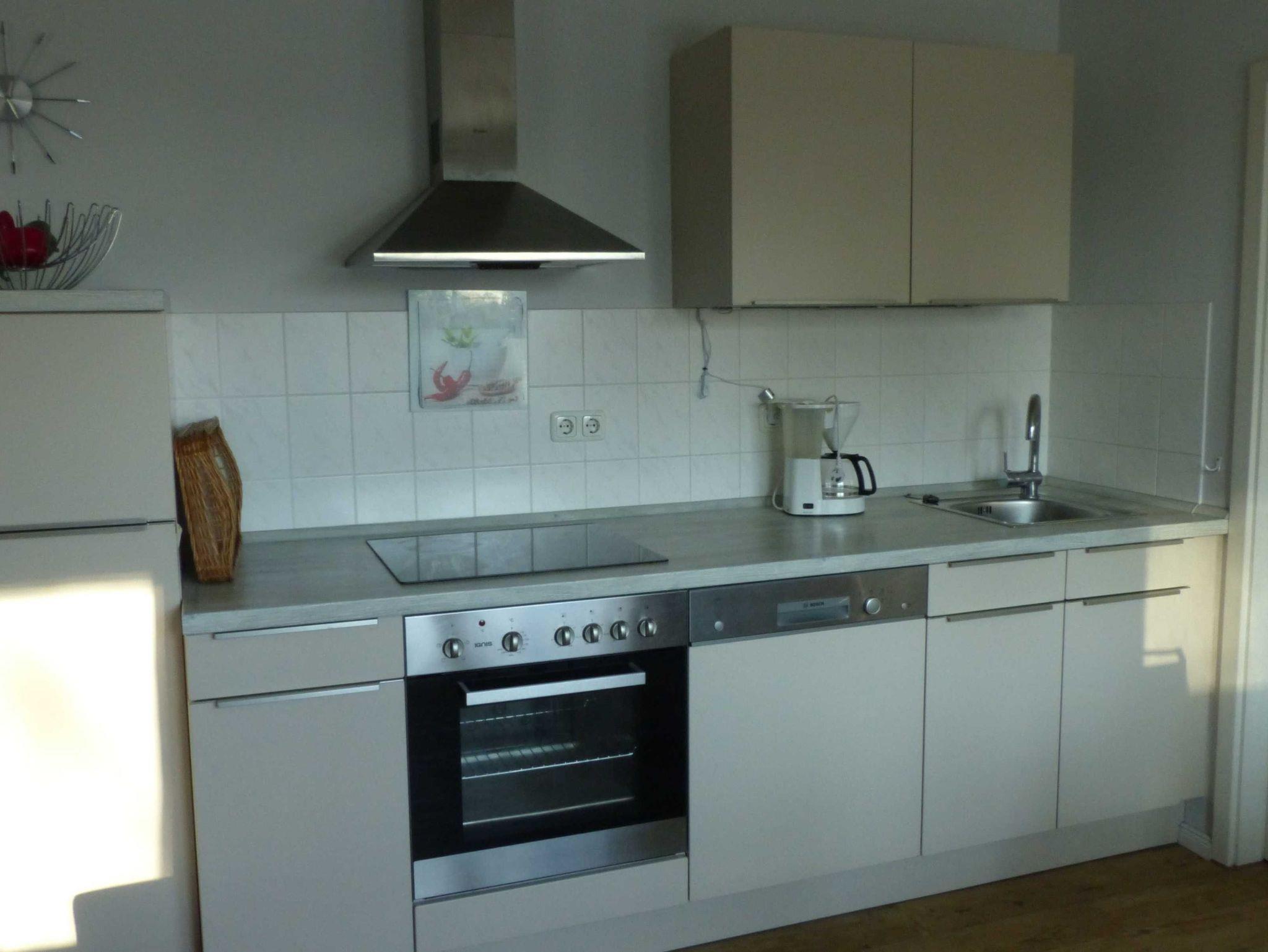 Ein voll ausgestatteter Küchenbereich mit Geschirrspüler, Ceranfeld, Backofen, Kühlschrank, Mikrowelle und separaten Essplatz vervollständigen den Raum.