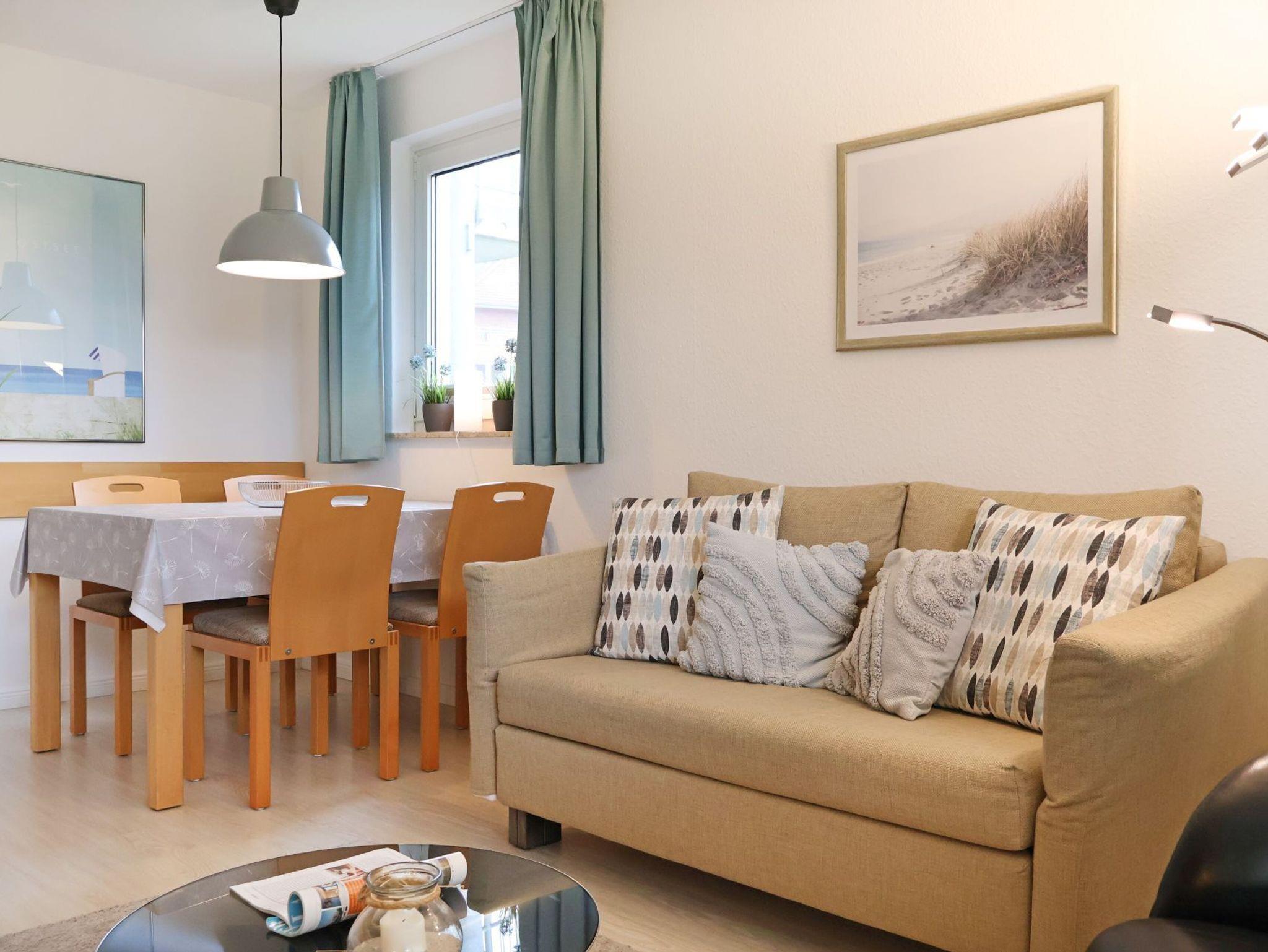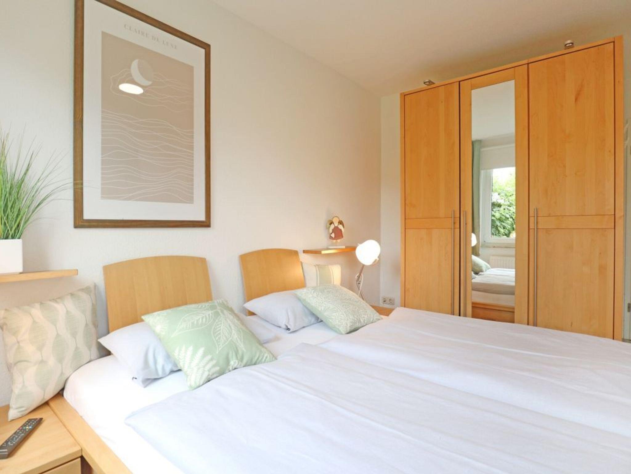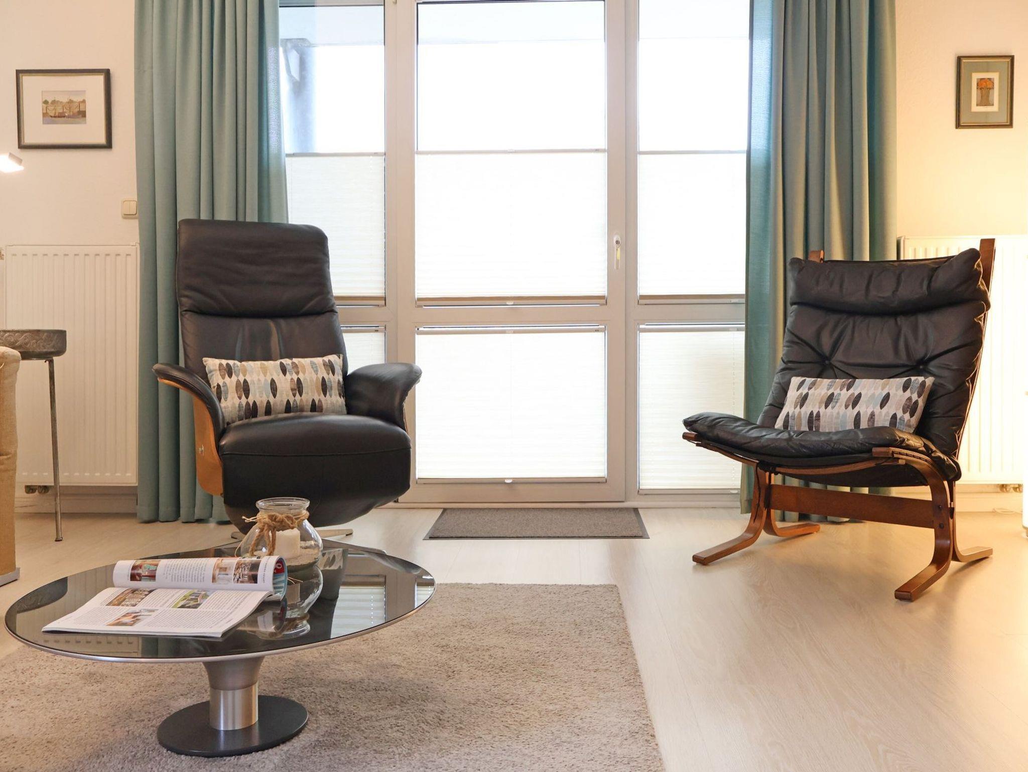 Das insgesamt hochwertig ausgestattete Apartment mit Terrasse in Süd Richtung, auf der sich während der Saison ein Strandkorb sowie weitere Möblierung befinden, ist für 2 Personen buchbar und verfügt über eine gut aufgeteilte Wohnfläche von 55qm. Sehr geschmackvoll empfängt Sie das helle Wohnzimmer mit einem bequemen Sofa, Ruhe-/Lesesessel, Schrankwand, Flachbild -Fernseher, DVD, Musikanlage, Esstisch mit 4 Sitzplätzen. Kostenfrei können sie den Internetzugang über WLAN nutzen. Die Küche befindet sich separat und ist komfortabel ausgestattet mit Cerankochfeld, Backofen, Mikrowelle, Geschirrspüler, Kaffeemaschine, Toaster, Wasserkocher ausreichend Geschirr, Töpfe u.s.w.
