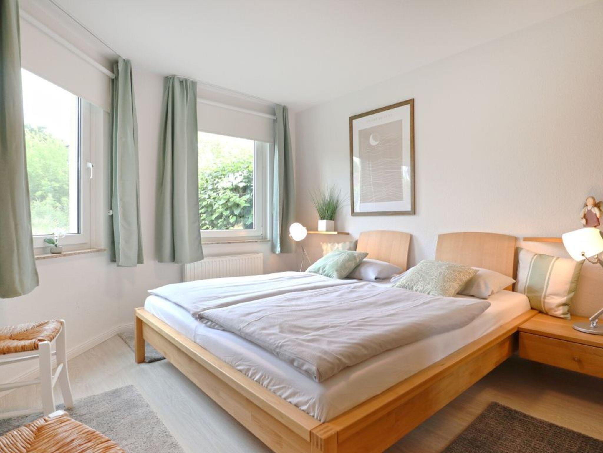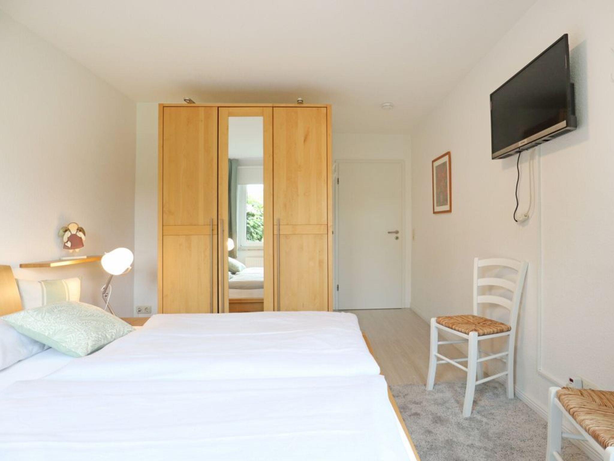 Zudem ist in der Küche eine Waschmaschine zur kostenfreien Nutzung platziert. Das separate Schlafzimmer mit Doppelbett ? verstellbare Federholzrahmen- und Kleiderschrank beinhaltet Verdunkelungsrollos sowie ein 2. Flachbild- Fernsehgerät. In dem hell gefliesten Duschbad mit Waschtisch, erhöhtem WC sowie vorhandenem Fön, starten Sie in Ihren Urlaubstag. Den feinsandigen Strand erreichen Sie nach einem kurzen Spaziergang in ca.180 Meter.