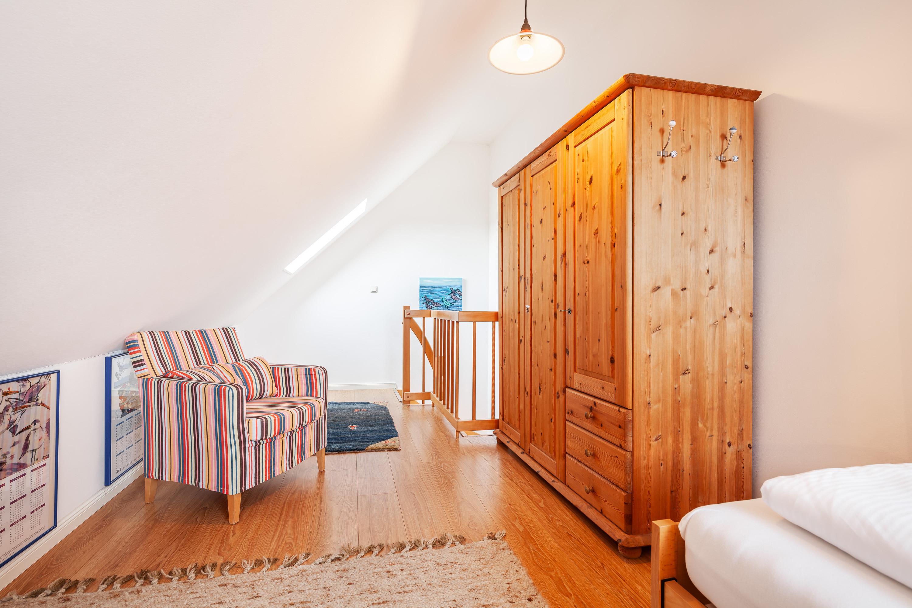 Es stehen Ihnen 3 gemütliche Schlafzimmer zur Verfügung ,einschließlich einer Schlafgalerie im Dachgeschoss mit insgesamt 6 Schlafplätzen.