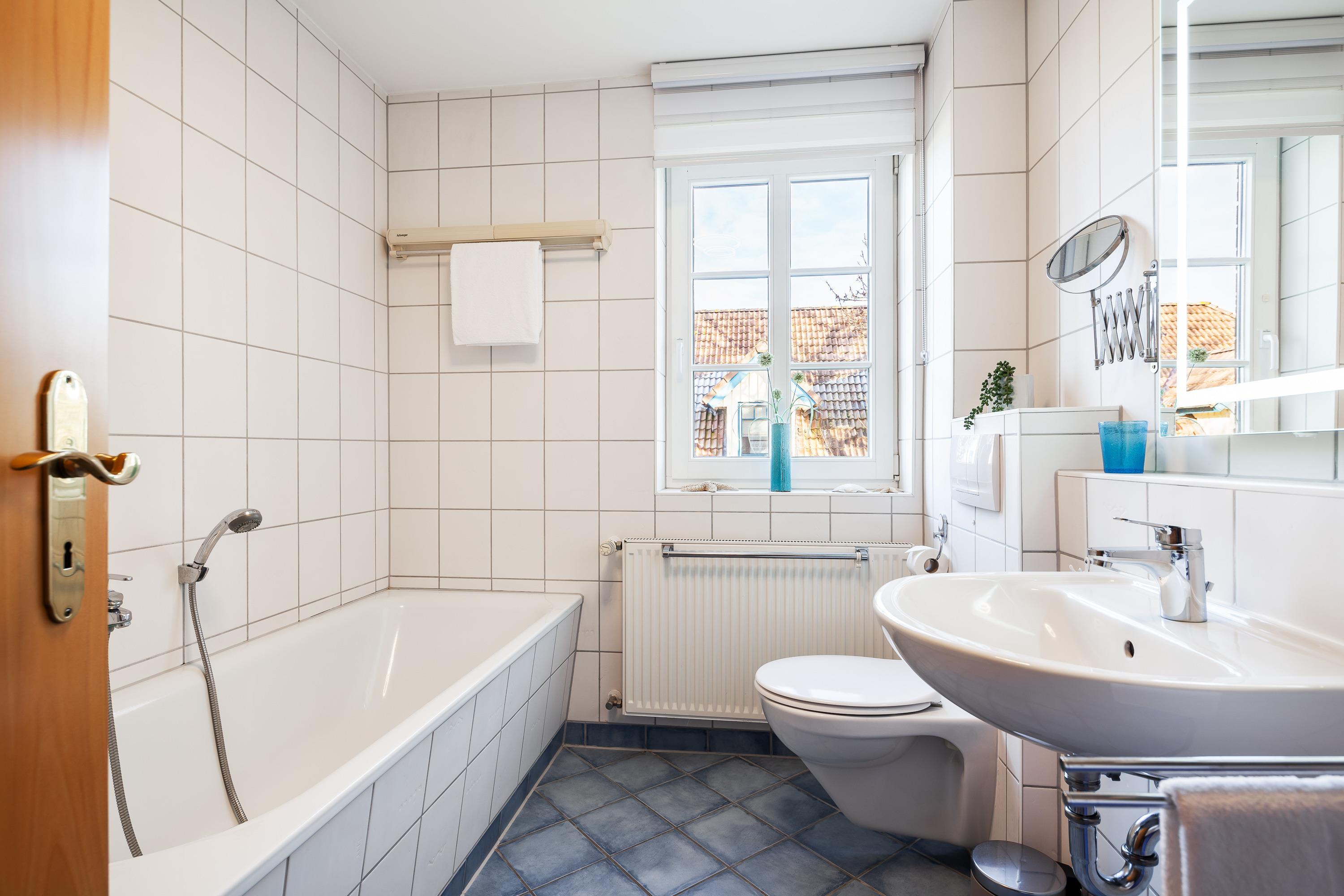 Außerdem [nbsp]befinden sich im Erdgeschoss ein Duschbad und im Obergeschoss ein Badezimmer mit Wanne.