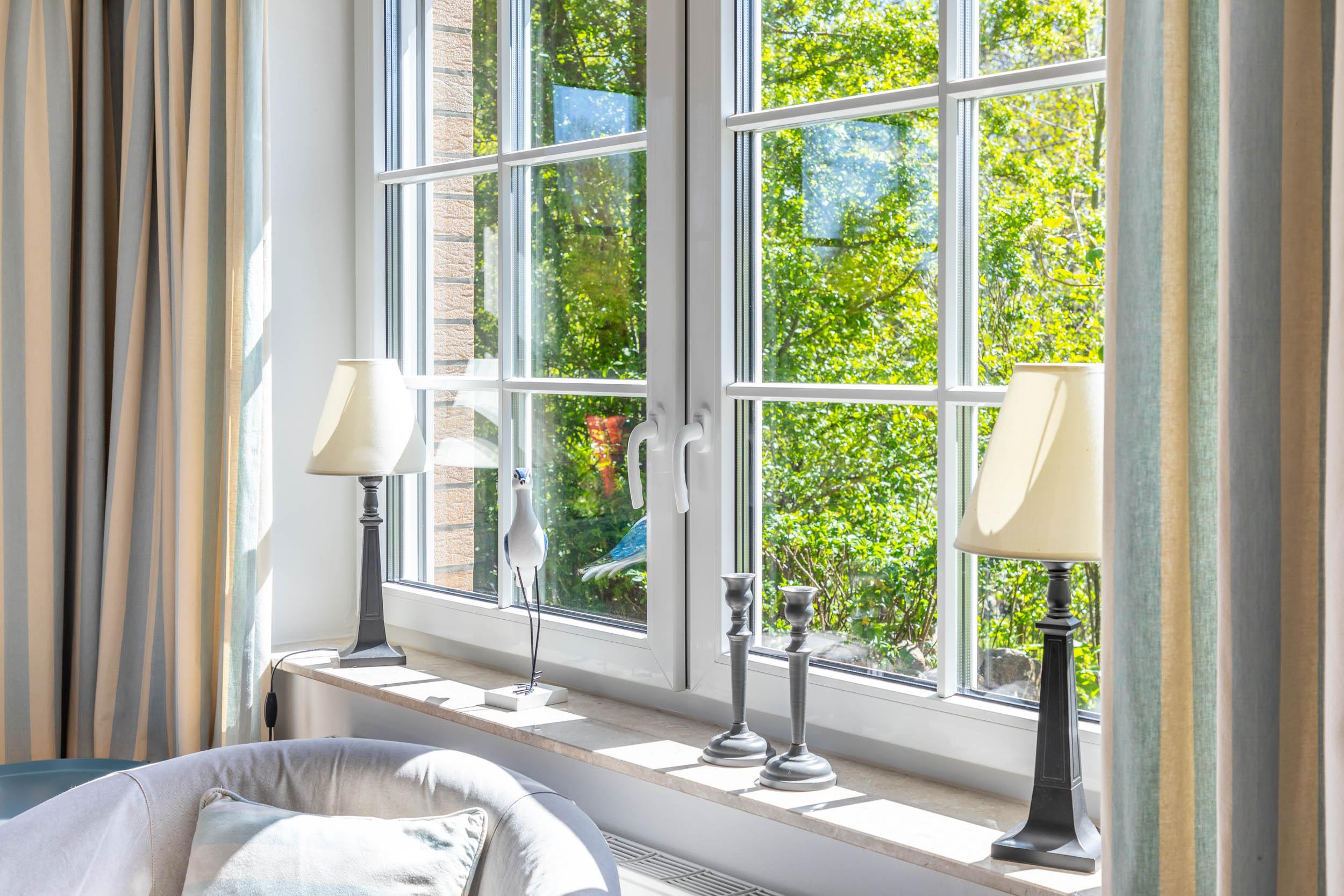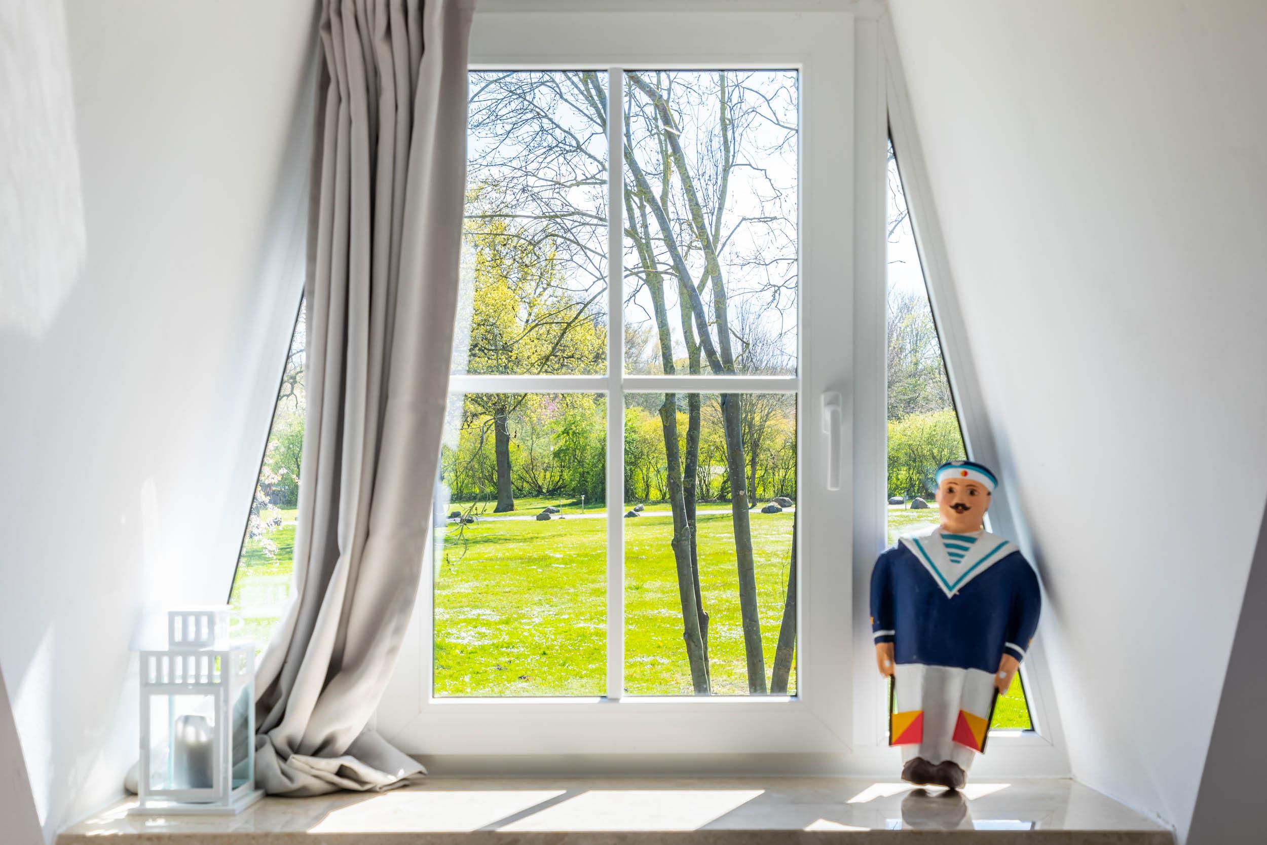 Die Fenster vom Wohnbereich und Schlafzimmer im EG sind mit Außenrollos ausgestattet. Auch die oberen Schlafmöglichkeiten lassen sich gut mit Vorhängen u.ä. abdunkeln. Für unsere kleinsten Gäste steht ein Hochstuhl kostenlos im Haus zur Verfügung. Wenn Sie sich ein Reisebettchen mitbringen oder bei uns eines gegen Gebühr ausleihen, können Sie dieses in sämtlichen Räumen im Haus aufstellen, da überall ausreichend Platz dafür ist.