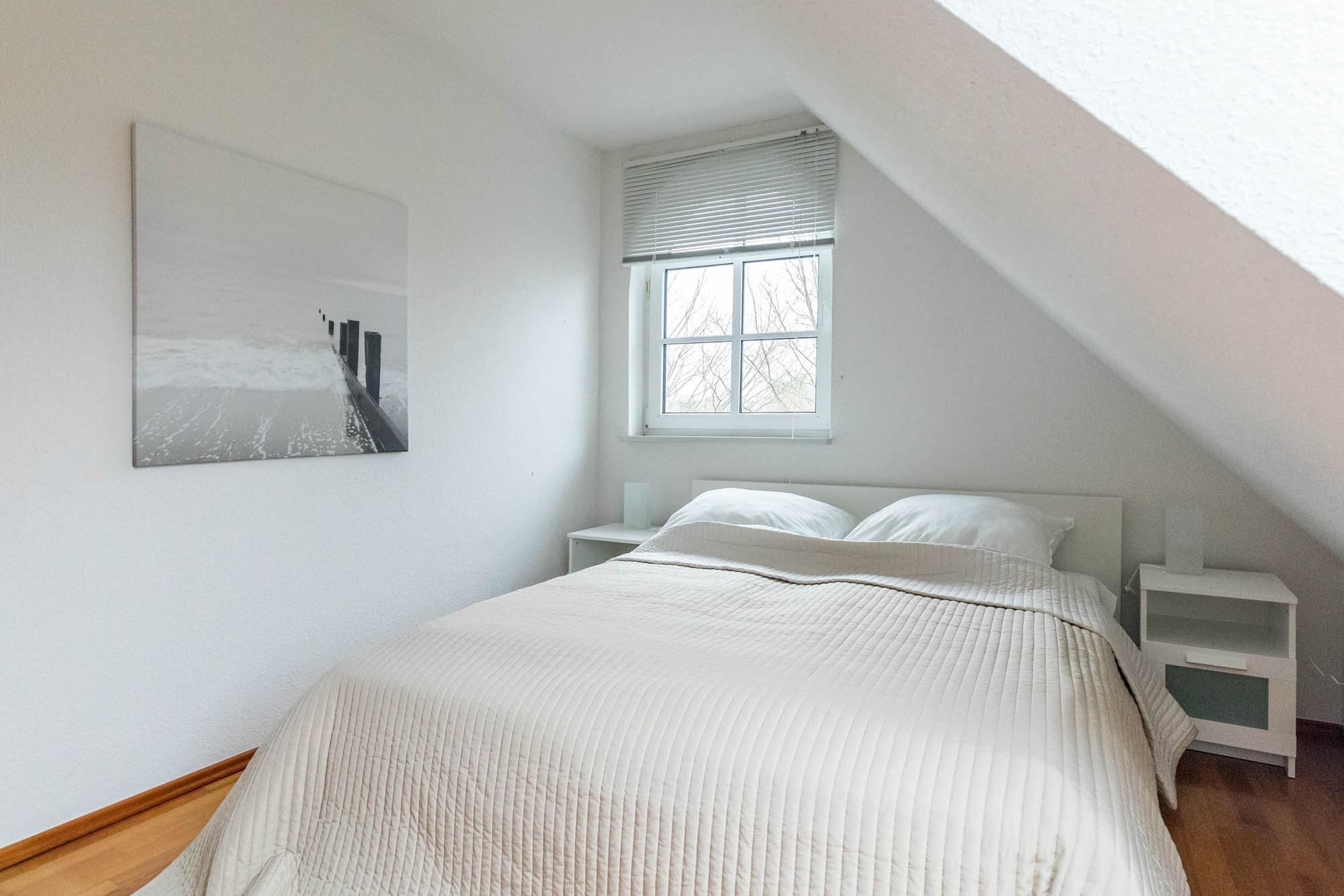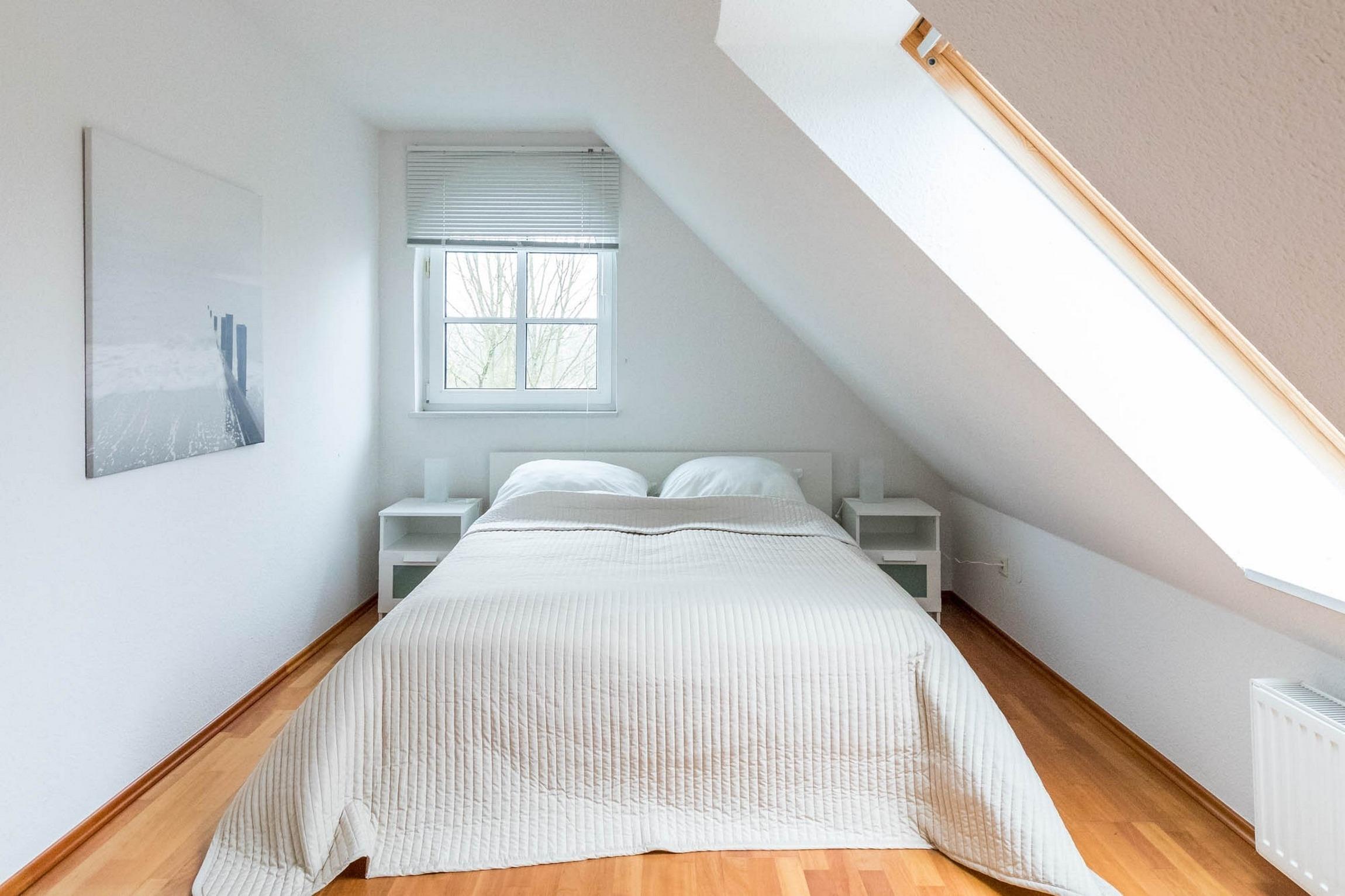 In der 2. Wohnebene, im Dachgeschoss befinden sich die offene Schlafgalerie mit einem Doppelbett (160x200cm, getrennte Matratzen, Lattenroste am Kopf verstellbar), eine Kommode sowie eine gemütliche Leseecke, die mit SAT-TV und DVD-Player ausgestattet ist. Das Schlafzimmer lässt sich mit einem Rollo abdunkeln. Das Schlafsofa bietet eine weitere Option zum Nächtigen (Liegefläche 80x200cm).