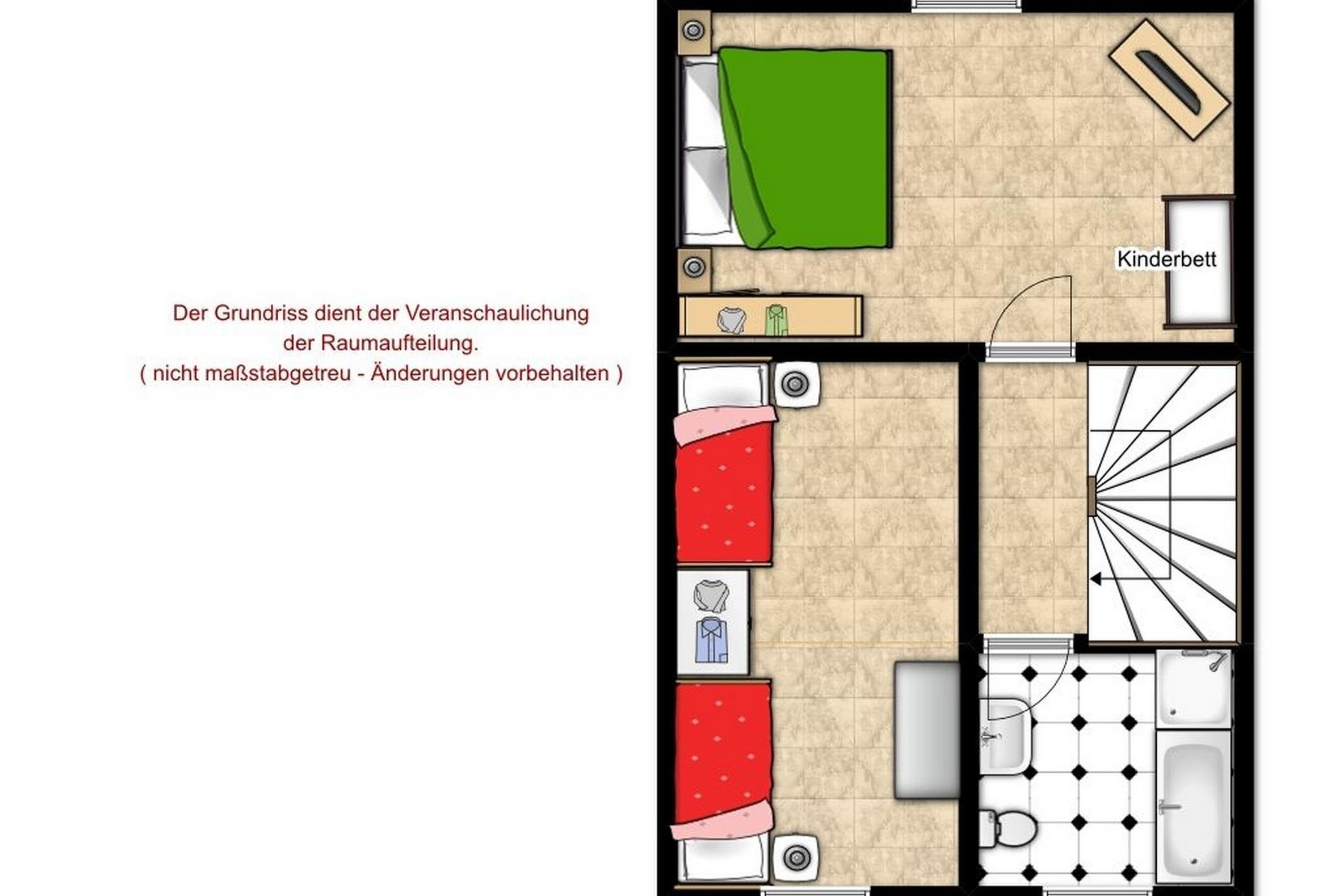 Das ruhig gelegene Reihenmittelhaus bietet auf 90qm Wohnfläche, die sich über 3 Etagen verteilen, eine familienfreundliche Ausstattung für max. 6 Gäste.