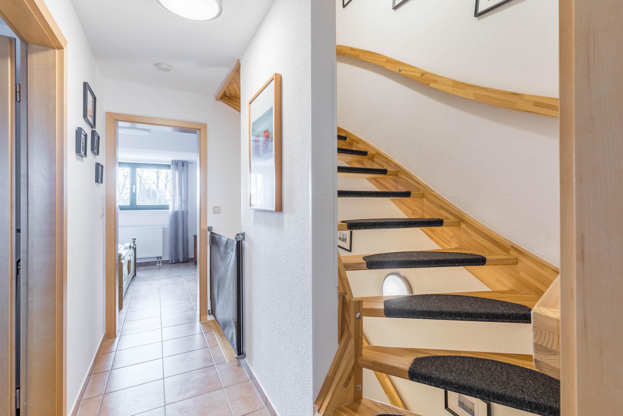 Eine Treppe im offenen Wohn- und Küchenbereich führt Sie in die nächste Etage.